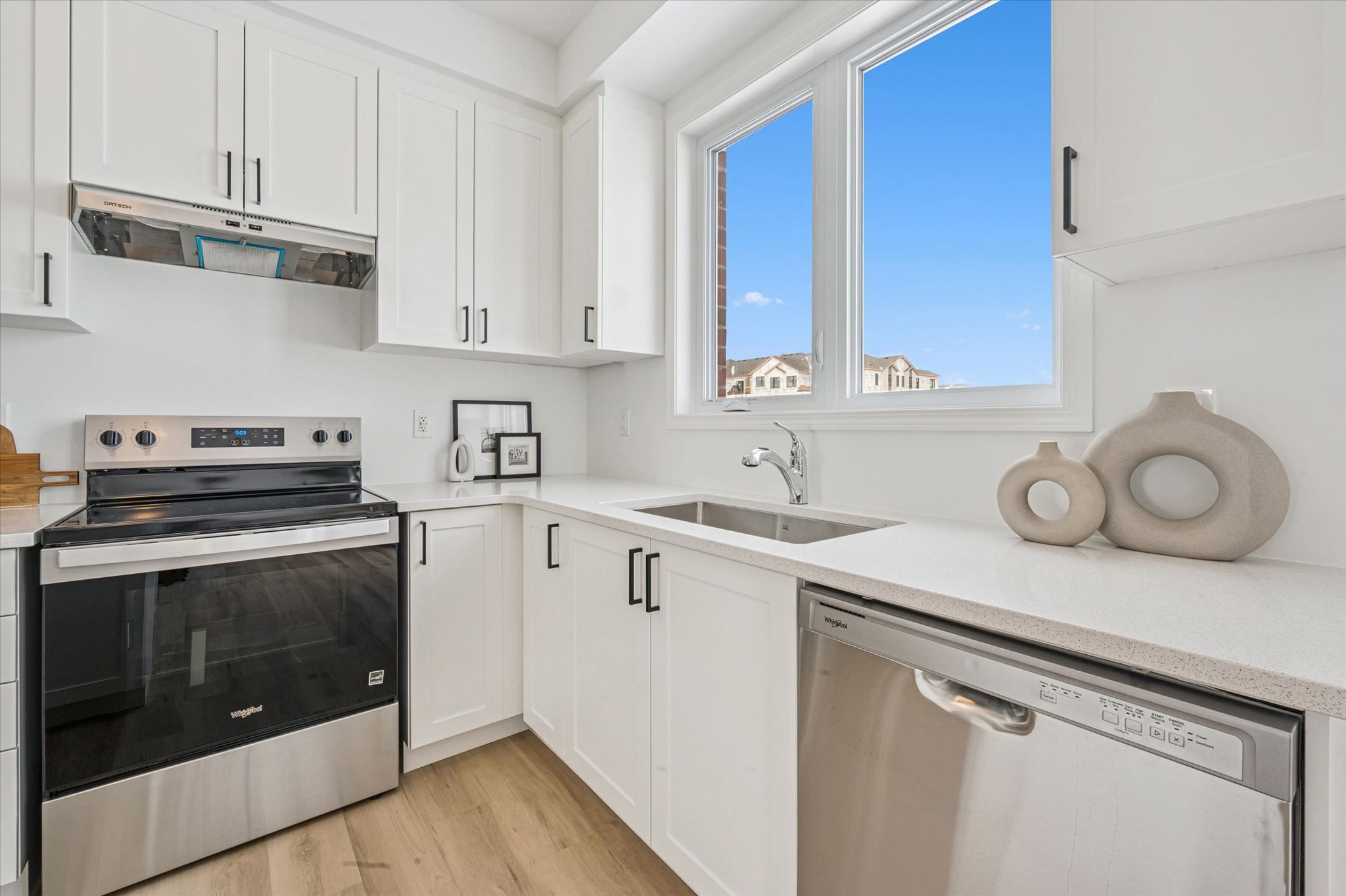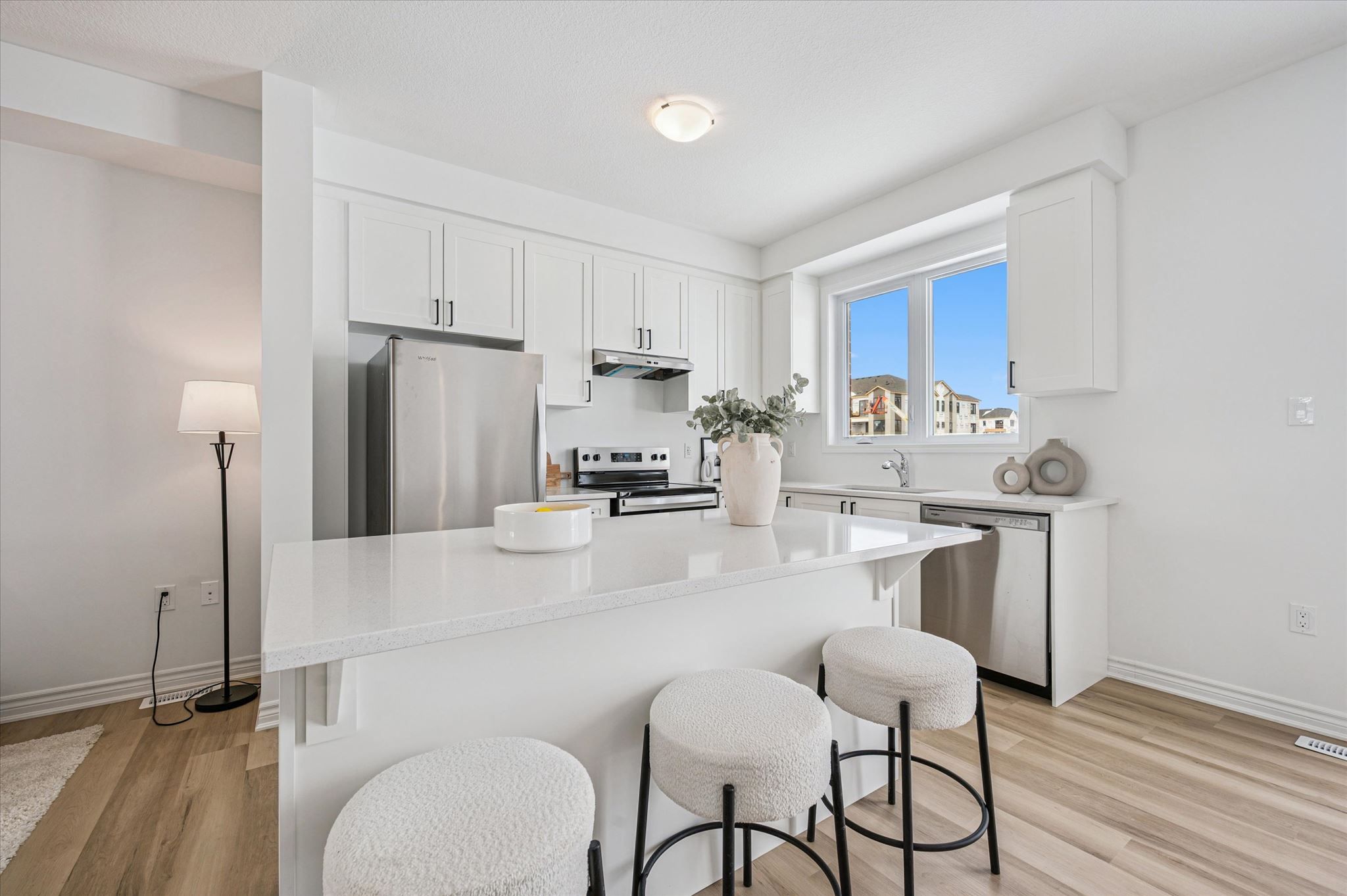 Welcome to 232 stamson street, nestled in kitchener's highly desirable wildflowers community by mattamy homes. This never-lived-in princeton model offers 1,583 sq ft of thoughtfully designed living space, blending modern finishes with everyday functionality. The main floor showcases a bright, open-concept layout filled with natural light, perfect for both entertaining and daily living. The stylish kitchen features quartz countertops, brand-new appliances, and sleek cabinetry, seamlessly connecting to the dining and living areas to create an inviting and cohesive space. Durable spc flooring, tile, and plush carpet add comfort and practicality throughout. Upstairs, a rare four-bedroom layout sets this home apart-ideal for growing families, guests, or those needing a dedicated work-from-home space. The spacious primary suite includes a walk-in closet and private ensuite, while the additional bedrooms offer flexibility to suit a variety of lifestyles. The unfinished basement provides a blank canvas with incredible potential-whether you envision a rec room, home gym, office, or additional living space. Perfectly located with a park directly across the street, this home offers a family-friendly setting with easy access to outdoor space. Situated on a 21. 36 ft x 99. 42 ft lot, the property includes an attached garage and driveway parking for two vehicles. Close to schools, transit, and with quick access to highway 8, the location offers both convenience and community appeal. A rare opportunity to own a brand-new, never-occupied four-bedroom townhome in one of kitchener's most sought-after neighbourhoods.