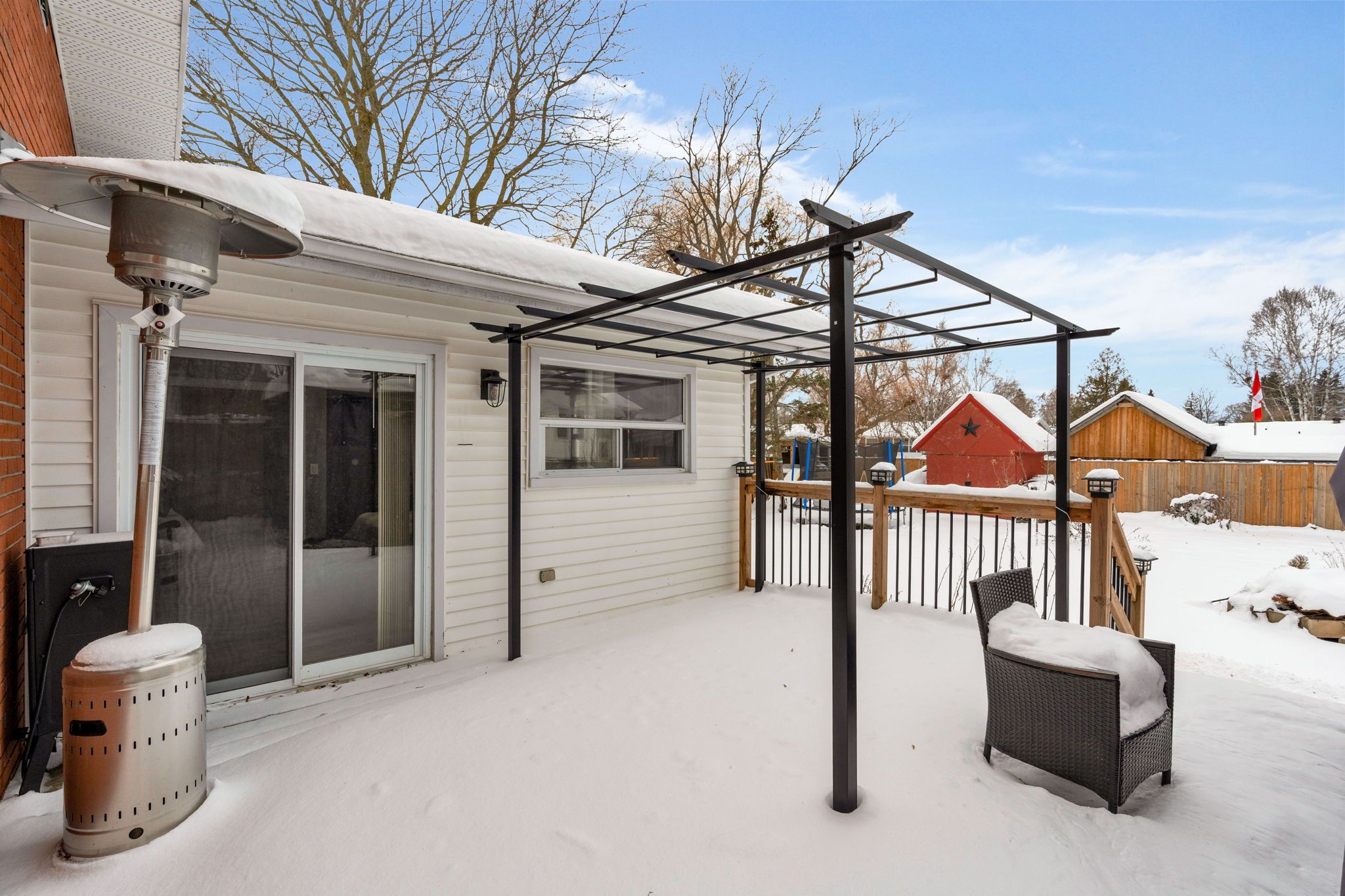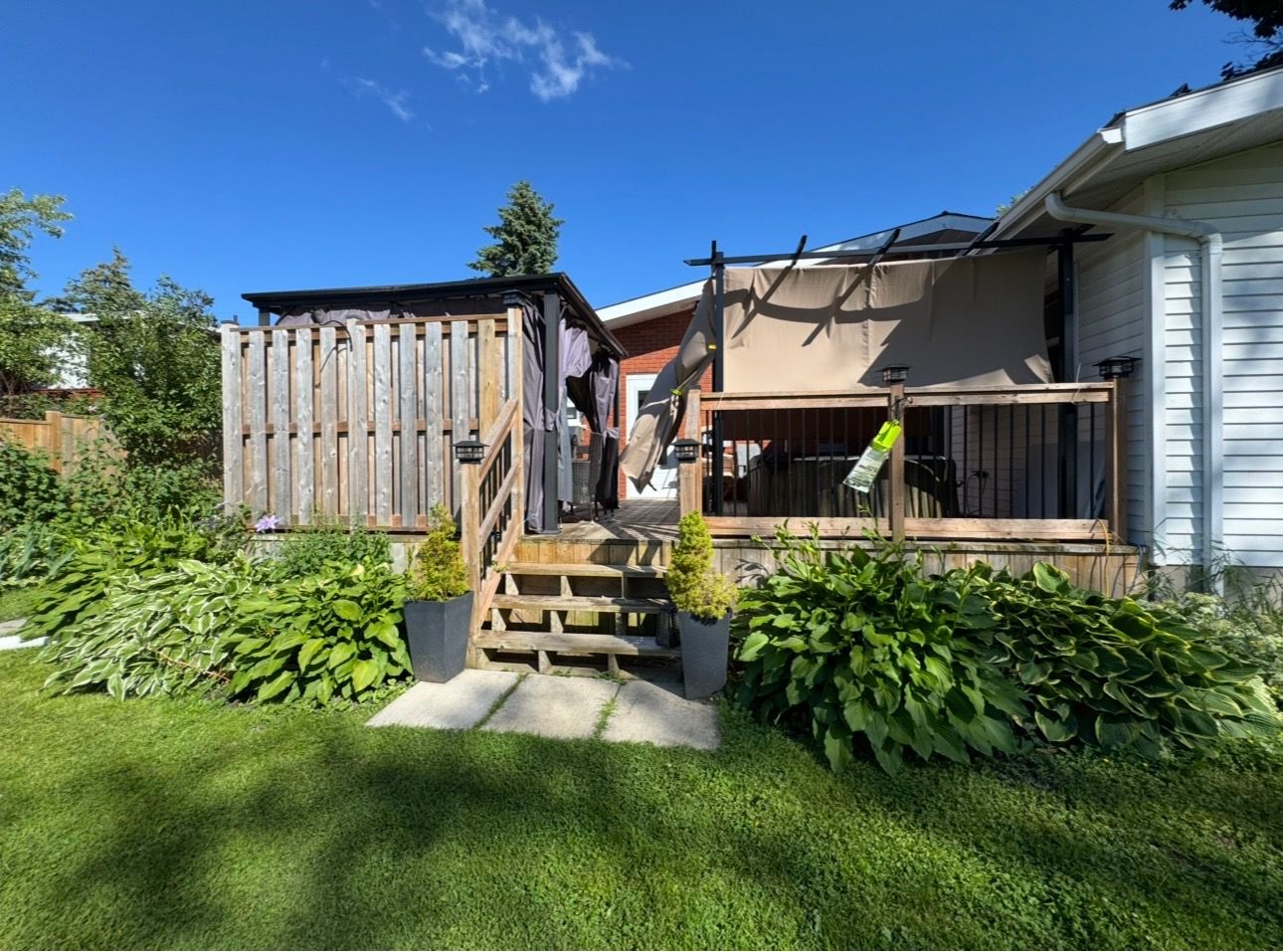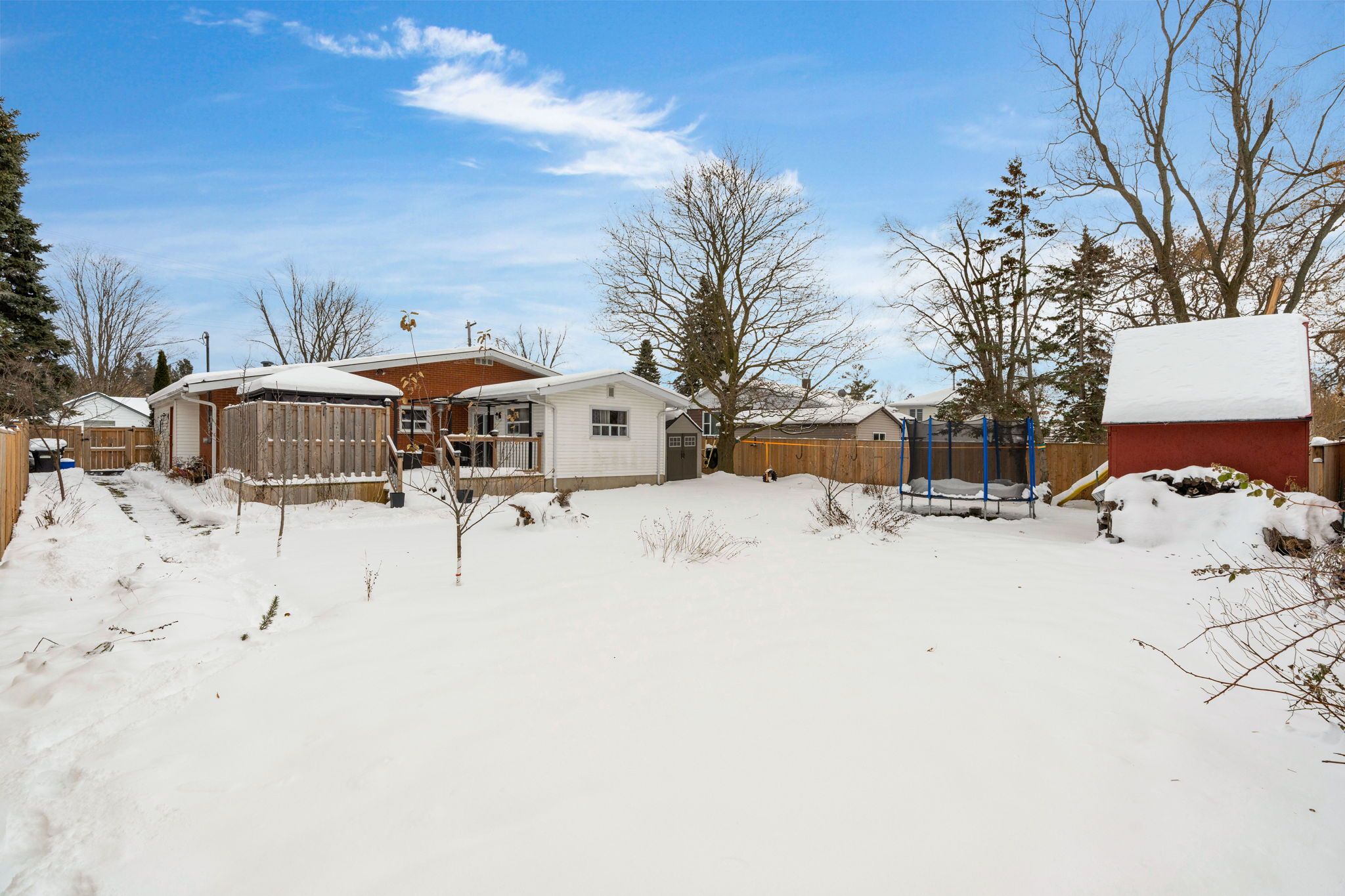 • Large primary bedroom with walkout to a new deck and fenced yard.