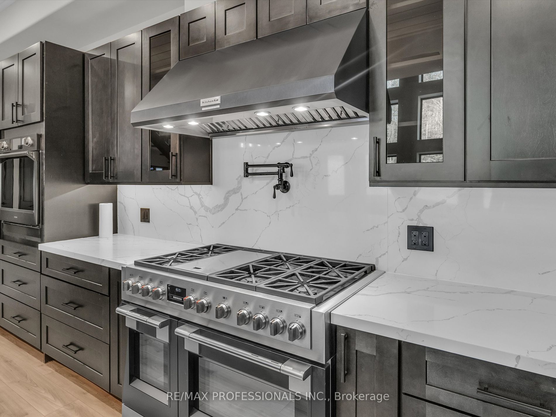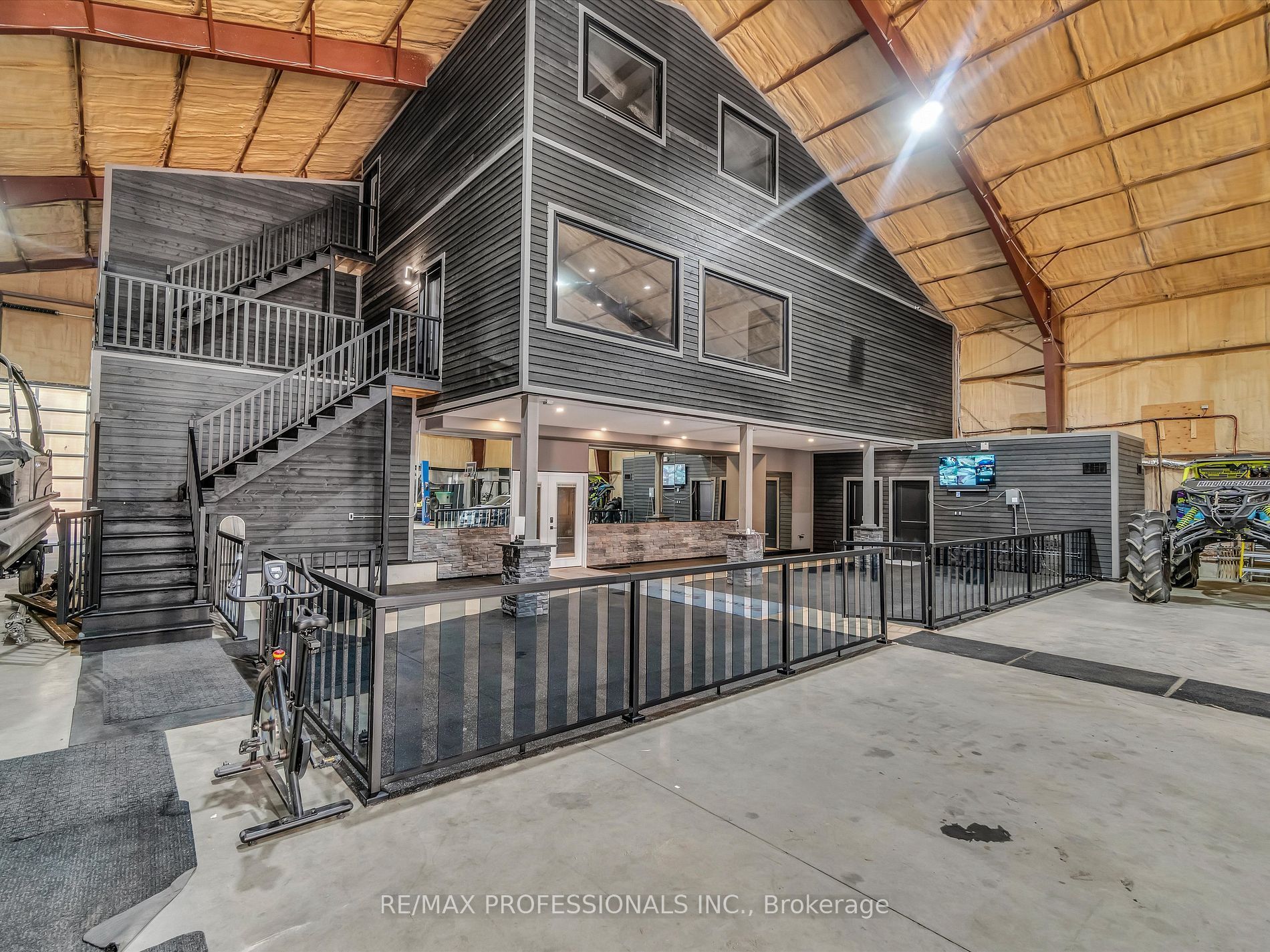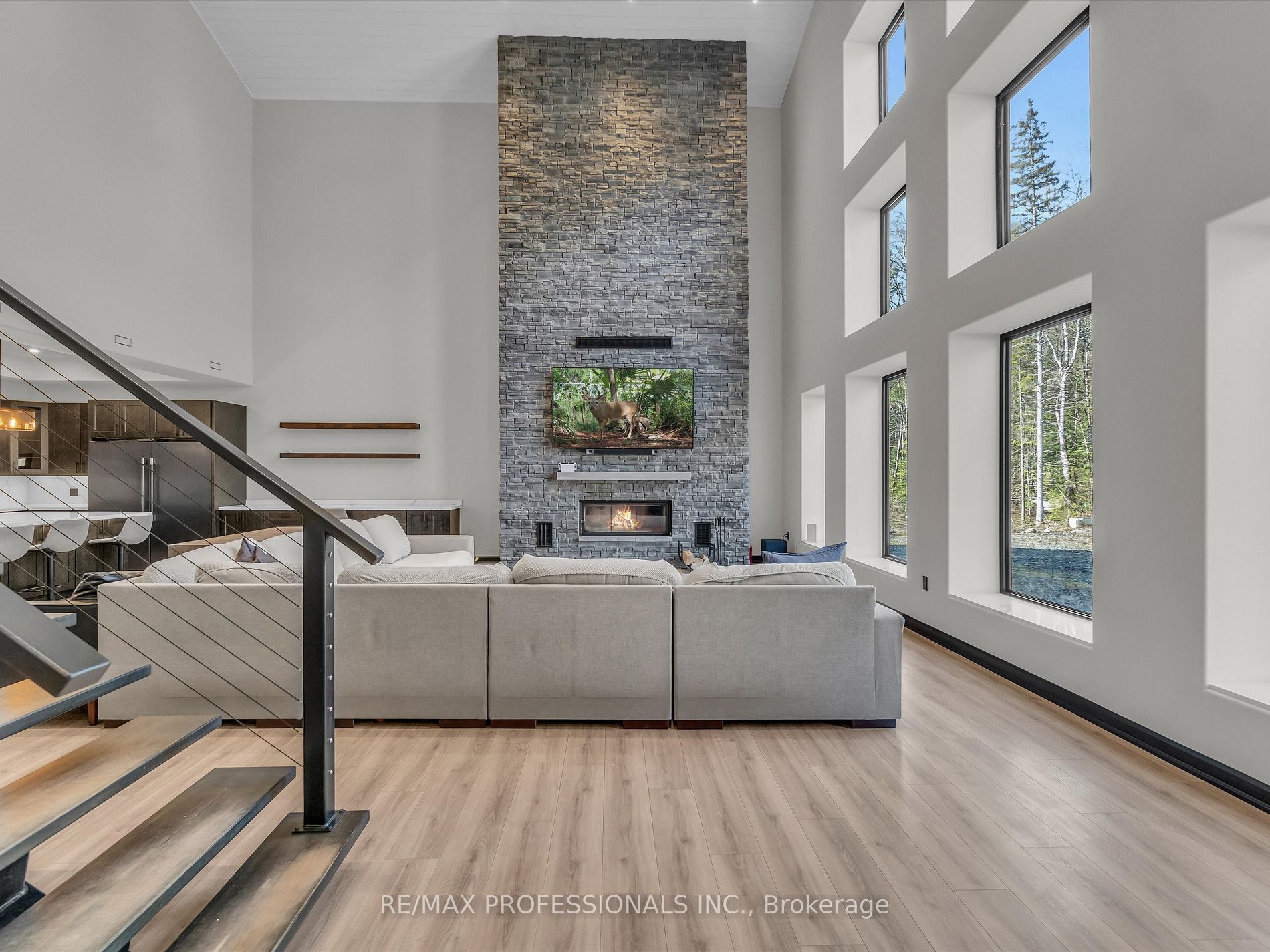 Discover your dream muskoka retreat! Welcome to this one-of-a-kind 5 bedroom, 5 bathroom 120ft x 80ft compound, nestled on over 8 acres of pristine land in lake of bays, perfectly located just minutes away from the charming town of baysville, where you can easily dock your boat and enjoy muskoka's second largest lake! This stunning property offers a unique blend of hobby farm potential and live/work opportunities in the heart of beautiful muskoka, only a short drive from bracebridge and huntsville. Highlights include: a serene 0. 5 acre pond fed by fresh natural springs, all framed by a breathtaking granite backdrop, 26kw backup generator ensuring your comfort with auto on/off capability, cozy, energy-efficient in-floor heating powered by two 200k nti boilers with state-of-the-art floor sensors and zoning controls, an impressive 9,000 sq/ft unilock patio featuring a built-in bbq, perfect for entertaining! Inside the luxury continues with a gorgeous interior. Step inside to find a grand open-concept layout with towering 45-foot ceilings, complemented by an exquisite chefs kitchen equipped with triple ovens, a professional gas stove, and an oversized fridge/freezer - all anchored by a massive kitchen island! The primary suite offers a personal sanctuary with a fireplace, walk-in closet, and a spa-like bathroom featuring a freestanding tub overlooking natures beauty. Plus, there's a wheelchair accessible main floor bedroom/ensuite for convenience! Additional features: 3 industrial garage doors for easy access to your workspace, a sophisticated camera system for peace of mind, and two cellular boosters ensuring crystal-clear lte, starlink internet with impressive speeds of 200 down and 50 up, keeping you connected while you enjoy your private trails and every outdoor adventure! Whether you are seeking a peaceful retreat or a dynamic living-work space, this property is tailored for both leisure and productivity! Don't miss the chance to experience this slice of paradise!