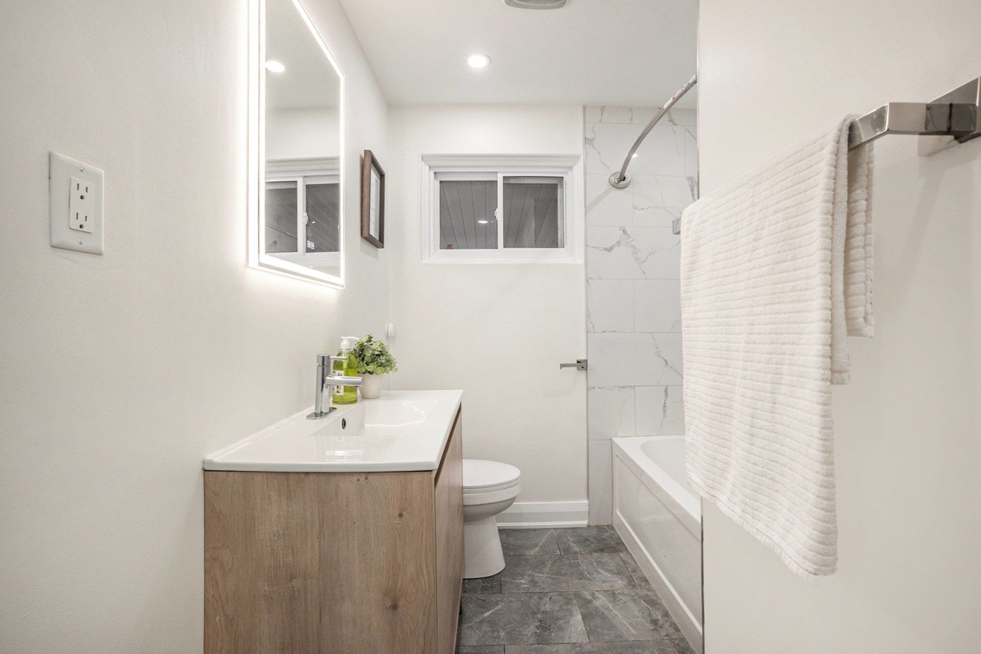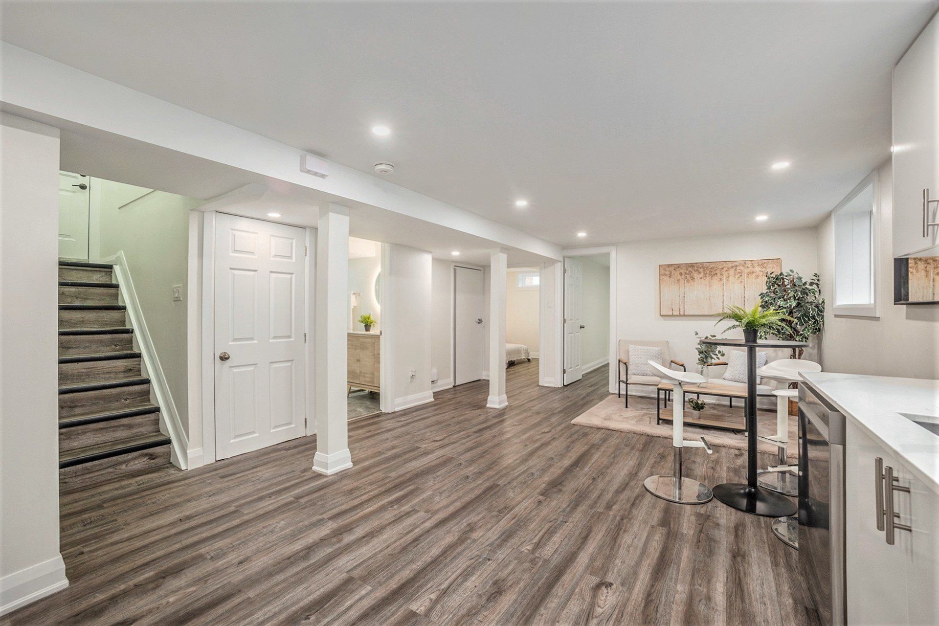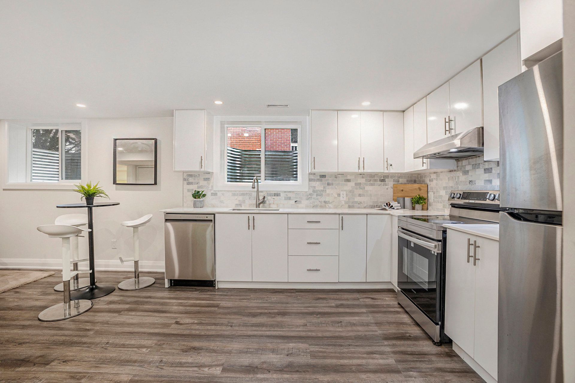 • Bright basement unit with large windows, features its own kitchen and laundry.