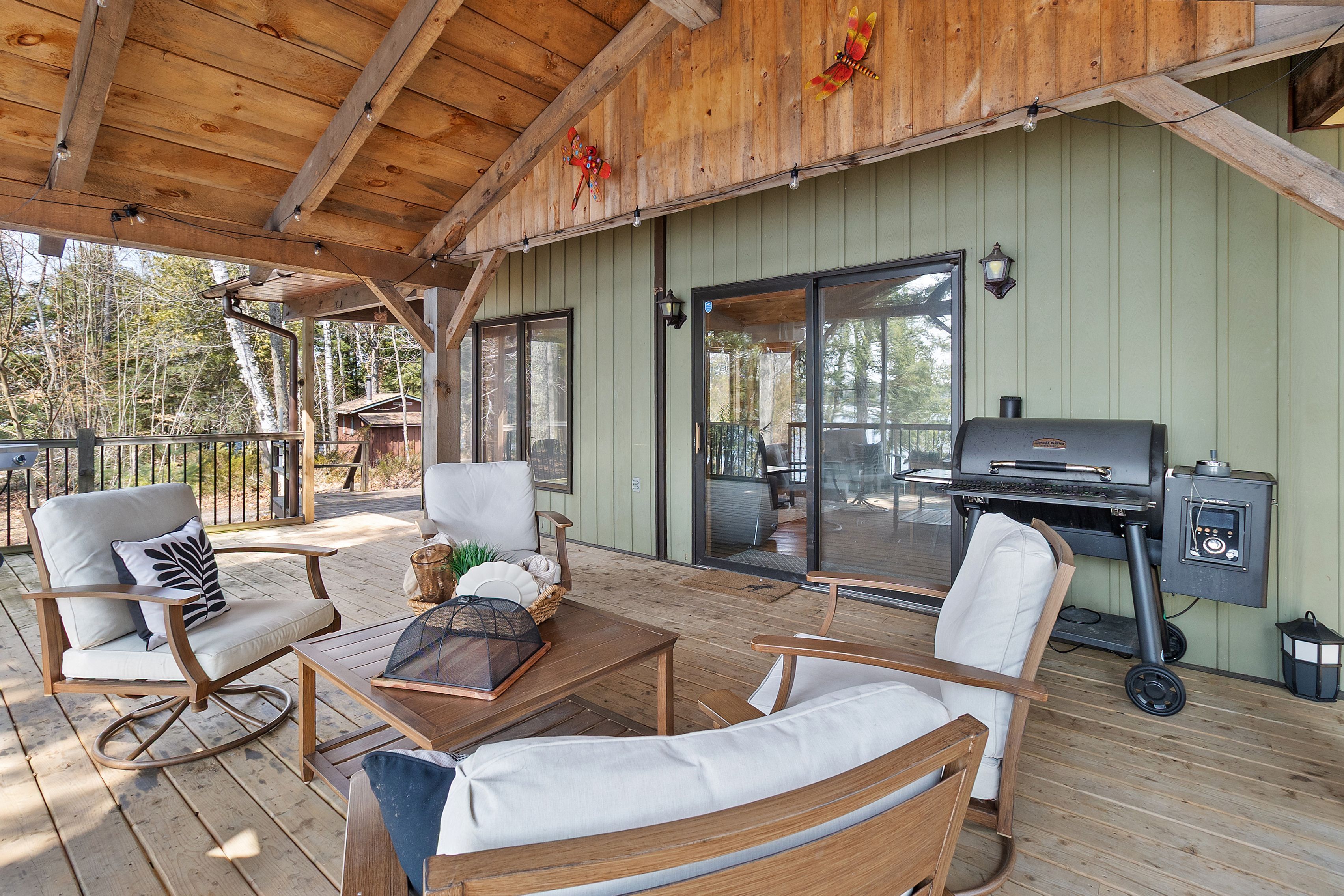 • Spacious covered deck and screened-in porch perfect for gatherings and relaxation.