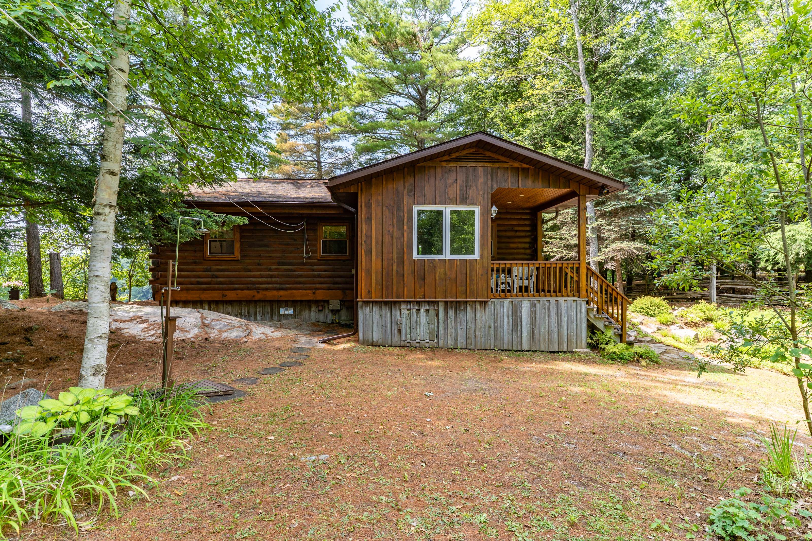 Super sharp, unique, immaculately maintained nova scotia pine scribe three bed log cottage or home. Century pines, western sunsets and breezes grace this relaxing peaceful private locale, majestically perched above fabulous crystal clear skeleton lake. The true essence of cottaging abounds, warm cozy character filled exposed post and beam interior with engineered hardwood floors. Lovely master suite with lake views and private deck. Great entertaining with the open concept kitchen, dining and living room space. There are two wonderful covered porches to escape the sun or take in a summer rain storm. A large newer lounge deck to marvel at the star filled dark sky night that skeleton lake is known for. Enjoy great deep water swimming and fishing from the fixed and floating docks at the shore, plus a dry boathouse/storage building for all the toys. There is a fun outdoor shower plus an additional storage building, comes furnished. Enjoy all four seasons at beautiful skeleton lake!
