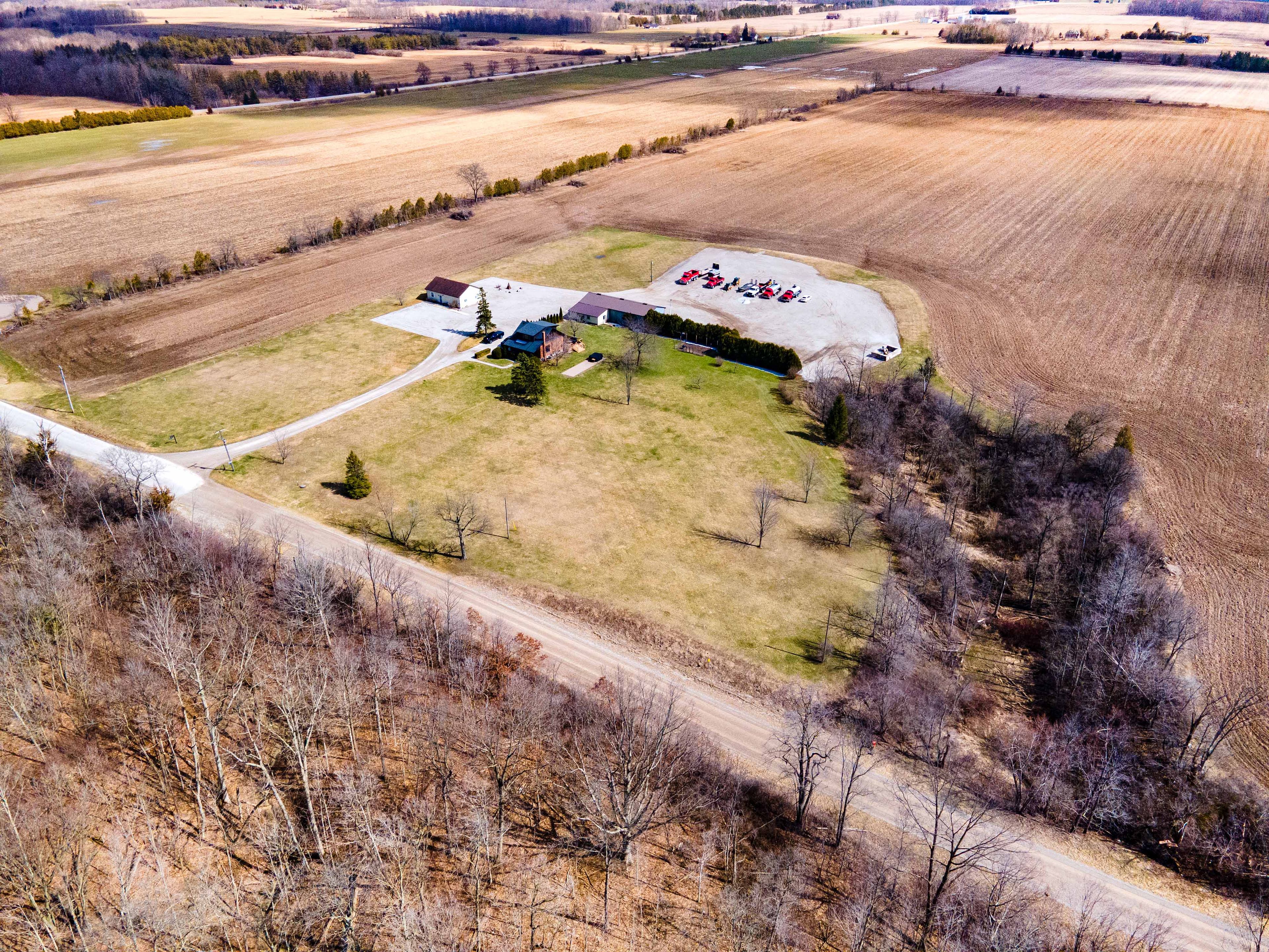 Rare opportunity to own a versatile 6-acre rural property offering the perfect blend of lifestyle, space, and potential. Live and work from one exceptional setting featuring extensive outbuildings, ample parking, and a beautifully updated home. Set on a serene, landscaped lot, the charming 3-bedroom residence offers a warm and inviting feel throughout. The bright open-concept kitchen is finished with quartz countertops, natural wood cabinetry, and a spacious dining area with a wet bar-perfect for hosting and entertaining. The home also features a comfortable main living area and a lower-level rec room, providing additional space for relaxation or family use. Step outside to enjoy a welcoming front porch, expansive rear deck, and a 10-seat hot tub overlooking the peaceful countryside. The property is exceptionally well-equipped with an impressive 1,850 sq. Ft. Insulated and heated workshop, a separate 1,200 sq. Ft. Office building, and a large, well-drained 2-acre gravel yard ideal for parking, storage, or hobby use. A2 zoning allows for a range of permitted rural uses-buyers to complete their own due diligence regarding specific permitted uses and future opportunities. Conveniently located just north of the 401, approximately halfway between london and chatham, and only minutes to wardsville, rodney, and bothwell.