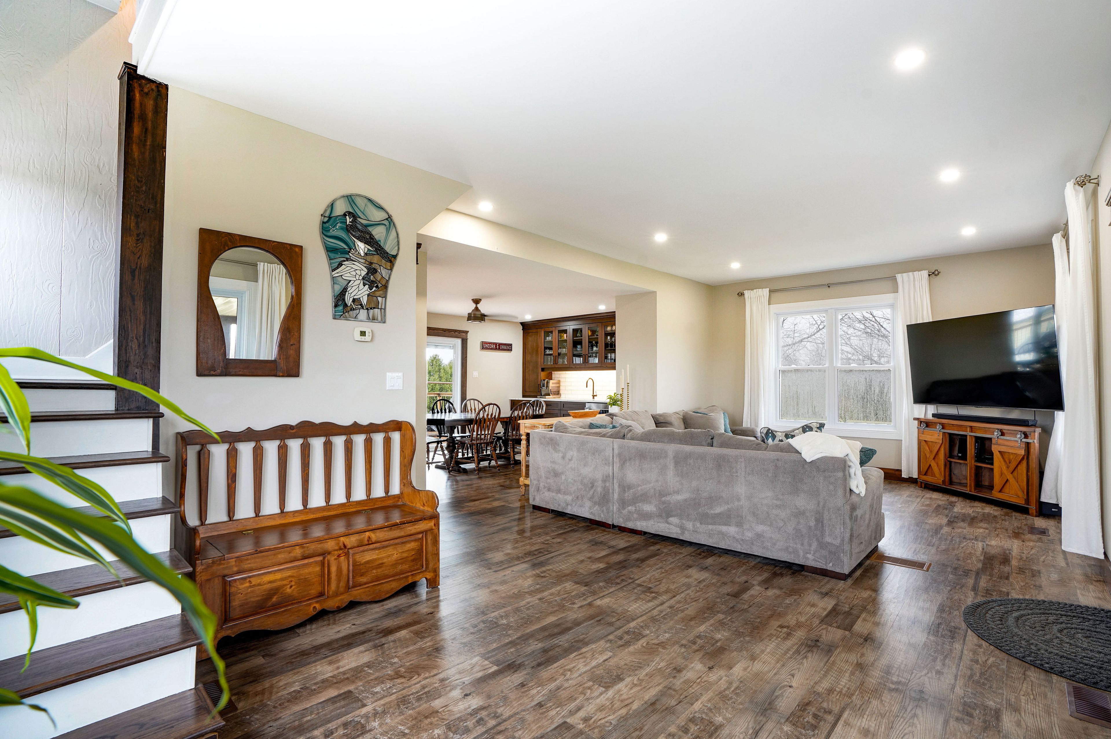 • Updated 3-bedroom home with an open-concept kitchen and dining area.