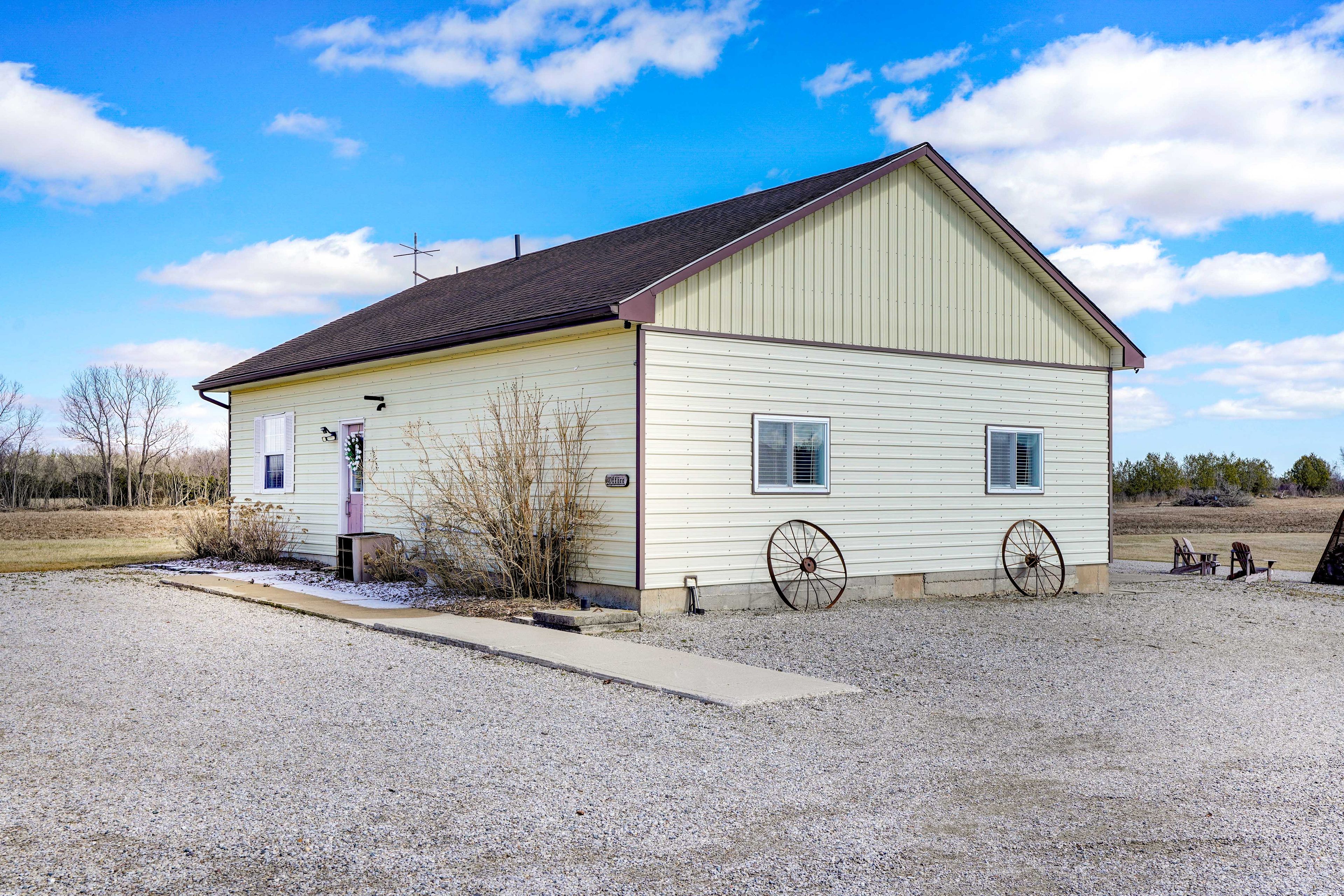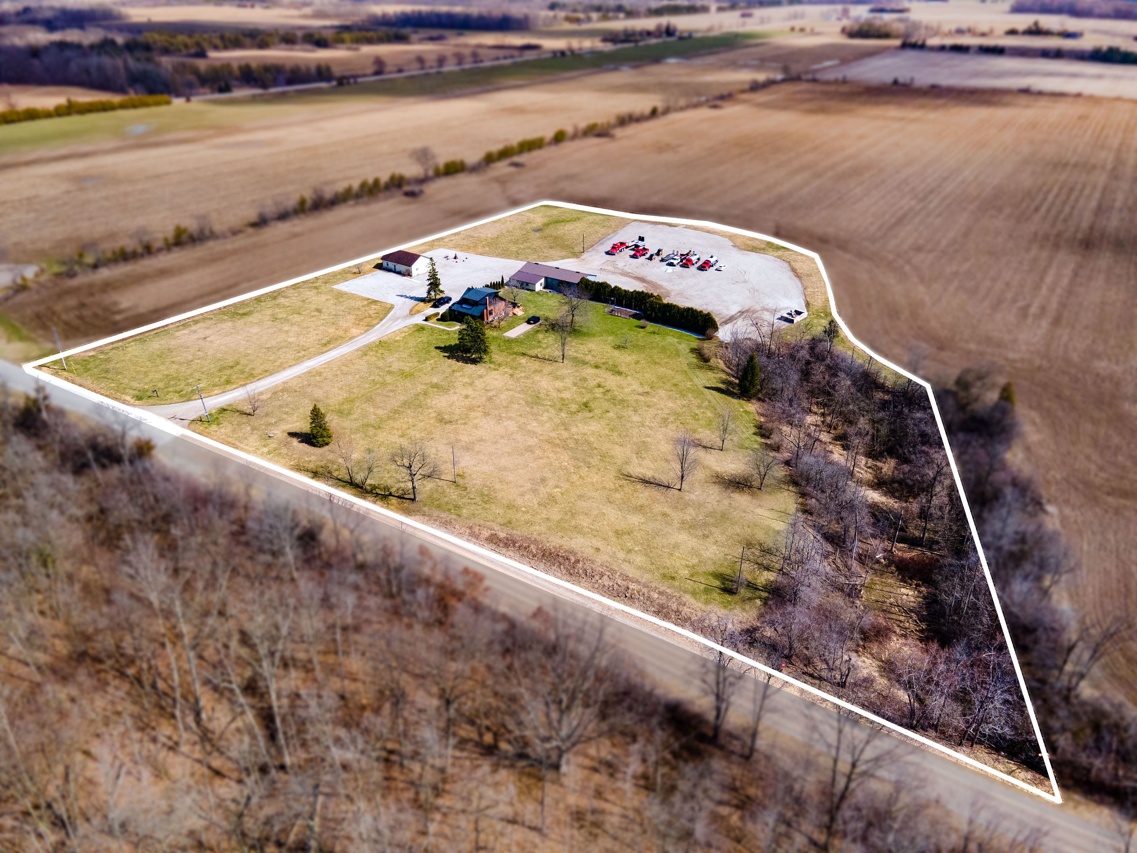 Rare opportunity to own a versatile 6-acre rural property offering the perfect blend of lifestyle, space, and potential. Live and work from one exceptional setting featuring extensive outbuildings, ample parking, and a beautifully updated home. Set on a serene, landscaped lot, the charming 3-bedroom residence offers a warm and inviting feel throughout. The bright open-concept kitchen is finished with quartz countertops, natural wood cabinetry, and a spacious dining area with a wet bar-perfect for hosting and entertaining. The home also features a comfortable main living area and a lower-level rec room, providing additional space for relaxation or family use. Step outside to enjoy a welcoming front porch, expansive rear deck, and a 10-seat hot tub overlooking the peaceful countryside. The property is exceptionally well-equipped with an impressive 1,850 sq. Ft. Insulated and heated workshop, a separate 1,200 sq. Ft. Office building, and a large, well-drained 2-acre gravel yard ideal for parking, storage, or hobby use. A2 zoning allows for a range of permitted rural uses-buyers to complete their own due diligence regarding specific permitted uses and future opportunities. Conveniently located just north of the 401, approximately halfway between london and chatham, and only minutes to wardsville, rodney, and bothwell.