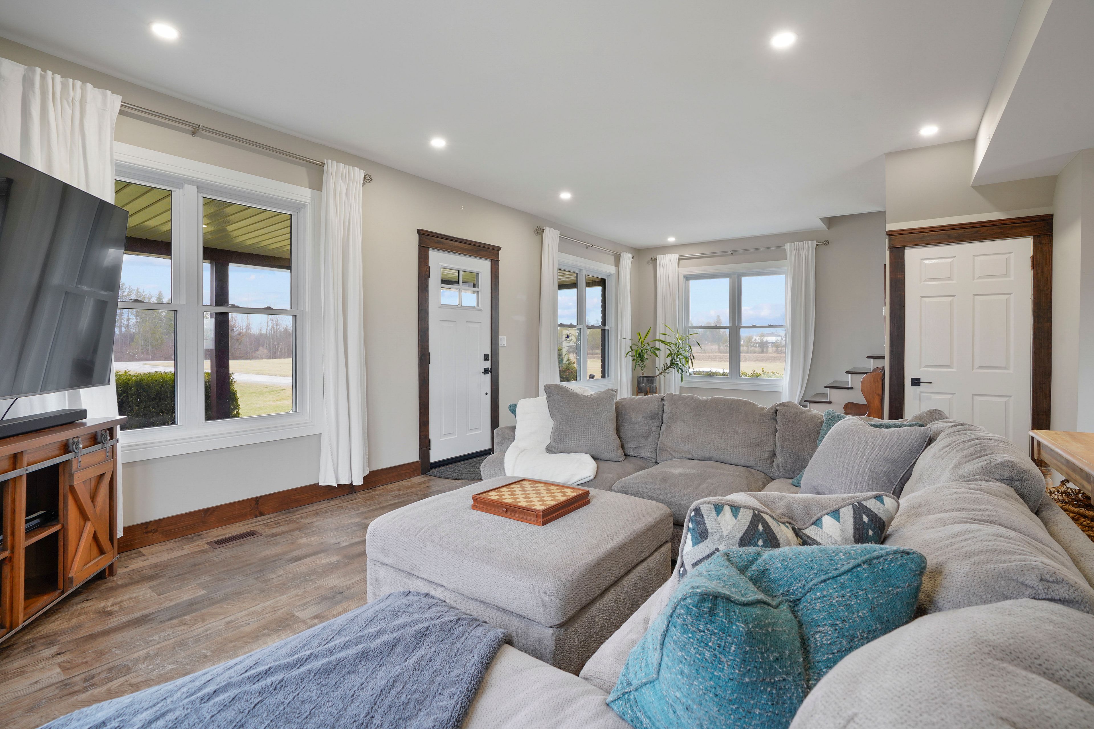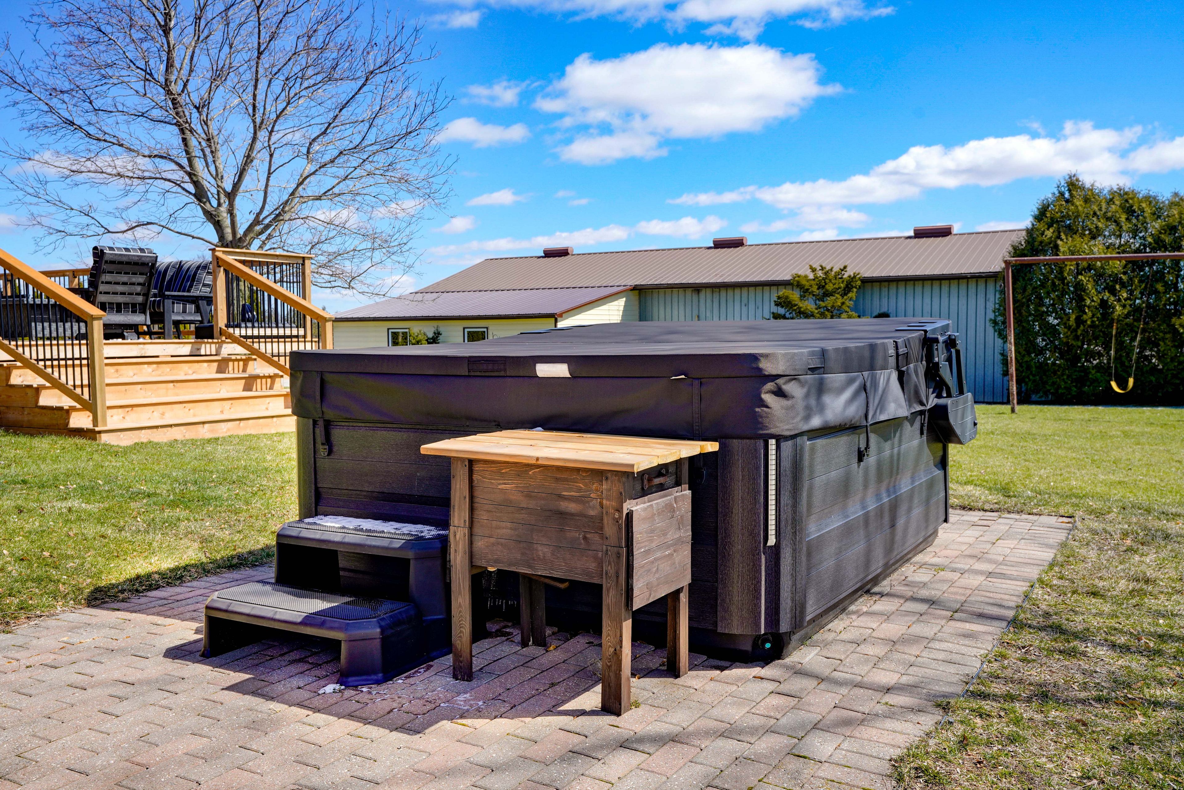 • Expansive rear deck and hot tub with peaceful countryside views.