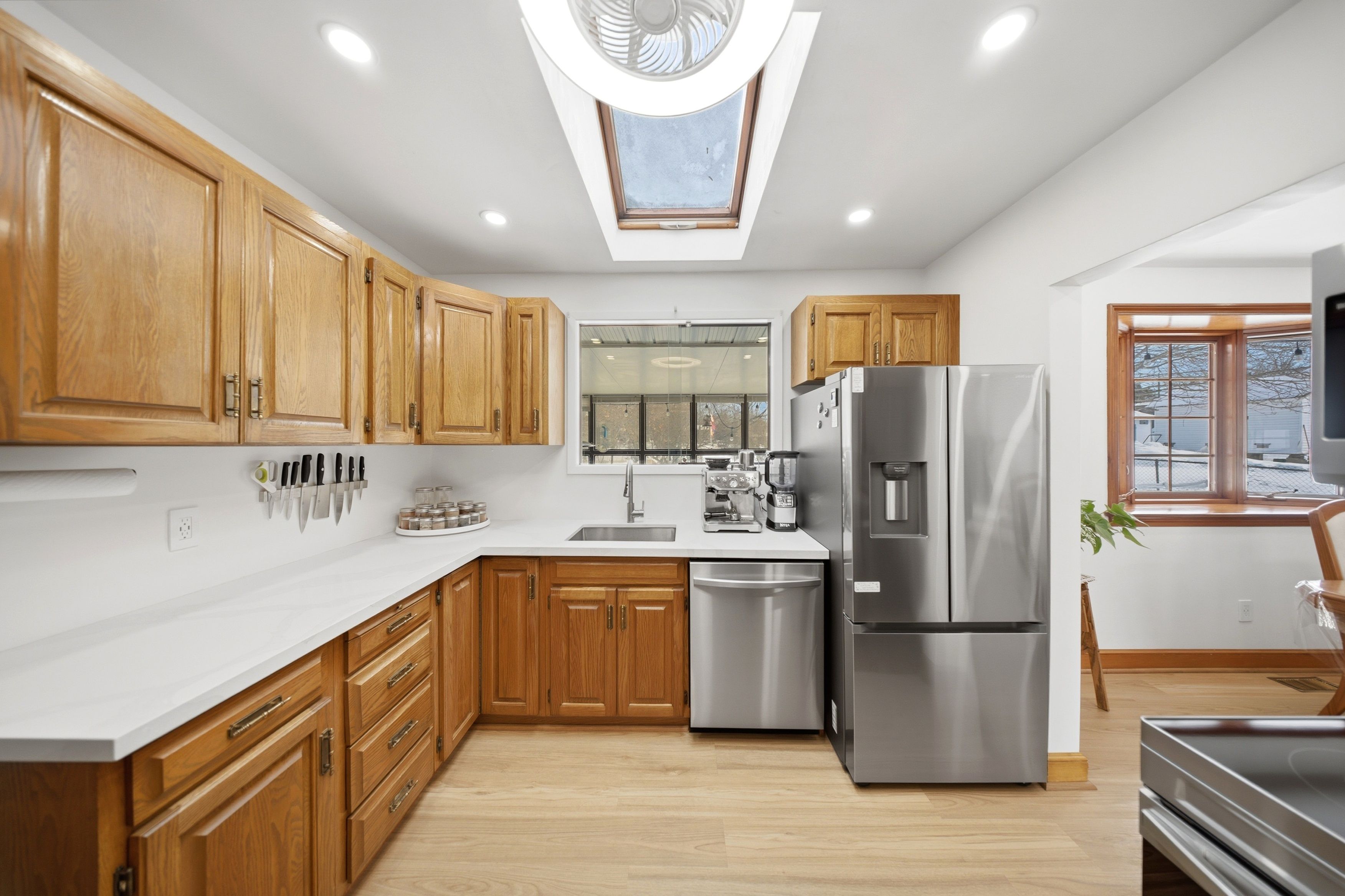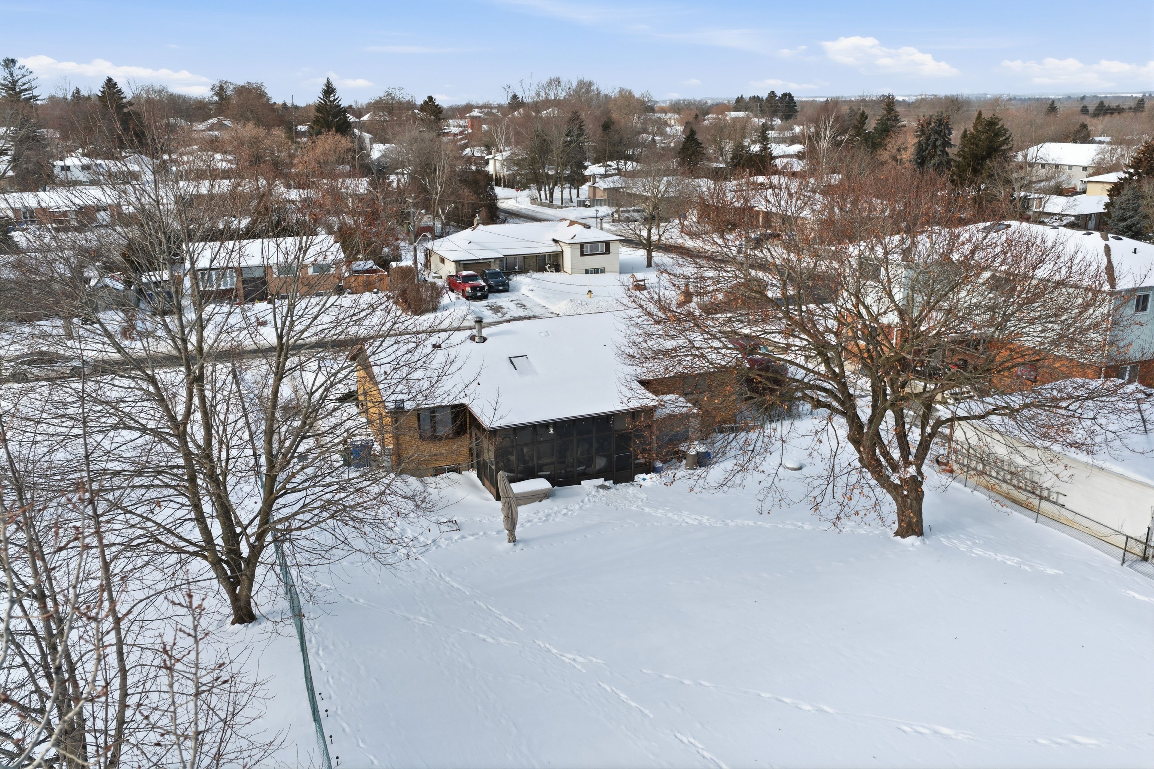 A rare opportunity in the heart of holland landing on one of the largest remaining lots in the area. This expansive property measures 70 feet wide by 264 feet deep, opening to an impressive87 feet at the rear, a truly rare find. Positioned perfectly on the lot sits a beautifully updated bungalow featuring 3 bedrooms, 2 bathrooms, and a renovated kitchen with all new stainless steel appliances and quartz countertops. The home has been updated top to bottom with new vinyl flooring, custom led lighting, and an upgraded 200 amp electrical panel. A separate back entrance provides excellent potential for additional income or future conversion to an in-law suite. Cozy up by the wood burning fireplace and enjoy the warmth and character it brings to the space. This meticulously maintained residence offers a seamless blend of comfort, sophistication, and natural serenity. Surrounded by mature trees, the property boasts breathtaking backyard view sand complete privacy, a peaceful retreat from daily life. The landscaped grounds include a fully fenced yard, parking for 5 to 6 cars, a one of a kind large seasonal sunroom with a walkout to the backyard, and lush gardens ideal for both intimate and large gatherings. Move in ready today, while also offering an excellent opportunity to land bank and build your dream home in the future or benefit from the property's land value. Located just minutes from transit, library, shopping, schools, trails, and all amenities, this is where community, affordable renovated living, and smart long term investment come together as holland landing continues to grow. If space, value, and vision matter to you, this is the one.