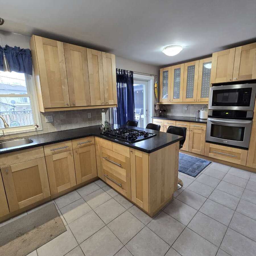 • Renovated kitchen with built-in appliances and modern finishes.