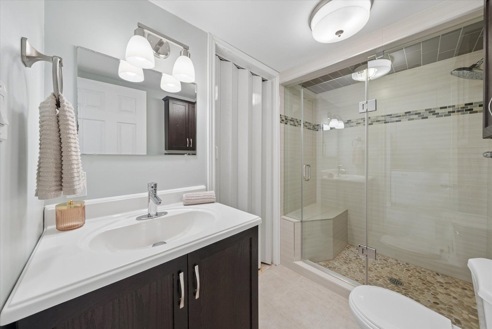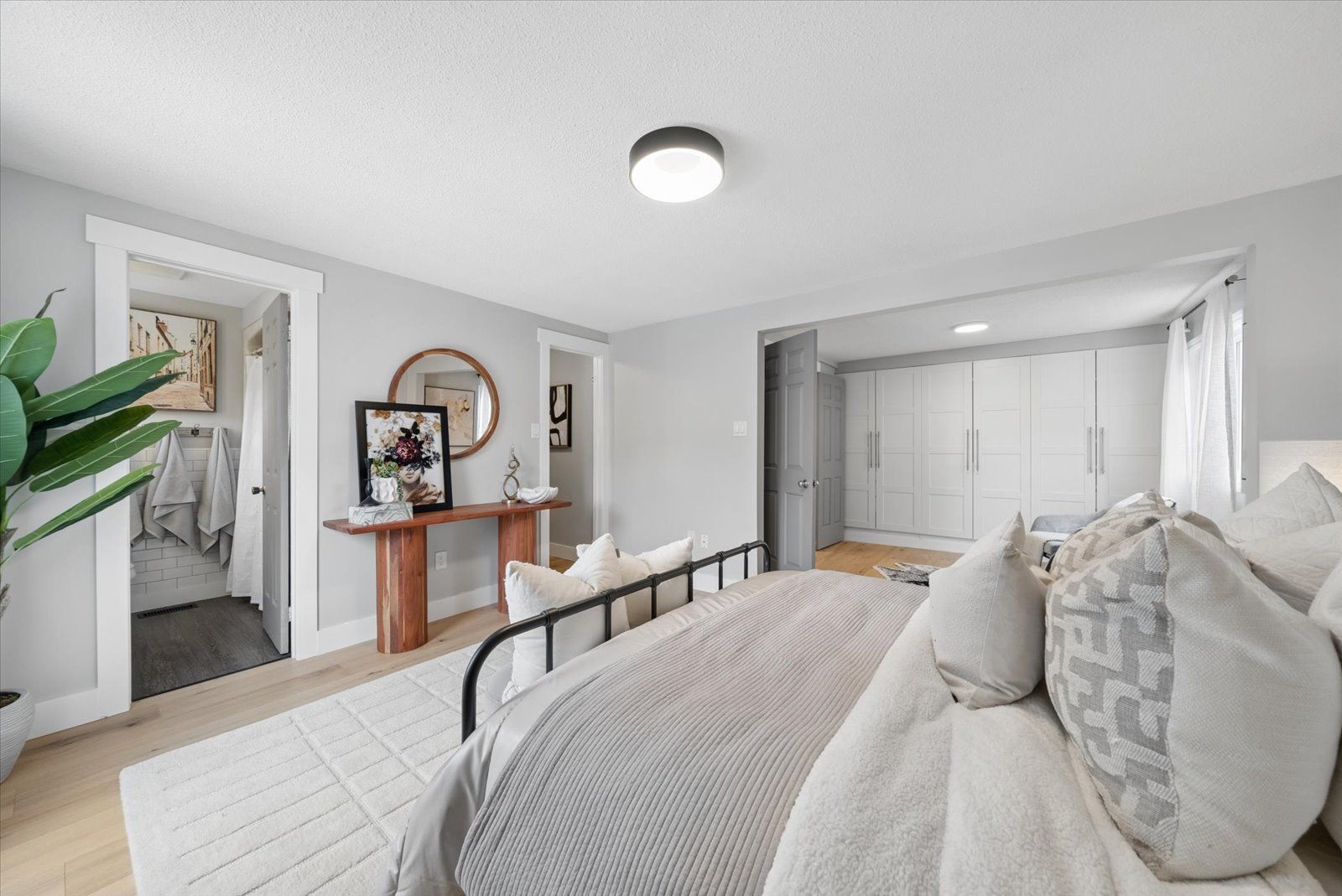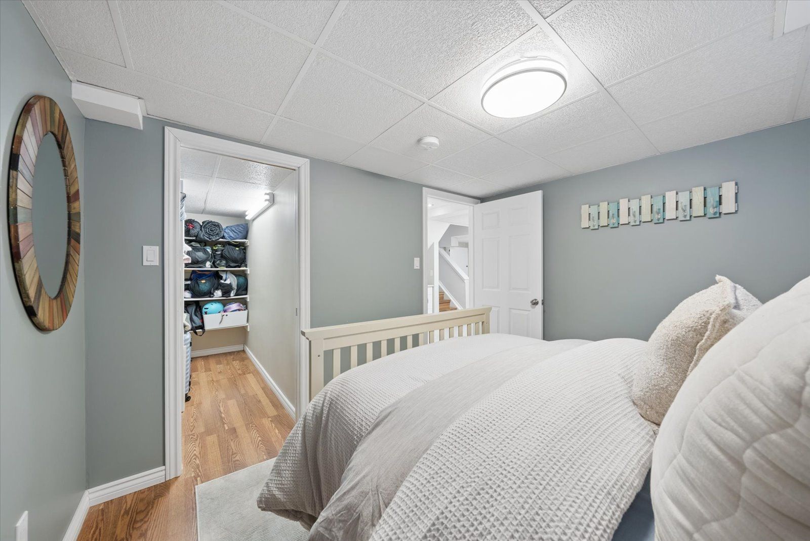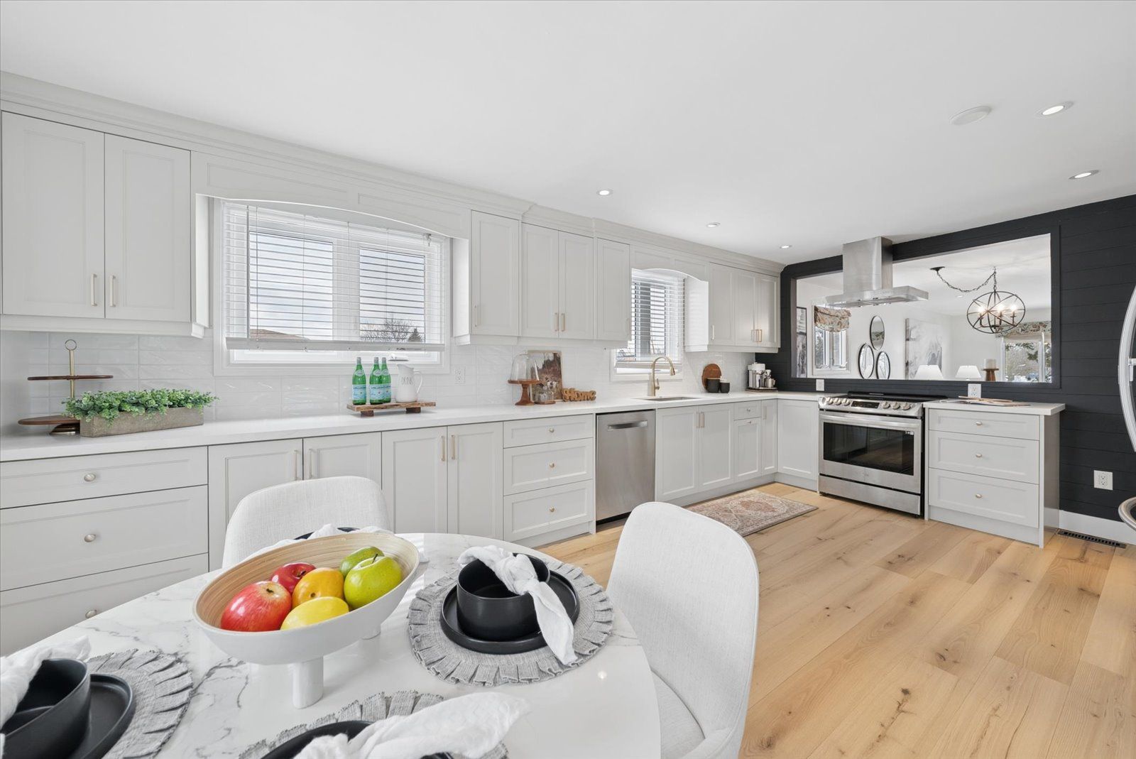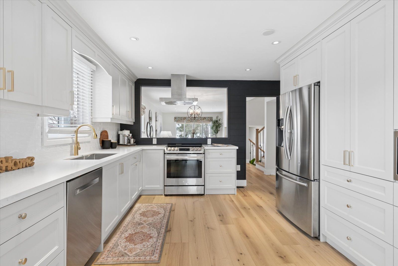 Beautifully updated sidesplit home offering spacious, functional living areas and thoughtful modern upgrades. The main level features a welcoming living room with a cozy fireplace and walk-out to the patio, along with convenient main floor laundry and a guest bathroom. The next level offers a bright, open-concept family room and dining area with a charming pass-through window to the kitchen-perfect for hosting family and friends. The fully renovated kitchen (2026) has never been used and is complemented by newly installed hardwood floors (2026), new tile flooring in the front entrance, and updated light fixtures throughout the home (2026). Upstairs, the spacious primary bedroom includes a combined office area, walk-in closet, ensuite bathroom, and additional closets at the entrance for ample storage. Two additional bedrooms and a 4-piece bathroom complete the upper level, with each bedroom offering generously sized closets. The redesigned lower basement provides exceptional flexibility with a private in-law suite featuring two bedrooms, a kitchen, and a bathroom-ideal for guests or extended family. This level also includes a cozy library area, egress windows for added natural light and safety, and one bedroom with a walk-in closet and abundant storage. Step outside to enjoy the backyard, highlighted by a newly updated deck (2021) that creates the perfect space for relaxing afternoons or entertaining with family and friends. Additional features such as garage door openers and exterior lighting enhance both convenience and security around the home. Situated in a great and safe neighbourhood, this home is ideal for families with a park just across from the school and both public and catholic schools within walking distance, offering everyday convenience in a welcoming community.