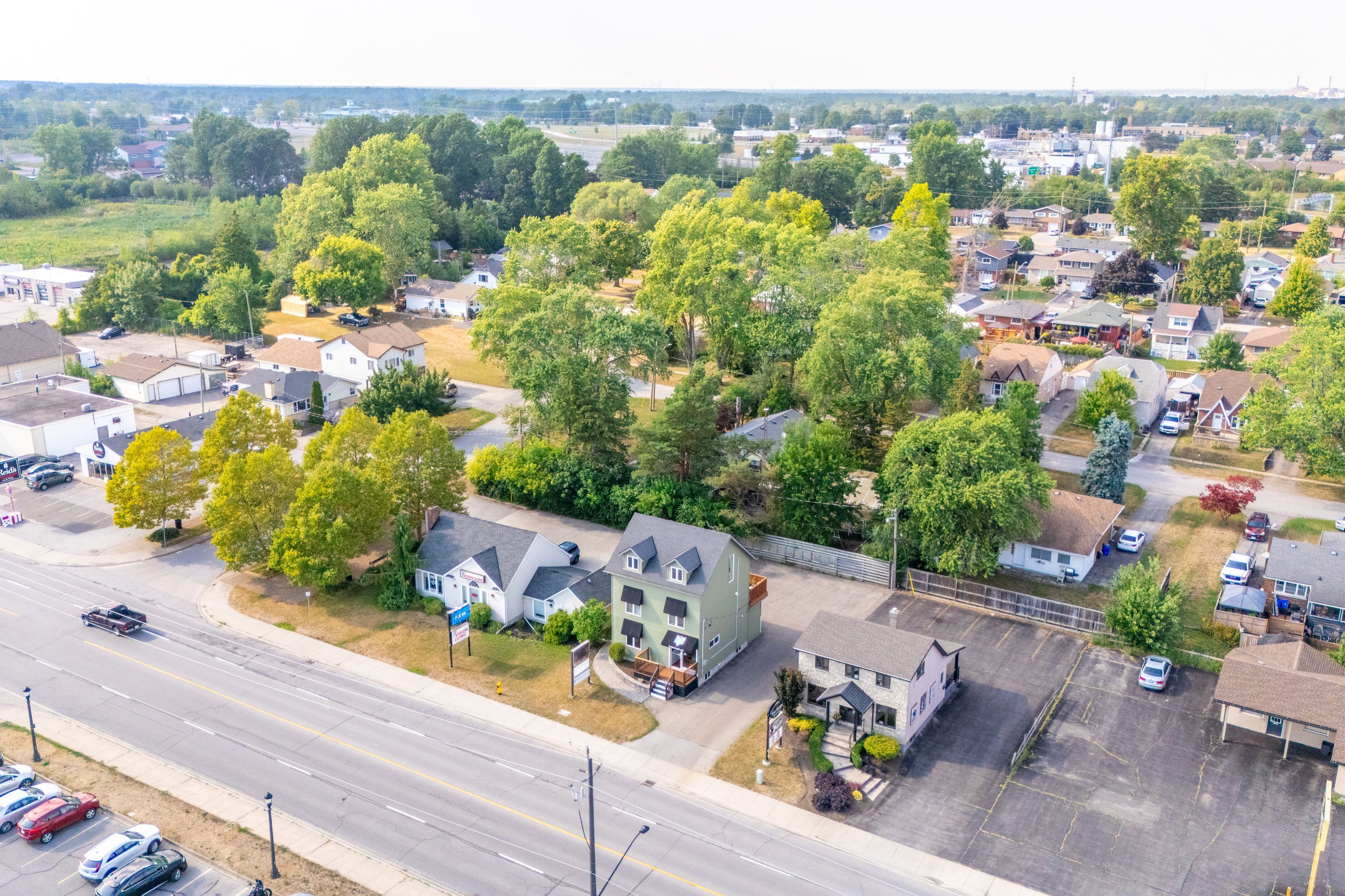 Discover an exceptional mixed-use investment opportunity at 233 garrison road in fort erie. This well-maintained, 2. 5-storey freehold building offers the best of both worlds: a fully operational commercial space on the main level and a beautifully appointed residential unit above, each with separate entrances and fully split utilities including two furnaces, two a/cs, separate hydro and gas meters. The main floor is currently set up as a chiropractic clinic, featuring a welcoming reception area, three treatment rooms (or private offices), bathroom, and dedicated storage ideal for medical, wellness, or professional office use. Zoned c3 highway commercial, this location supports a wide range of permitted uses, including retail, personal service shops, clinics, professional offices, and even short-term rental (dedicated) uses providing outstanding flexibility for investors or owner-occupiers. Upstairs, a spacious and bright 1-bedroom residential unit spans the top two floors. The second level hosts a stylish kitchen, updated bathroom, and open-concept living room with direct access to a large private deck perfect for entertaining or quiet enjoyment. The third floor is a stunning loft-style primary suite with ample closet space and upper-level laundry. Located just steps from high-traffic garrison road, with qew access minutes away, and only a short drive to the usa border, this property offers unmatched exposure, convenience, and income potential. Whether you're looking to expand your commercial portfolio or live and work in one place, this is a rare find in a growing community.