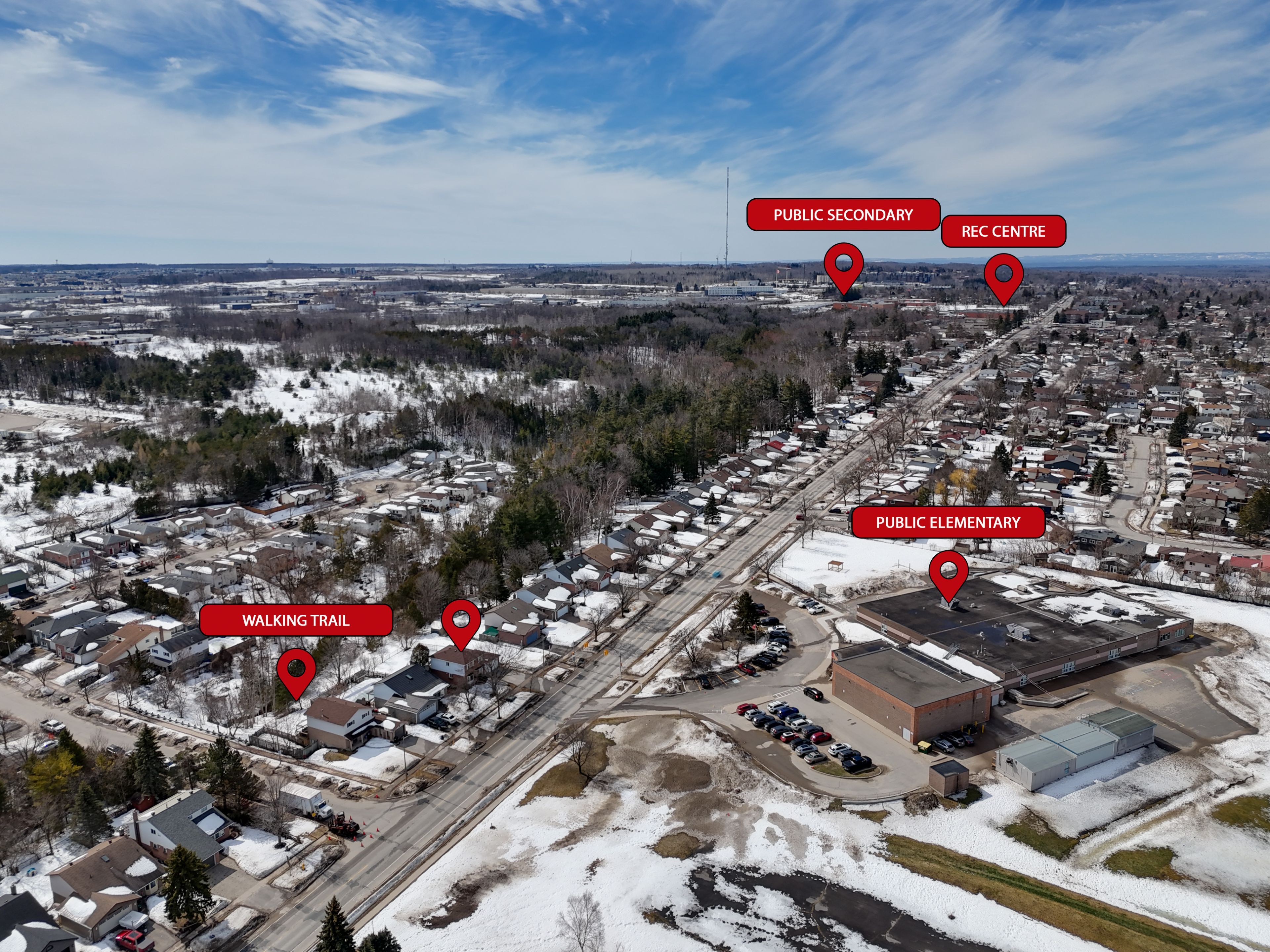 • Located across from a school and near walking trails and parks.