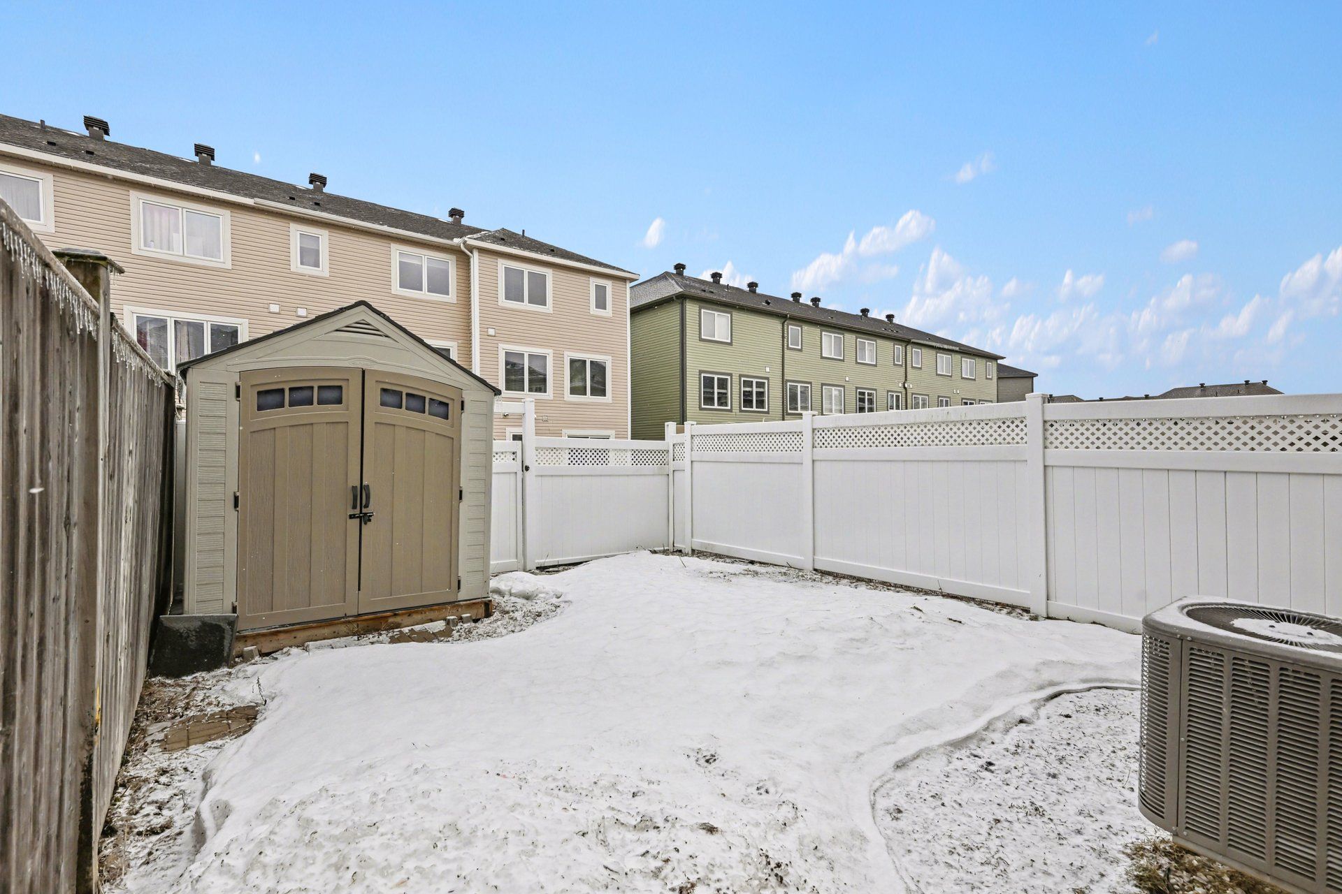 Welcome to this beautiful freehold townhome located in the sought-after, family-friendly community of blackstone in kanata. This well-maintained 3-bedroom, 3-bathroom home with a single-car garage offers stylish finishes and comfortable living throughout. The bright and open-concept main floor features gleaming hardwood floors, 9-foot ceilings, upgraded pot lights, and a cozy gas fireplace in the living and dining area-perfect for relaxing or entertaining. The modern kitchen is equipped with stainless steel appliances, granite countertops, a stunning mother-of-pearl backsplash, and a breakfast area with access to the backyard. Upstairs, you'll find three generously sized bedrooms, including a spacious primary suite with a walk-in closet and private 4-piece ensuite. A full bathroom and convenient layout make the upper level ideal for families. The professionally finished lower level provides a large family room offering flexible space for a recreation area, home office, or playroom, and includes a rough-in for a future bathroom. Enjoy outdoor living in the fully fenced backyard, while being just steps from the trans canada trail and close to parks, schools, shopping, and all the amenities kanata has to offer. This home combines comfort, style, and an unbeatable location-perfect for families and professionals alike.
