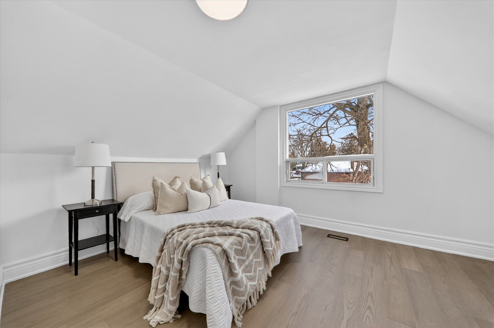 Prime upper bluffs community! Located in the highly sought-after r. H. King academy school district, this beautifully renovated 3+2 bedroom home showcases modern touches throughout while offering the perfect blend of comfort, space, and location. Enjoy a sun-filled living room featuring gleaming hardwood floors and a large bay window that fills the home with natural light. The main level includes a stylishly updated 4-piece bath with a soaker tub and well-proportioned bedrooms ideal for family living. The finished basement provides exceptional additional living space with an extra bedroom, spacious recreation room, laundry area, and a renovated 3-piece bath-perfect for guests, extended family, or a home office setup. Step outside to a gorgeous covered patio overlooking a private, south-facing backyard, ideal for entertaining or quiet relaxation. Minutes to bluffers park waterfront, trails, schools, transit, and amenities. Truly a must-see home in an unbeatable location!