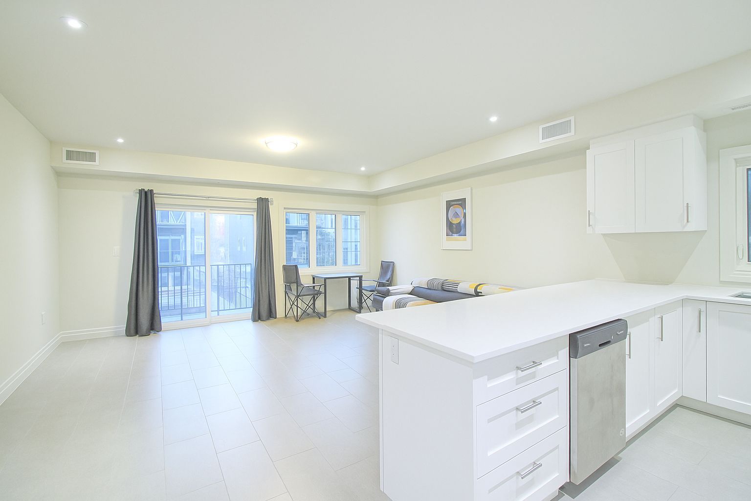 • Spacious condo with 9-ft ceilings and oversized windows for natural light.