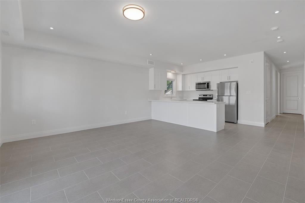 **top floor condo** welcome to windsor's most unique condo development in a great location off riverside drive. This beautiful unit features 2 bedrooms & 1. 5 bathrooms. Enjoy having both a front and back door to access this stunning home that offers a bright open concept living room, kitchen & dining room, 2 balconies (one juliet style), in suite private laundry & 6 appliances. High end finishings thru-out with soaring 9 foot ceilings, 8 foot doors, quartz counters, & much more. Designated parking space, close to shopping and the ganatcho trail.