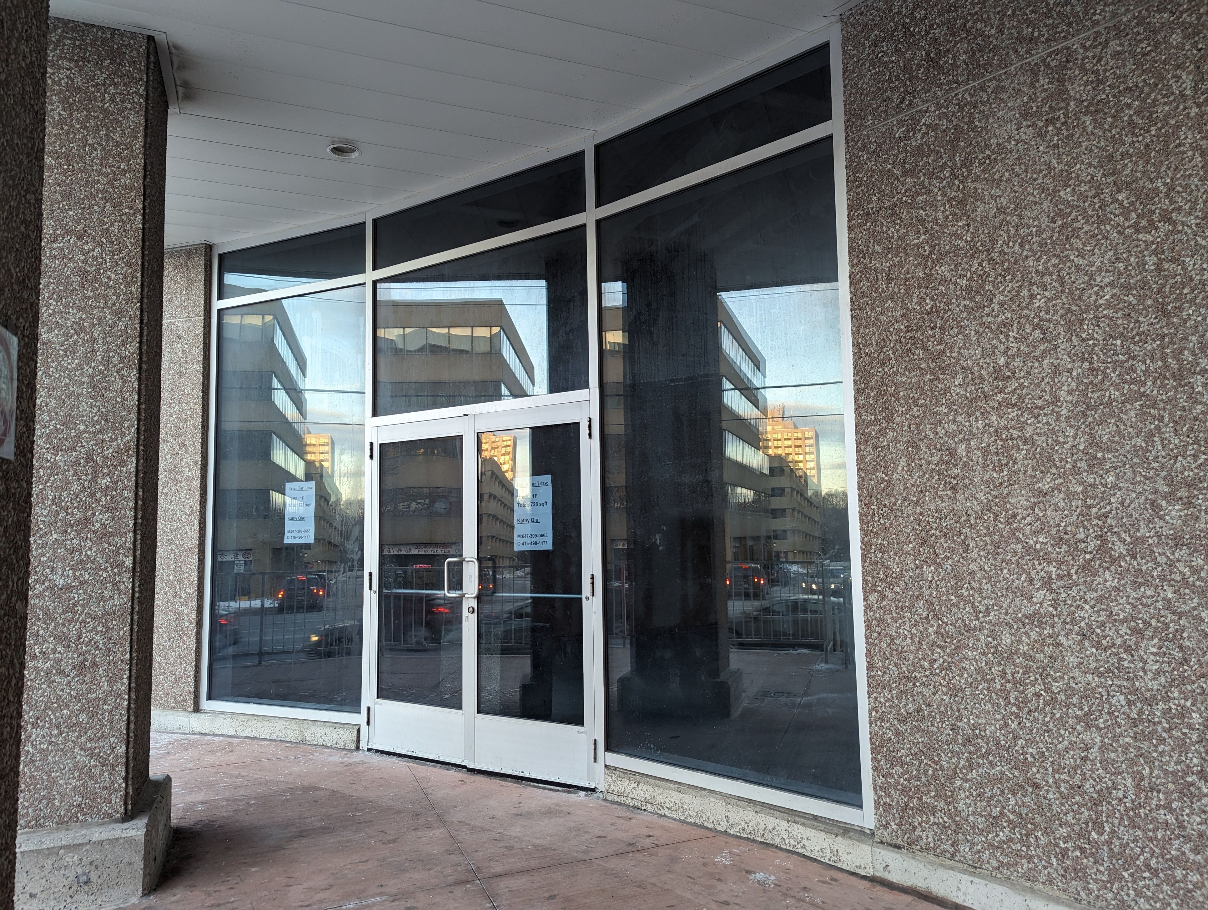 Excellent opportunity to lease a retail unit inside medical office building with outstanding anchor retail tenants shoppers drug mart and bank of montreal. Great opportunity to open up your own business, ttc at door, major highways 401, 404, two bus lines to two subway stations, close to future subway station. Many uses are allowed. Very bright and more natural lights on main floor. Super convenient location. Tons of parking space on the ground and underground parking. Located in plaza with walmart & nofrills, restaurants, and more. Total size is around 728 sq ft. Must see, don't miss it! **extras** lease price subject to hst, net rent increase $1/sqft/annually every 2 years