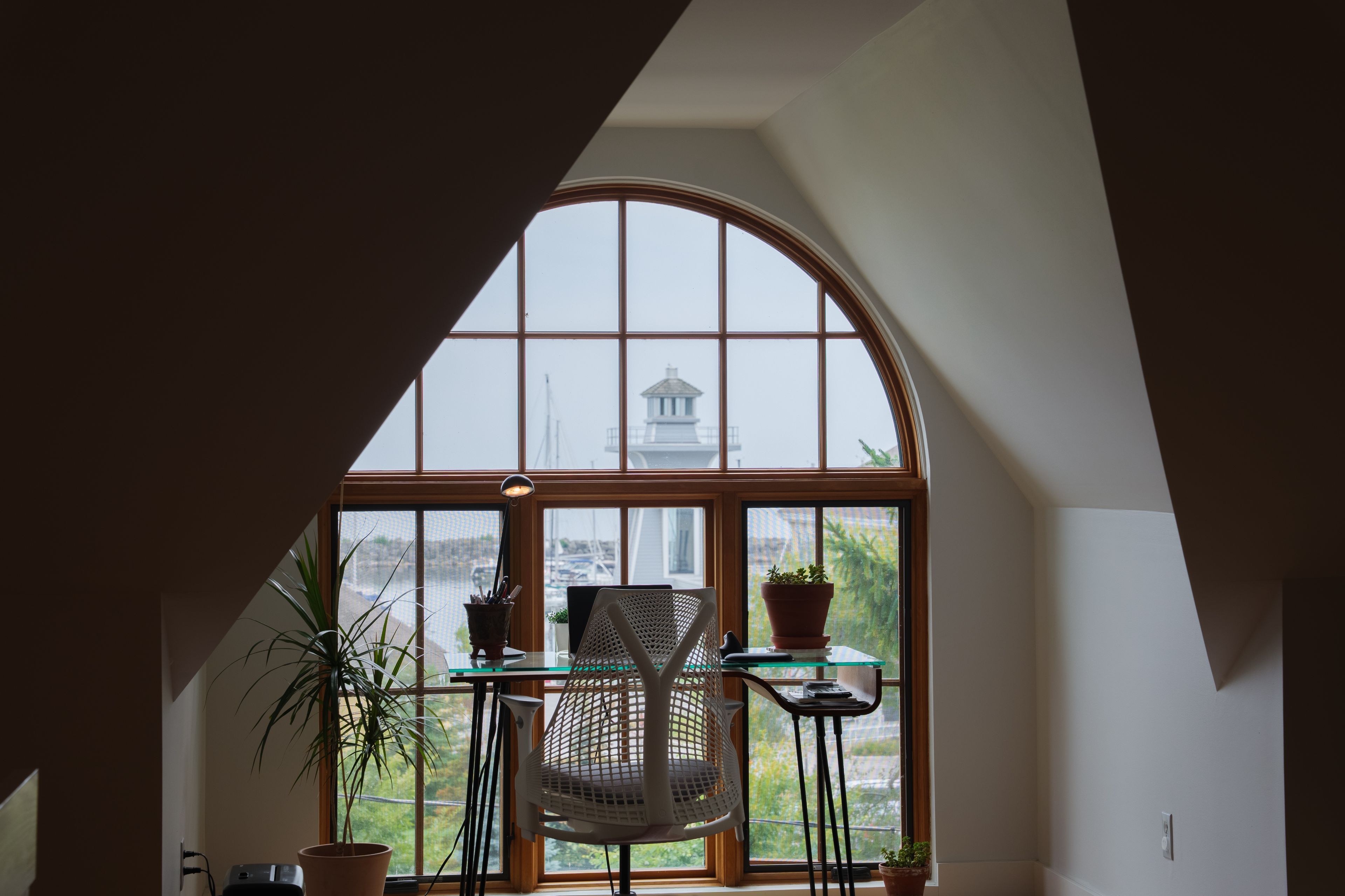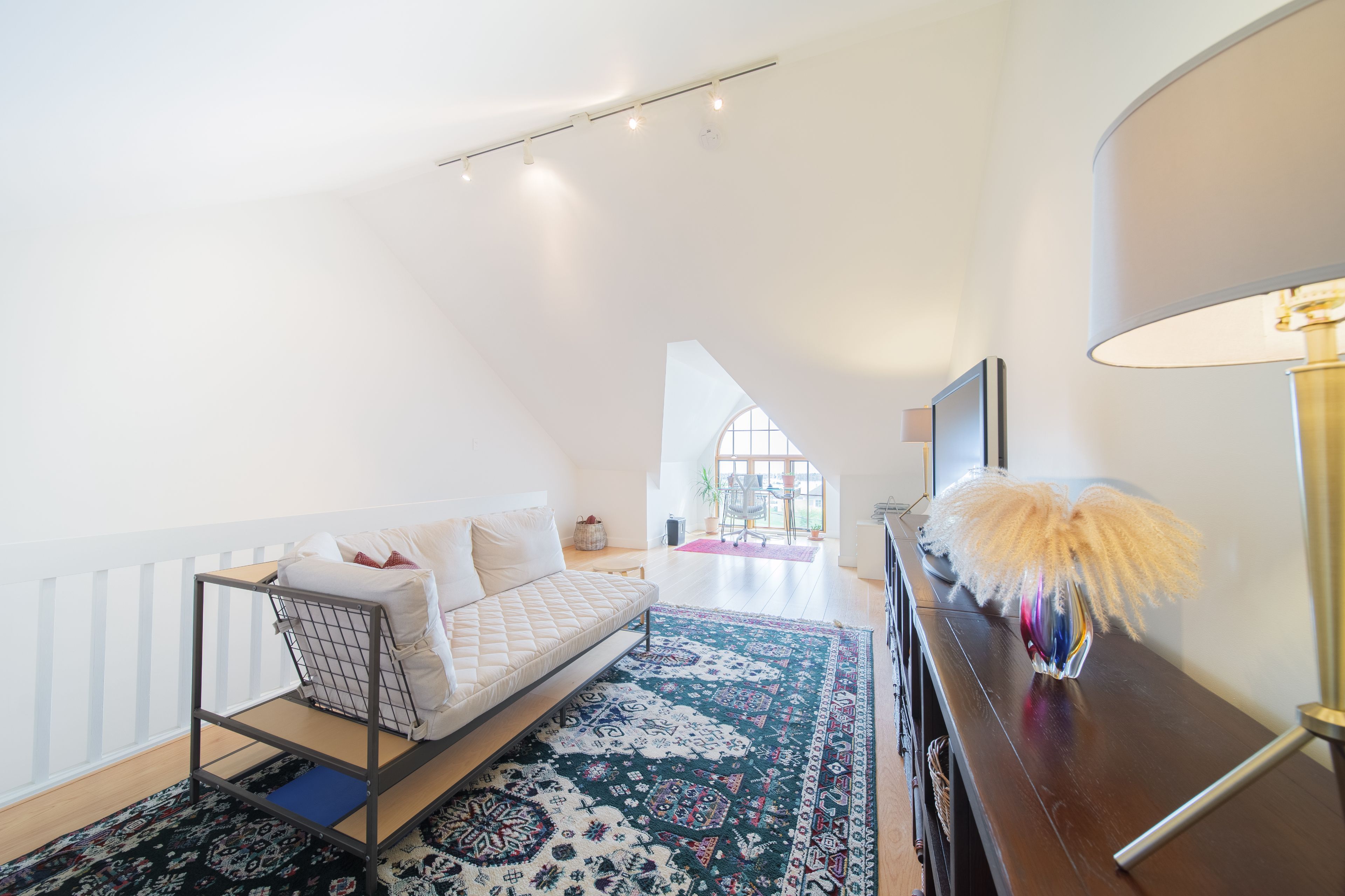 • Loft area with cathedral ceiling offers stunning water views and serene retreat.