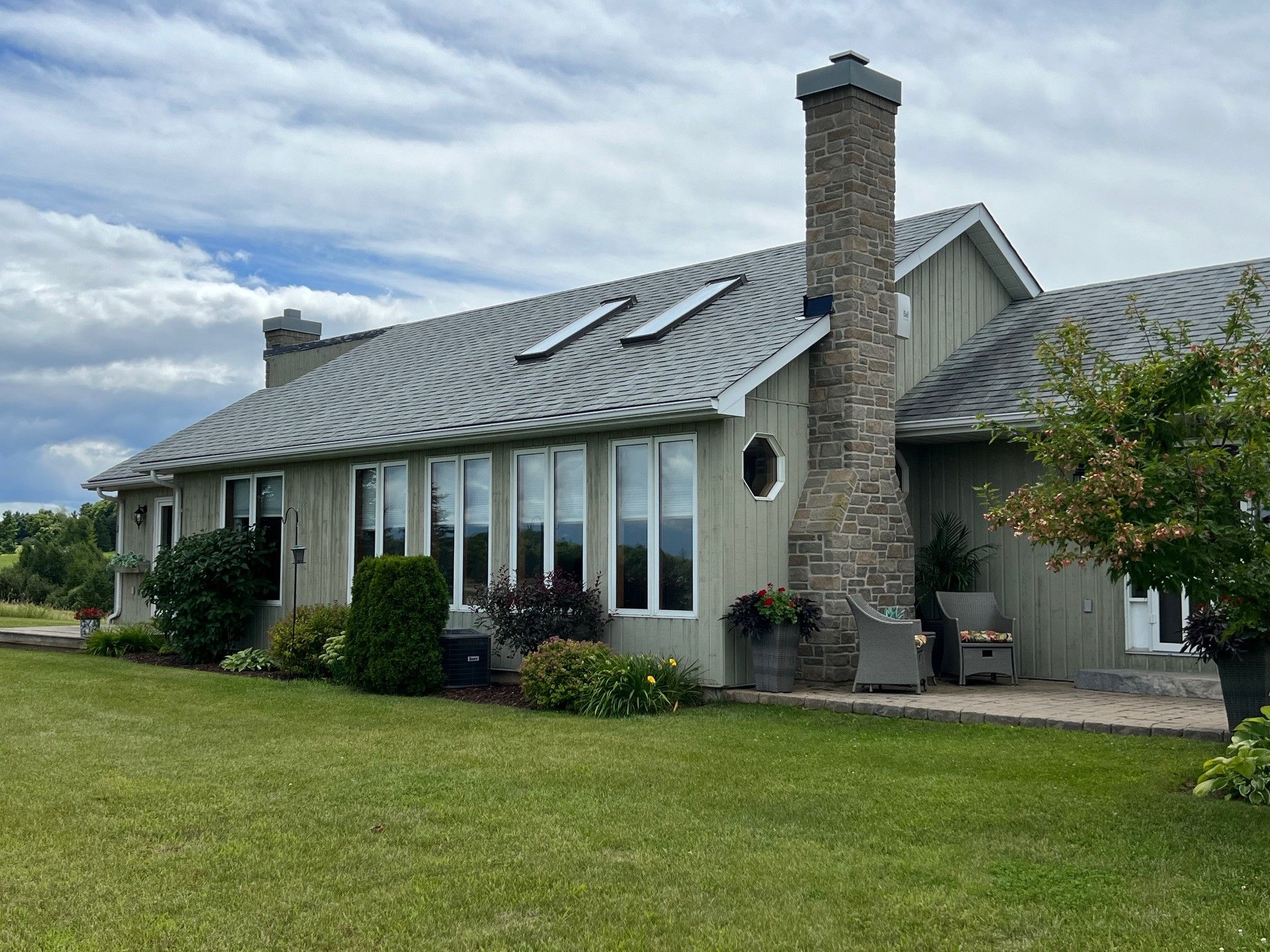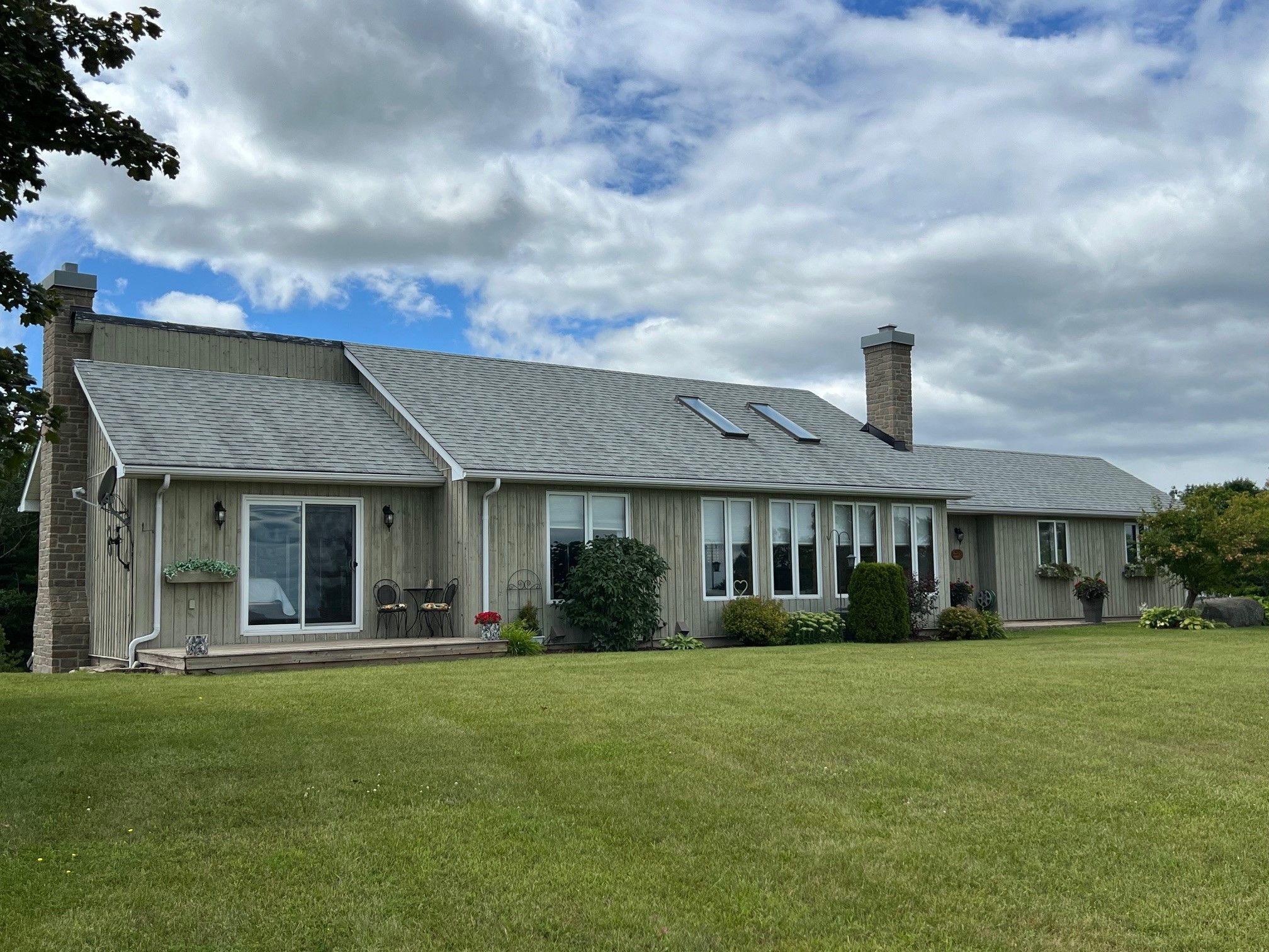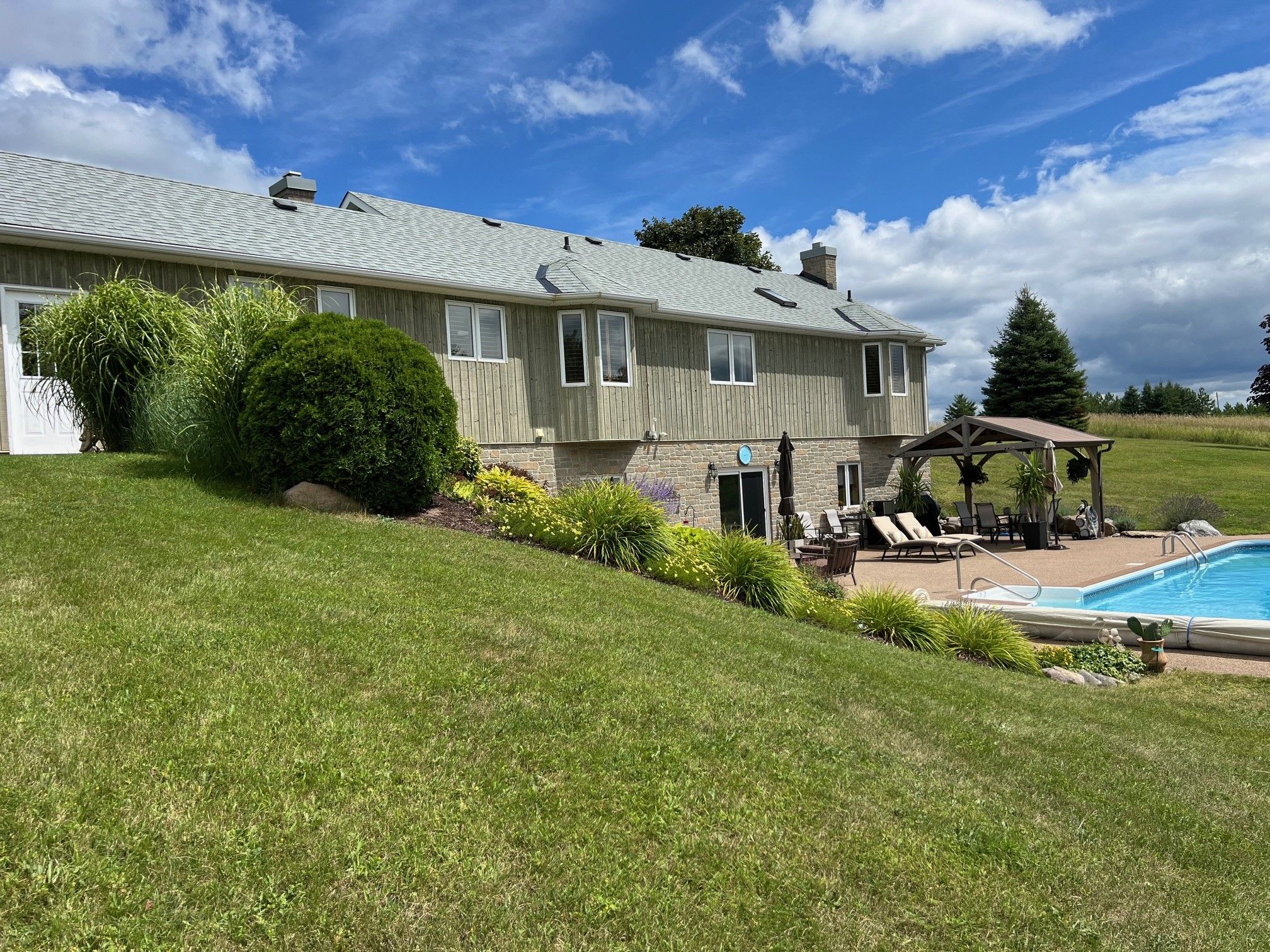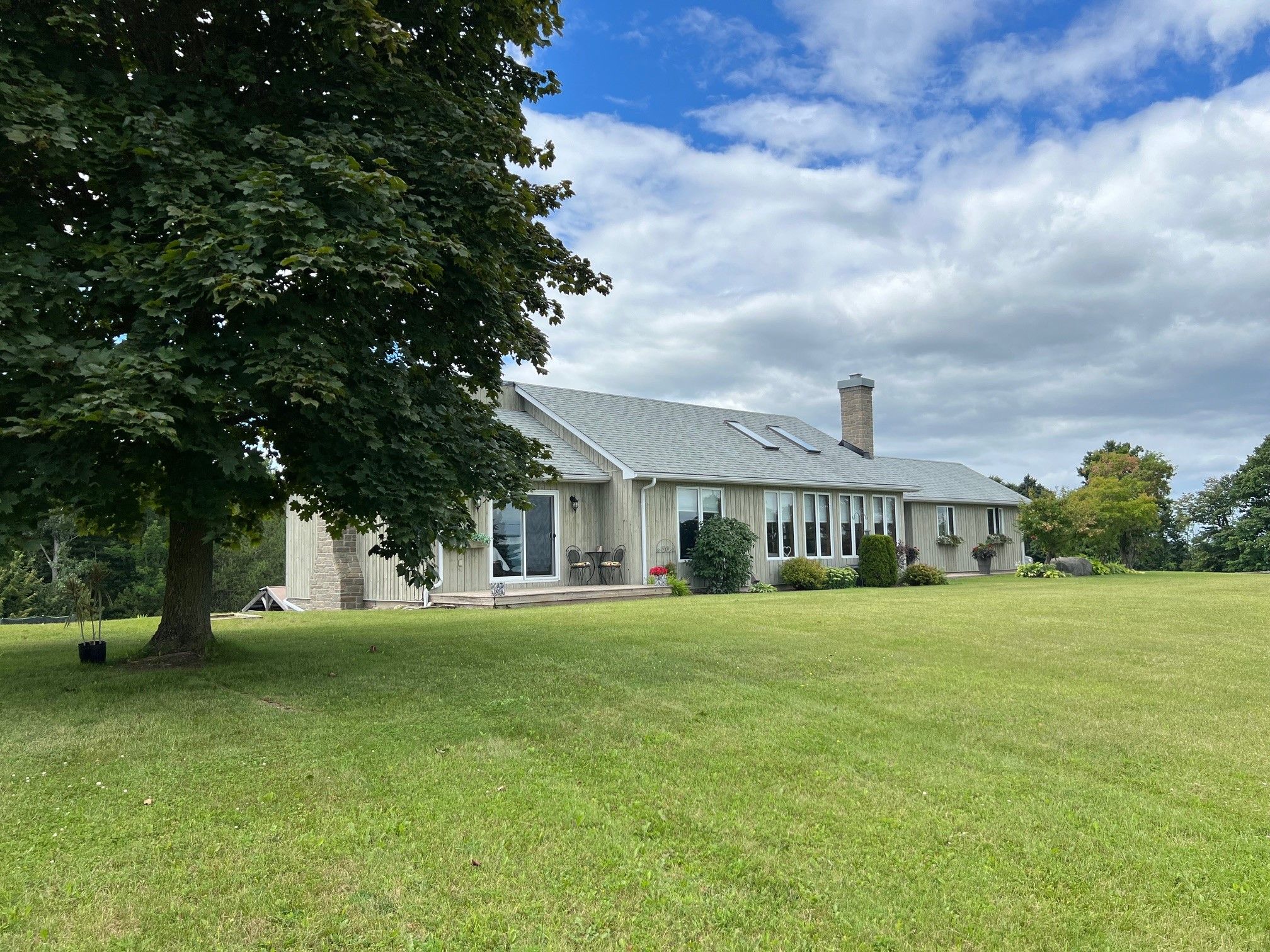 Discover the perfect blend of luxury and nature at this spectacular rural retreat, minutes from the vibrant village of creemore. Set on nearly 42 private, rolling acres, this property offers a beautiful mix of open fields, mature forests, and a serene stream. Explore almost two miles of meticulously maintained trails, ideal for hiking, horseback riding, or cross-country skiing. The home itself spans over 3,000 square feet of living space, designed with an open-concept layout. Featuring four bedrooms and three bathrooms, the interior is finished with solid oak flooring and trim throughout. Gather in the cozy, sunken living room by the fireplace, or entertain in the lower-level great room, which also boasts a fireplace and a walk-out to a stunning outdoor oasis. Step outside to a beautiful in-ground pool overlooking the forest-your private sanctuary. Additional features include an impressive 50 ft x 40 ft outbuilding, providing ample space for all your toys, vehicles, or a workshop. This is a four-season paradise. You are minutes away from premier recreation: skiing at devil's glen and blue mountains, golfing at mad river, and the shores of georgian bay and wasaga beach. Experience peaceful country living with every amenity nearby.