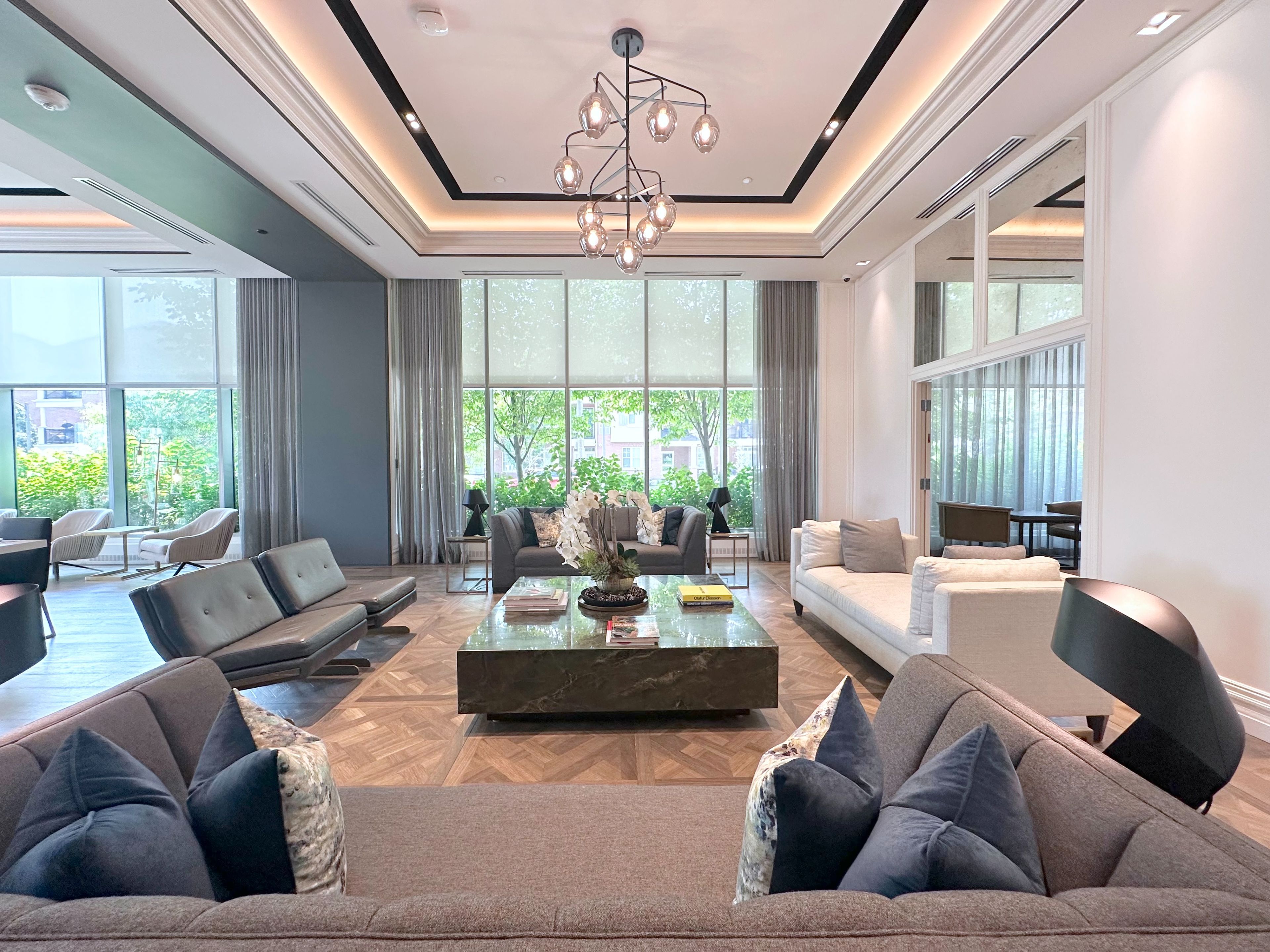 • Sophisticated open-concept suites with modern finishes and private balconies.