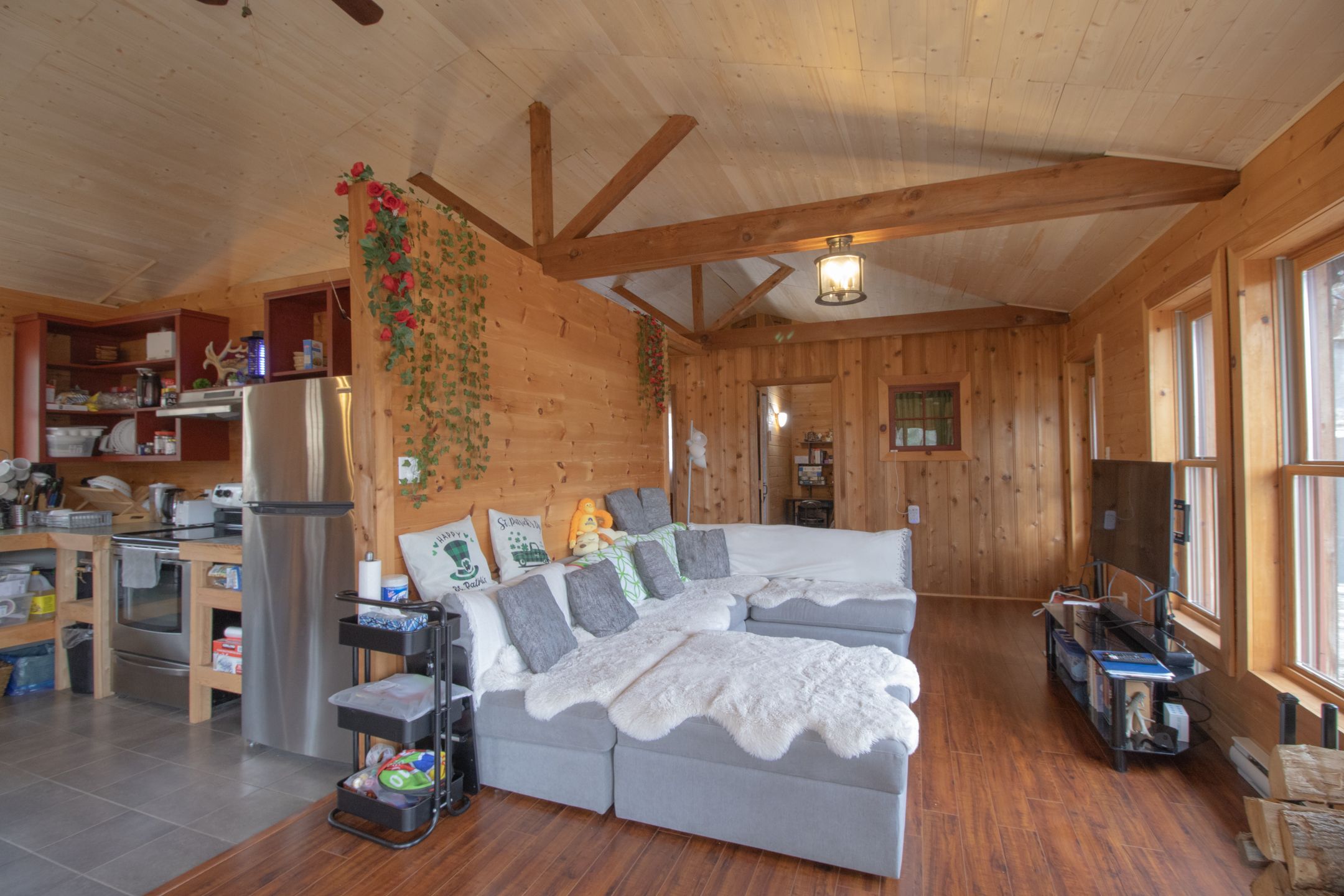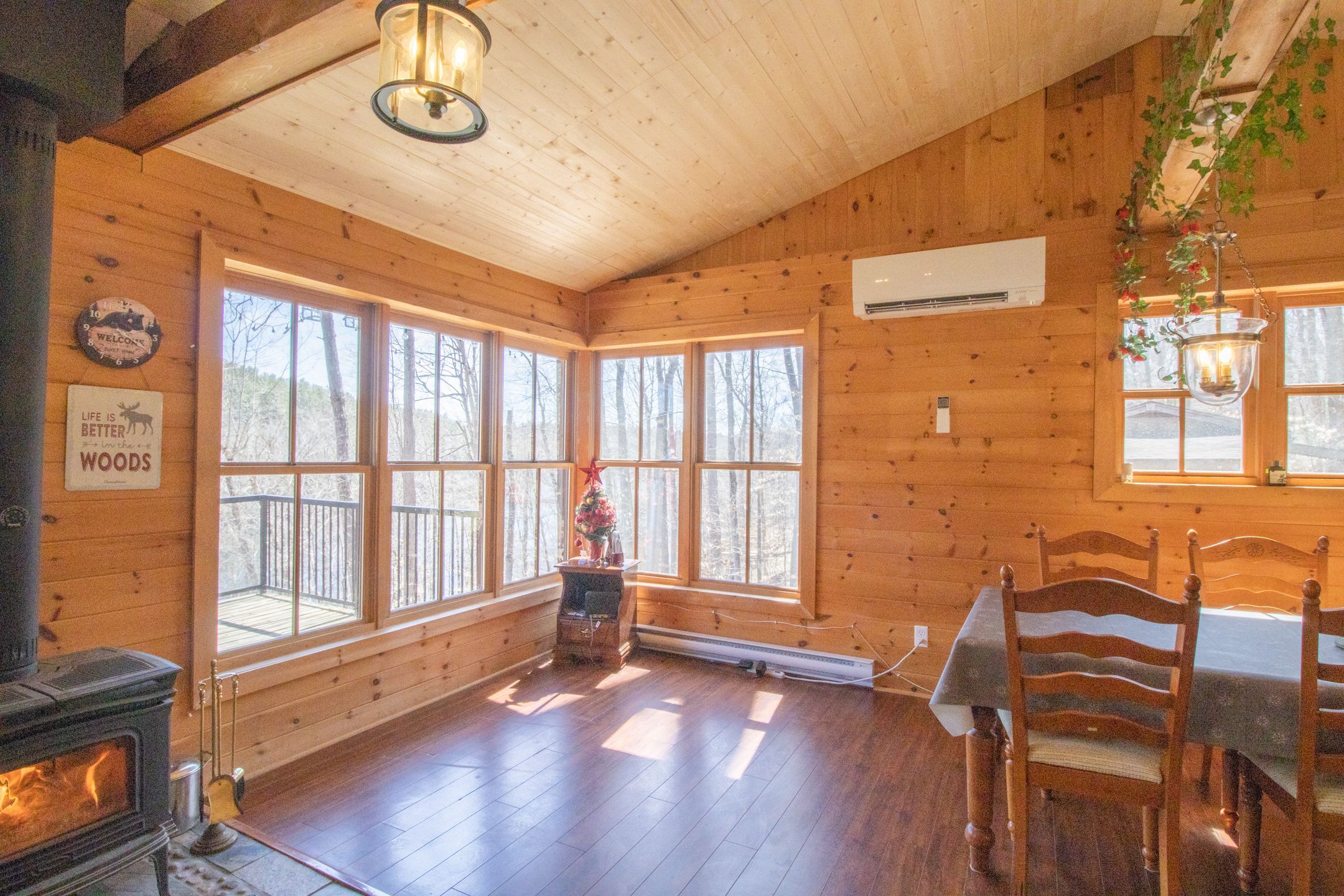 Nestled on a huge lot, just 40 minutes from ottawa, this charming water front 4 season cottage is enveloped by a lush green oasis on a 1. 23 acre of land, offering fantastic privacy and a direct connection to nature. Surrounded by towering trees and the soothing sounds of the madawaska river, this retreat blends rustic charm with modern comfort. Inside, the two bedroom, two bathroom space boasts an open-concept design with a soaring cathedral ceiling, creating an airy, light-filled ambiance. Gather around the acoustic fireplace for cozy evenings, or unwind in the big sunroom where sunlight streams in year-round. Foam insulation in the roof and under the floor, recent installed air source heating pump/air conditioner, plus the baseboard heater and wood furnace make it really comfortable no matter in the cold winter and hot summer. Step outside to the huge deck facing the river, complete with a contemporary deck handrail ideal for dining, stargazing, or simply soaking in the serene views. The property features a private dock on the madawaska river, where very clear water invites you to enjoy fishing, swimming, and boating on the quiet, peaceful river. Practical amenities include high-speed internet(perfect for vacation stays or remote work),abundant parking space, and a new air-source heat pump for year-round comfort. Whether you are kayaking at dawn, working from the sunroom, or savoring the stillness of your green oasis, this cottage offers a rare blend of adventure and seclusion. Calabogie peaks ski resort and motorsports park in a very short driving distance. A true sanctuary where memories are made.