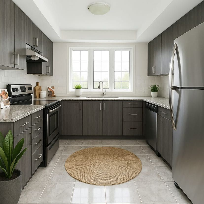 • Bright open-concept layout with modern kitchen featuring quartz countertops.