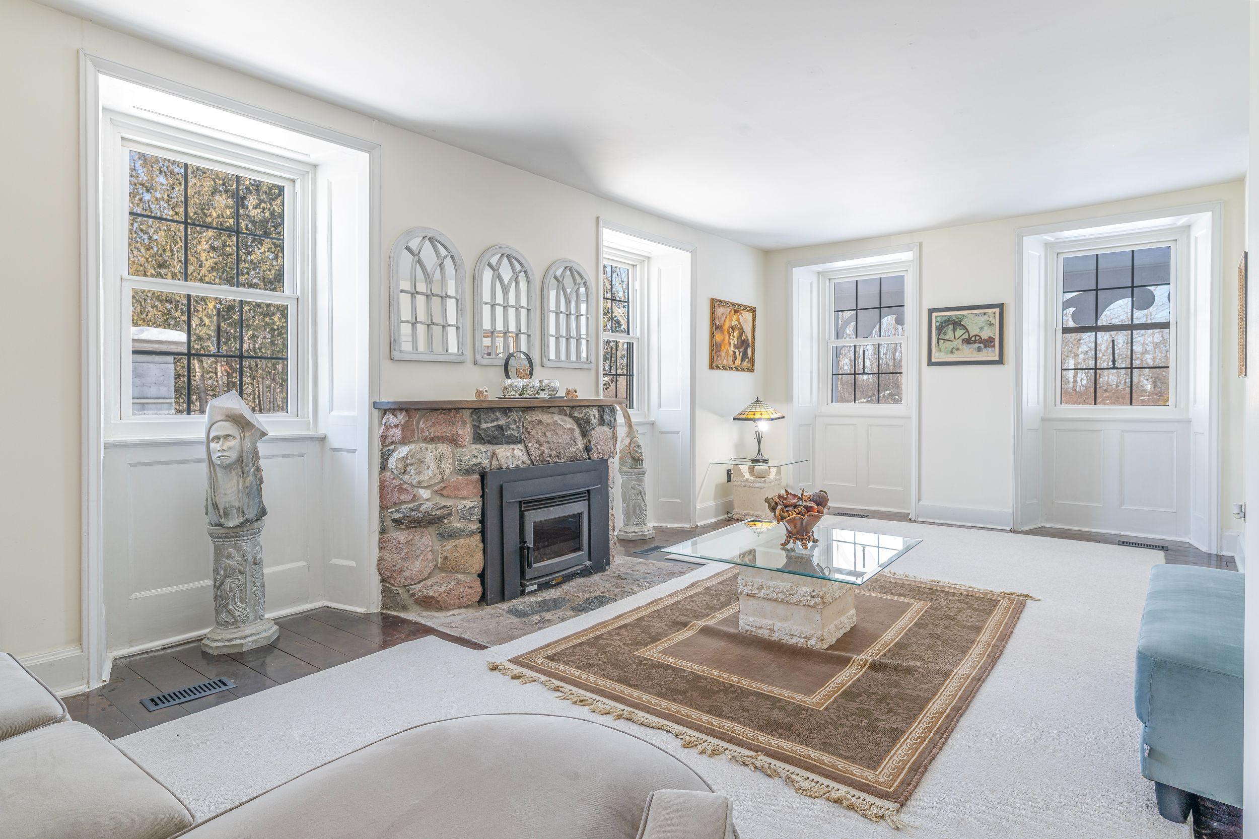 Welcome to this gorgeous solid stone home offering privacy, space, and comfortable modern living on a beautiful country setting just minutes from big rideau lake. Beautifully maintained, this property blends timeless construction with extensive updates and over $100,000 invested in improvements, giving buyers peace of mind while preserving the home's unique character. The main level is designed for everyday family life and effortless entertaining. Large principal rooms provide flexibility for both formal and casual living, while many picturesque windows bring in natural light and showcase the surrounding greenery. The oversized family room is truly the heart of the home, perfect for movie nights, celebrations, and quality time together. The wood burning stove adds warmth, comfort, and an inviting atmosphere that naturally draws everyone in. The open concept kitchen and dining area is designed for both everyday living and entertaining, offering ample counter and cupboard space, a gas range cooktop, and a convenient in wall oven. A standout feature is the bright four season sunroom, offering additional year round living space with direct access to the large deck overlooking the peaceful backyard. Whether it is your morning coffee, kids playing outside, or evening relaxation, this setting delivers tranquility and privacy in every season. Upstairs, the second level offers four generous bedrooms, a well appointed family bathroom, and a versatile flex room ideal for a nursery, study area, or home office. The property continues to impress outdoors with plenty of room for gardening, recreation, and enjoying nature. A heated workshop provides excellent space for hobbies, projects, or extra storage. If you are searching for a home that offers land, privacy, meaningful updates, and room for your family to grow, all within easy reach of the lake and nearby amenities, this is a rare opportunity. Call for your personal showing today.