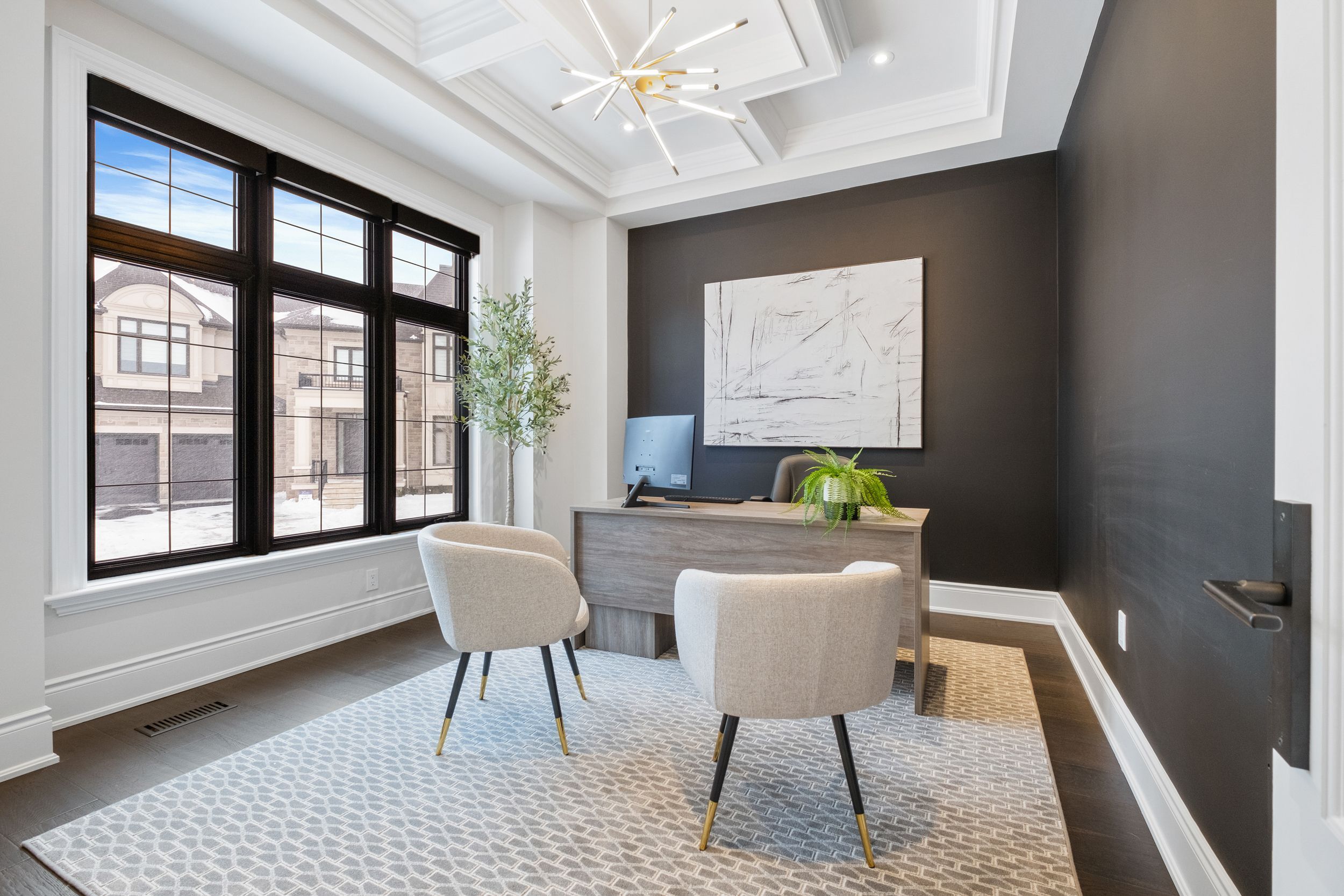 Welcome to the jewel of glen abbey encore. Built by the prestigious hallet homes, this stunning professionally designed home offers 4,990 sq. Ft. Above grade. Everything in this home has been designed with purpose and style in mind. The custom entry door and statement chandelier in the foyer sets the tone for the exquisite interiors. The dining room with coffered ceilings, accent lighting, and custom wallpaper, is complemented by a butler's area featuring a bar fridge and ice maker. A chef's dream, the gourmet kitchen boasts extended cabinetry, quartz countertops, a large island, high-end jenn-air appliances including a 6-burner gas stove with pot filler and double wall ovens and a walk-in pantry. The great room features a stunning dekton fireplace, coffered ceilings and double doors that open to a covered lanai with a fireplace, ceiling fan, and tv-ready setup, creating an inviting space for year-round entertaining. The home office, features coffered ceilings and tons of natural light, offering a refined and functional workspace. The primary suite is a true retreat, complete with morning bar, two-sided fireplace, and a spa-like ensuite featuring heated floors, a freestanding soaker tub, a glass-enclosed walk-in shower, and a double vanity with quartz countertops. Four additional bedrooms, each with private or adjoining ensuites and walk in closets. A thoughtfully designed second-floor laundry room includes dual washers, a dryer, custom cabinetry, folding counter, and fold-out drying racks. Beyond the interiors, the home sits on a premium oversized lot with a fully fenced backyard and a spacious side yard. The three-car garage, designed for automotive enthusiasts, features epoxy flooring, perimeter slatwall storage, an enclosed sports locker, and the capability to accommodate car lifts, along with rough-in for ev charging. Smart home upgrades include an integrated sound system, smart lighting, motorized window treatments, and custom millwork throughout.