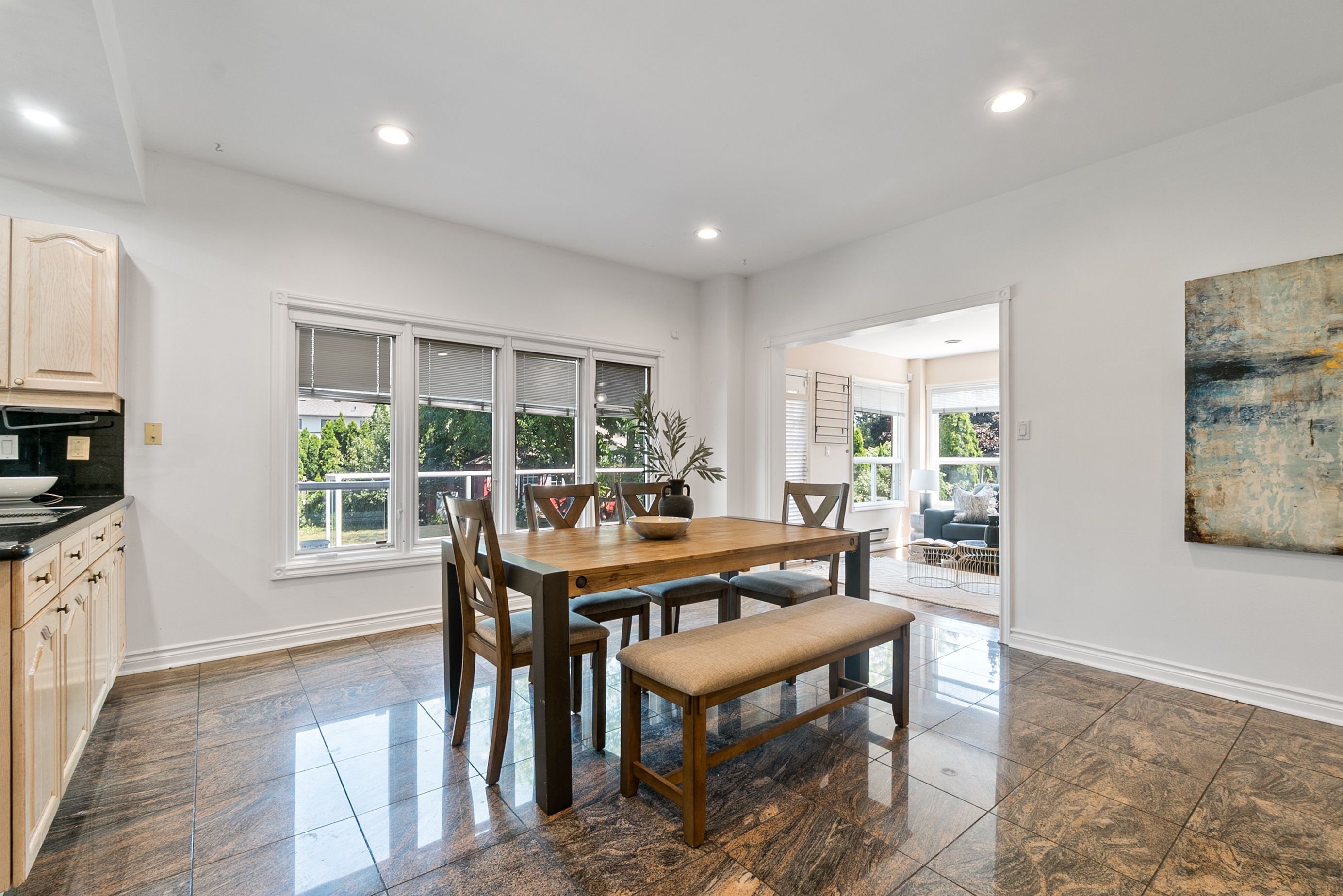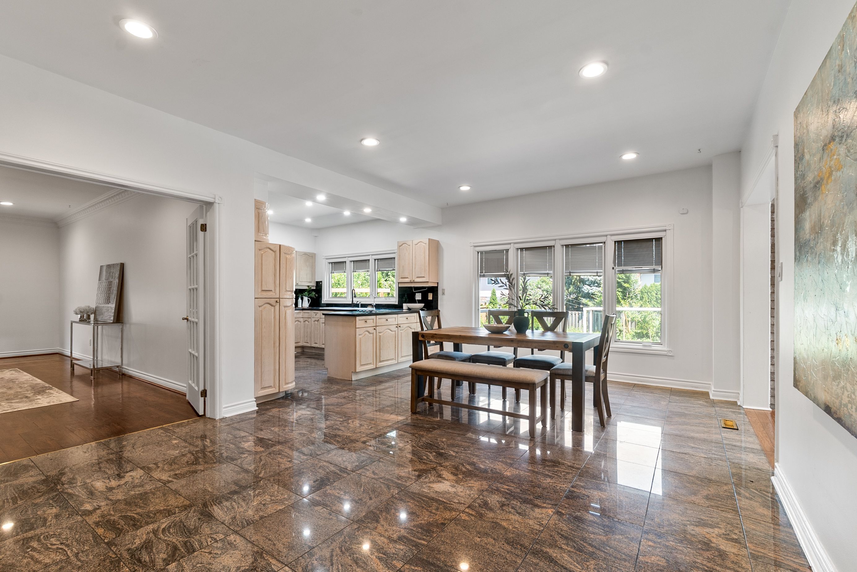 • Open-concept layout with updated windows and hardwood flooring throughout.
