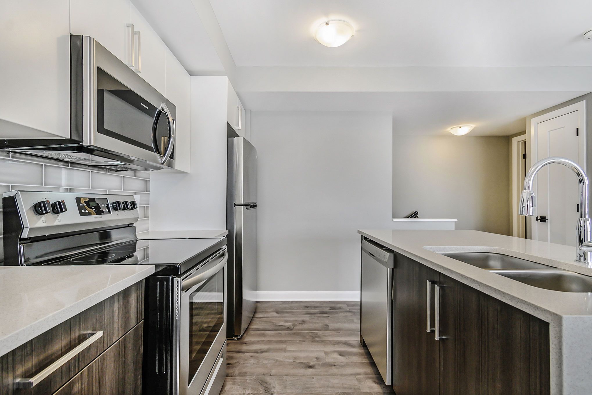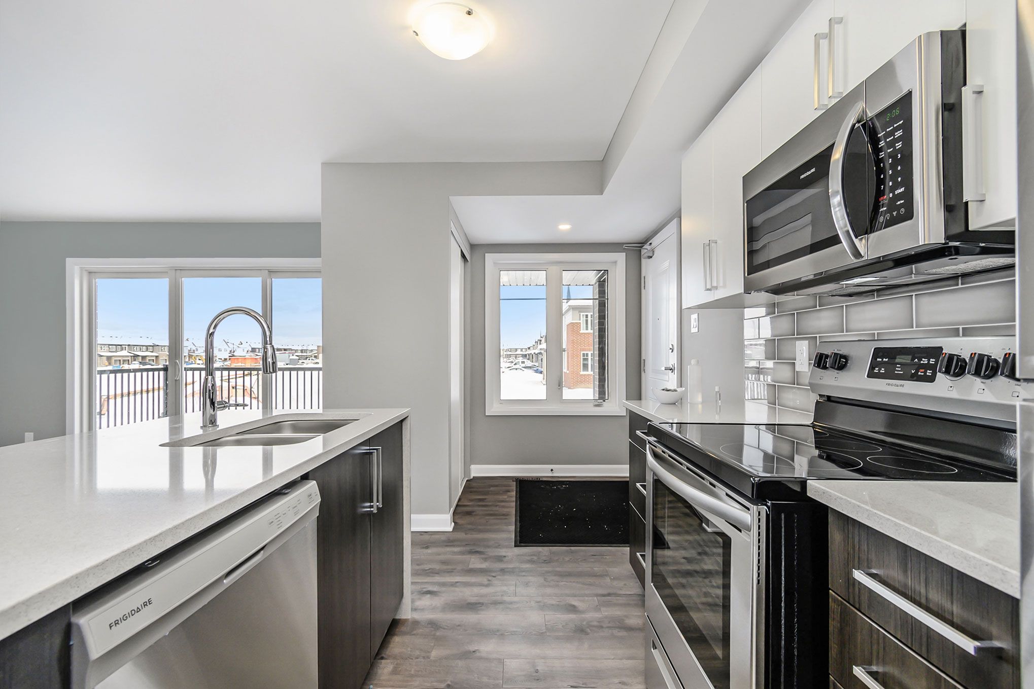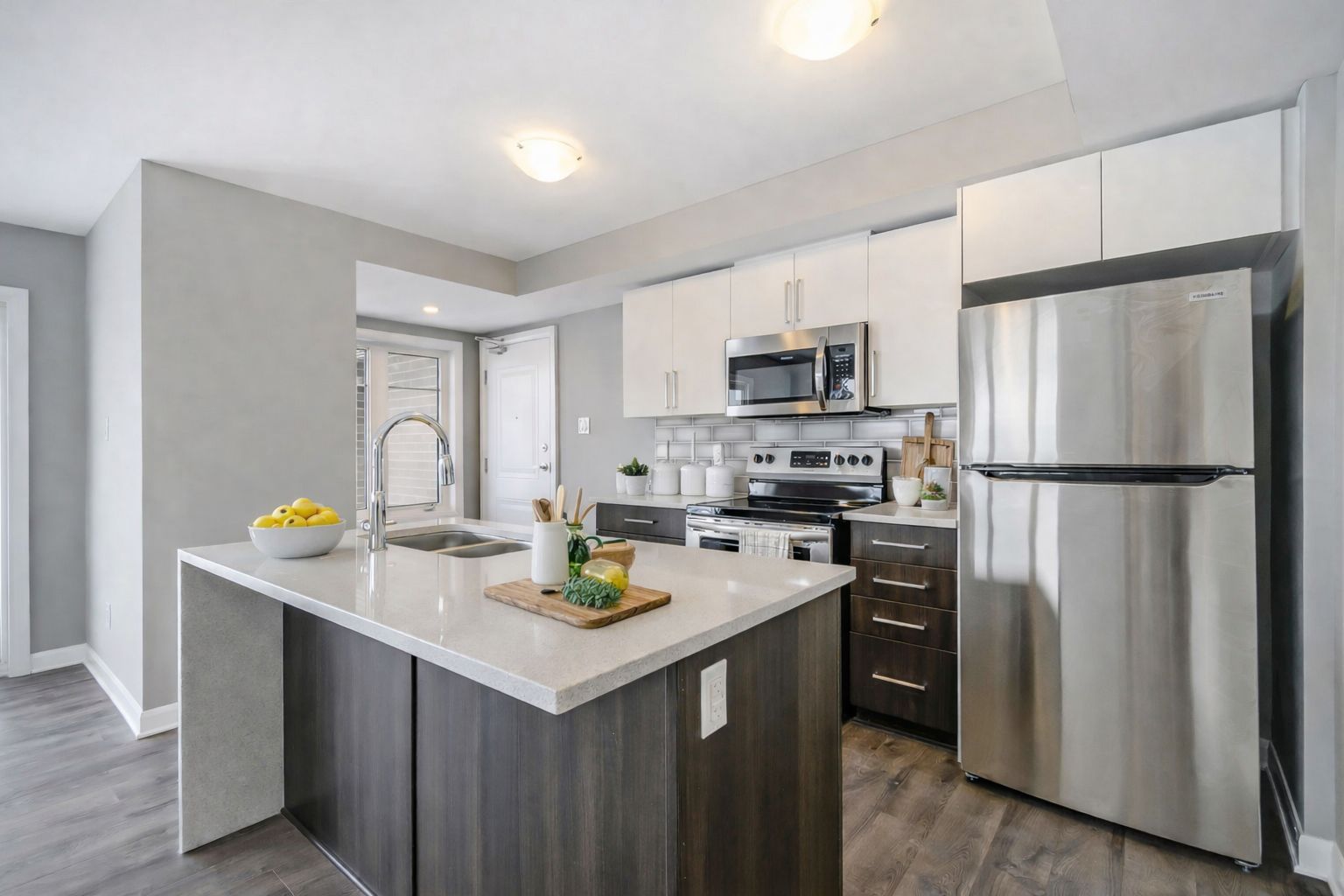 • Modern kitchen with quartz countertops and upgraded stainless steel appliances.