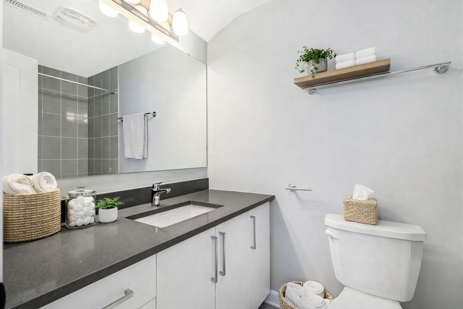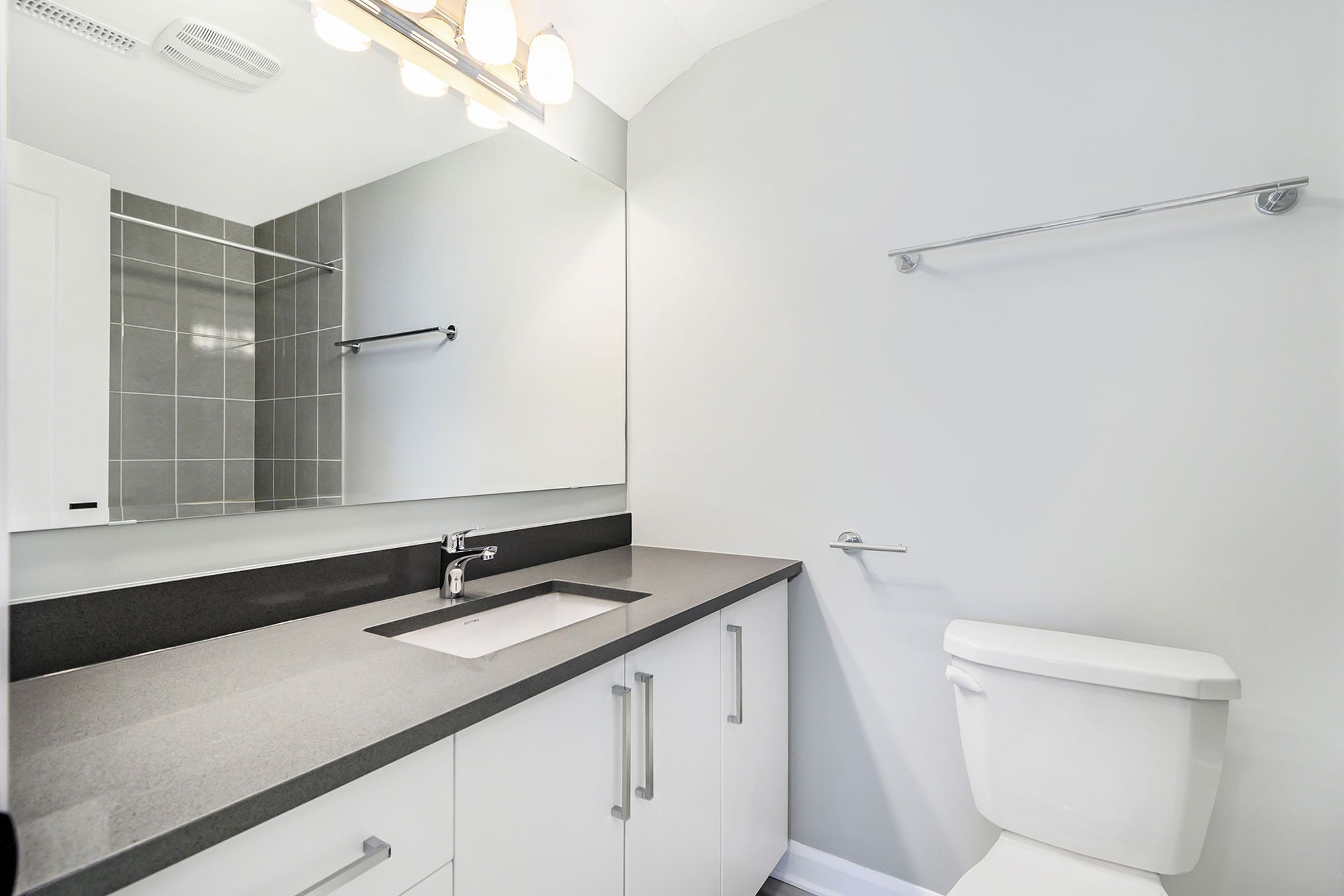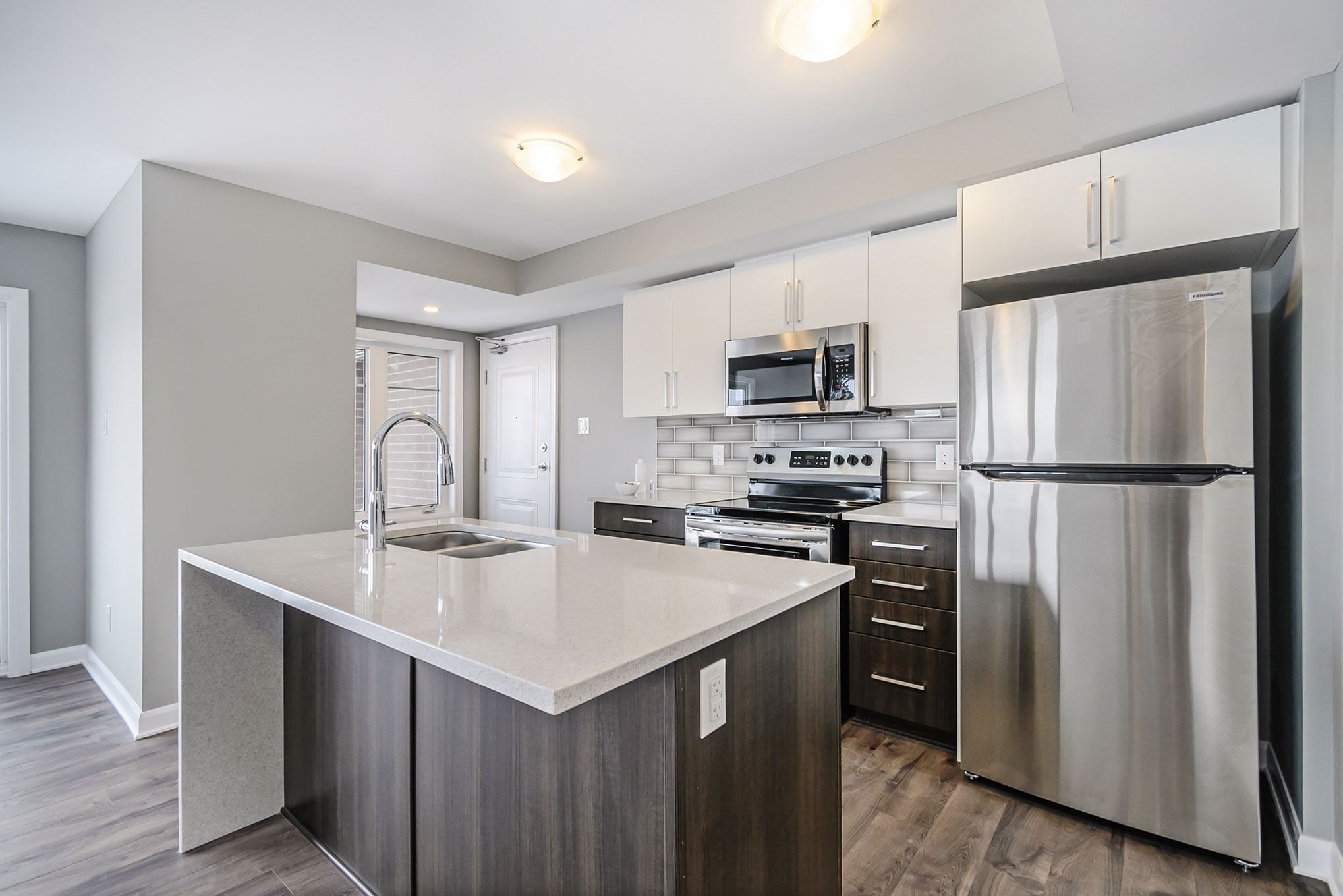 • Modern kitchen with quartz countertops and upgraded stainless steel appliances.