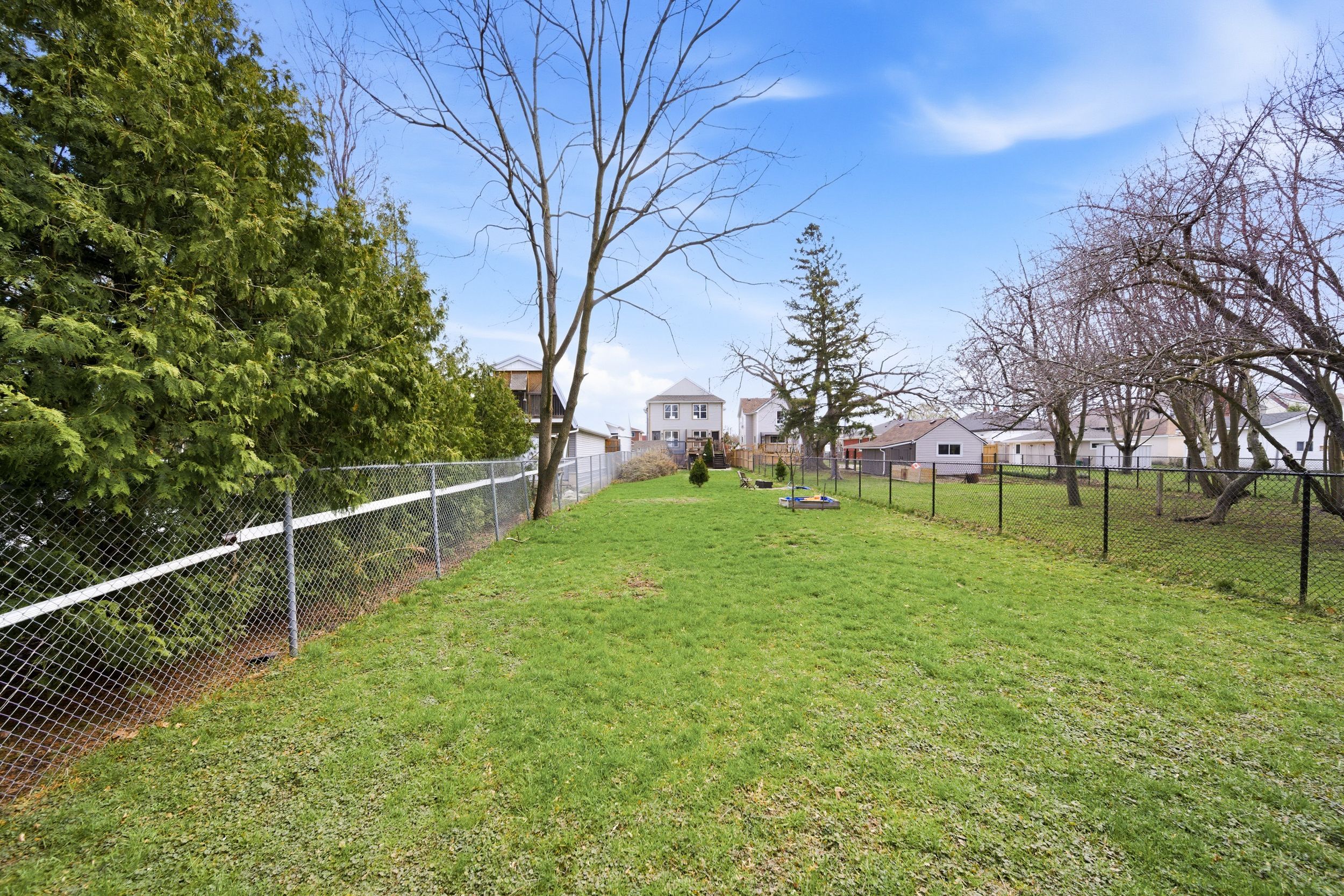 • Deep, fenced backyard with patio, great for outdoor living and gardening.