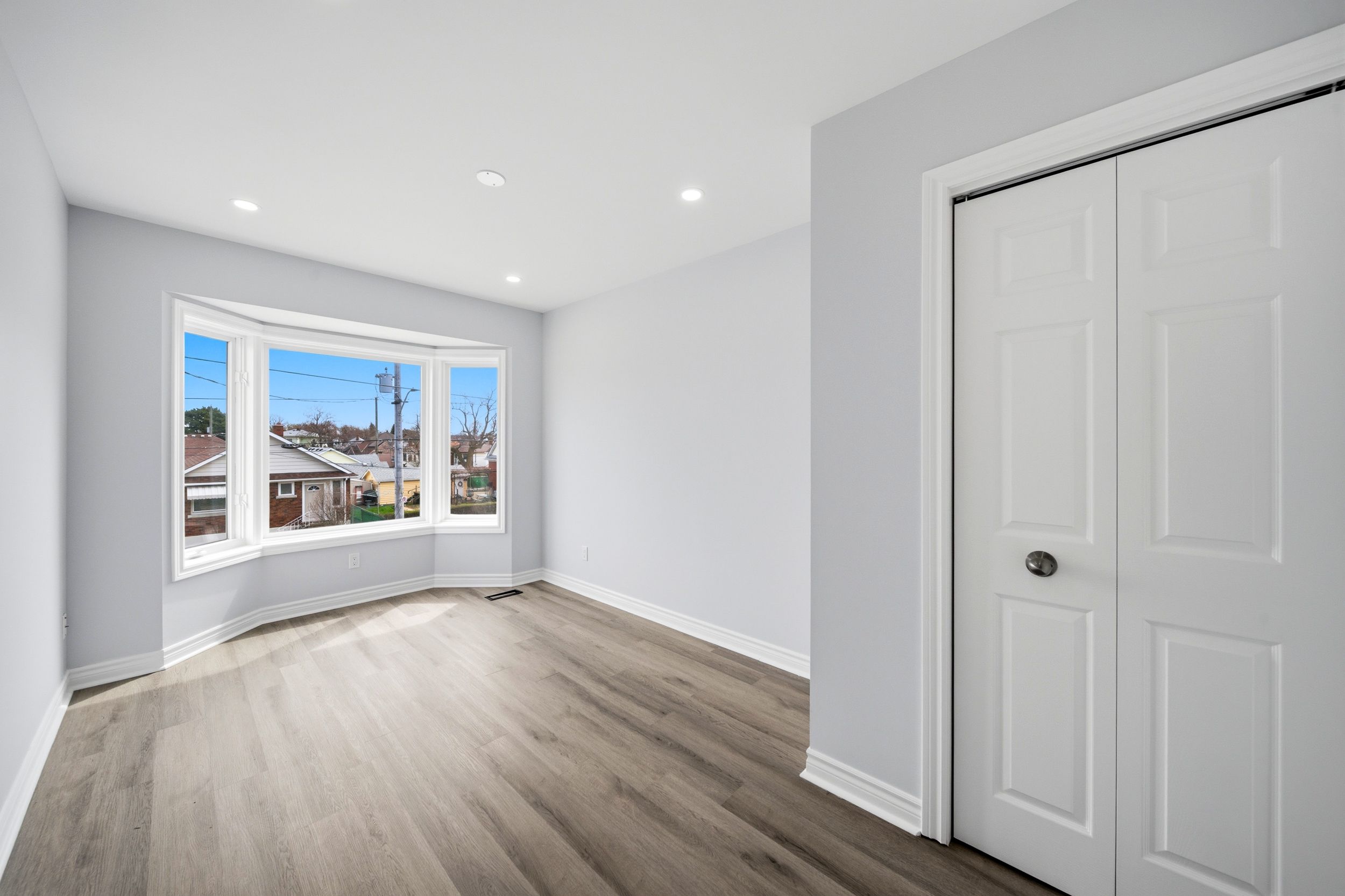 Incredible opportunity for investors, first-time buyers, or those looking to downsize! This beautifully renovated semi-detached home in st. Catharines has been updated from top to bottom and offers stylish, carpet-free living throughout. The bright, modern eat-in kitchen is a standout feature, showcasing crisp white cabinetry, new stainless steel appliances, quartz countertops, a sleek backsplash, and potlights. A charming bay window fills the adjoining dinette with natural light, creating the perfect spot for everyday meals. The spacious living and dining area features laminate flooring, a large window, and a walk-out to the backyard-ideal for entertaining or relaxing. A convenient powder room completes the main level. Upstairs, a wood staircase leads to two generous bedrooms, including the primary bedroom with double closets and a beautifully updated ensuite featuring double vanities and contemporary finishes. The fully finished lower level adds exceptional versatility, offering two additional bedrooms or flexible space for a home office, gym, or playroom, along with a full bathroom and a modern, thoughtfully designed laundry room. Step outside to a deep, fully fenced backyard with a patio and green space-perfect for outdoor living, gardening, or creating your own private retreat. A storage shed adds extra convenience. Move-in ready and thoughtfully upgraded, this home delivers comfort, style, and incredible value in a st. Catharines community.