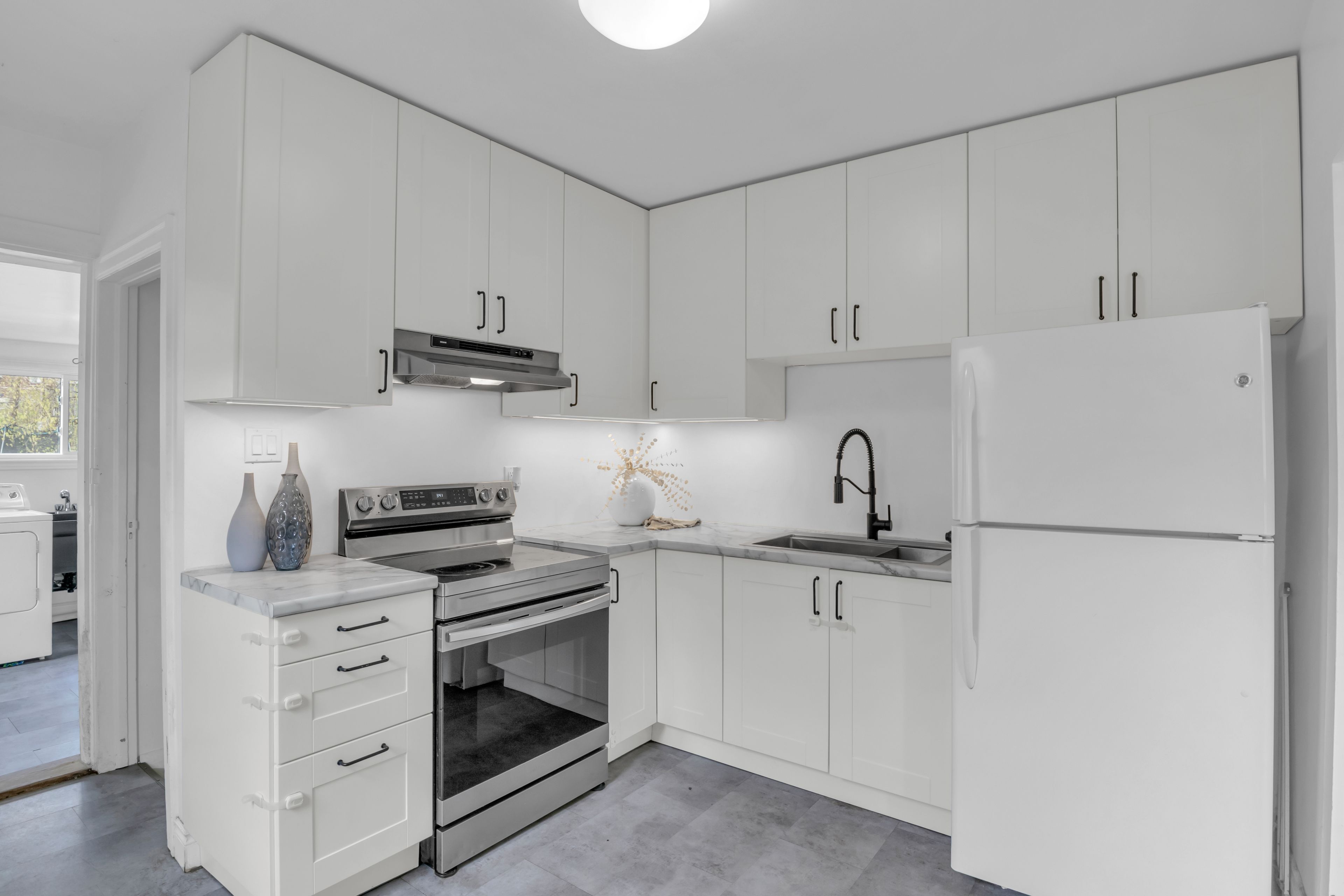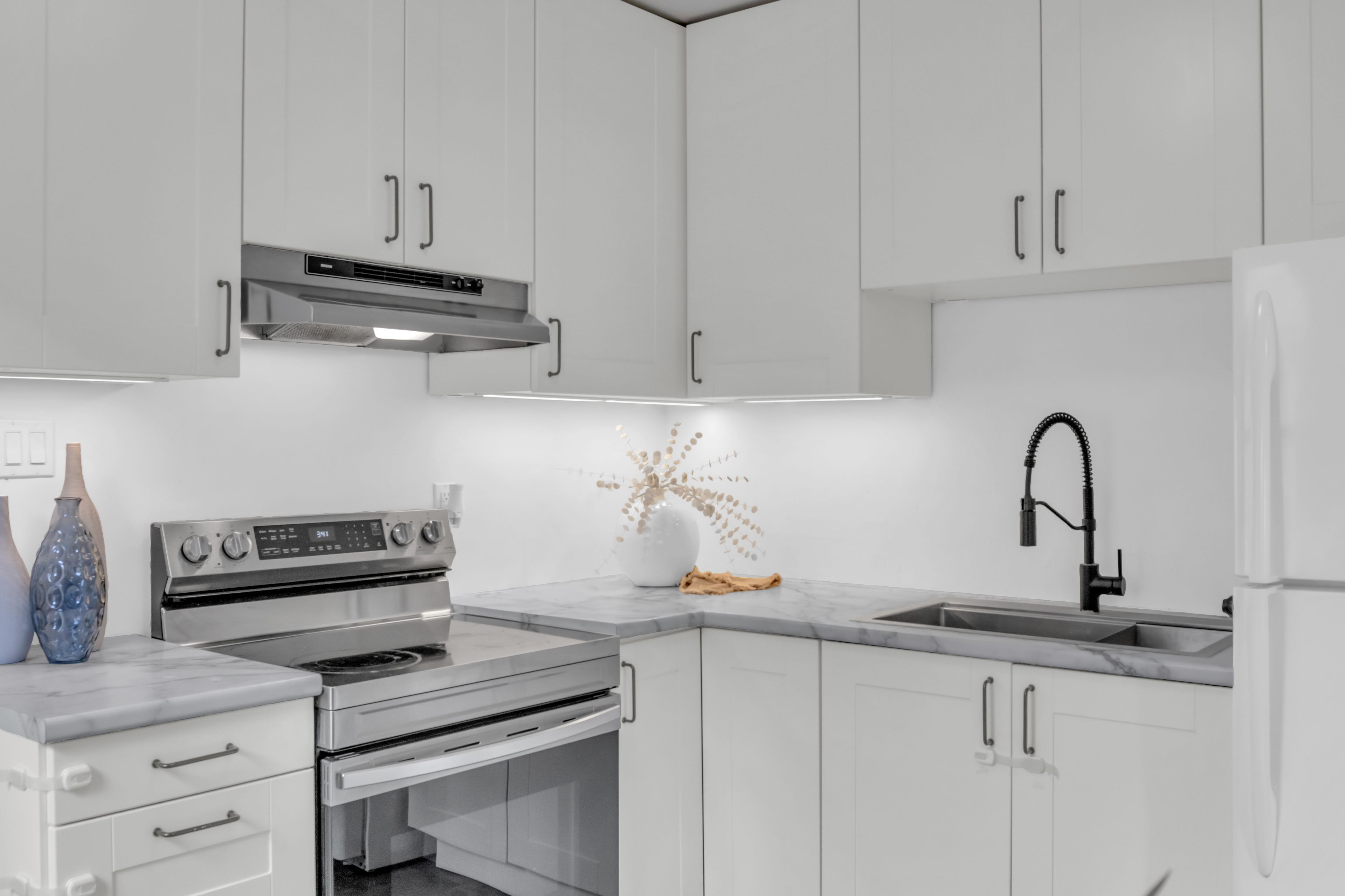 • Bright kitchen featuring stainless steel appliances and ample storage.