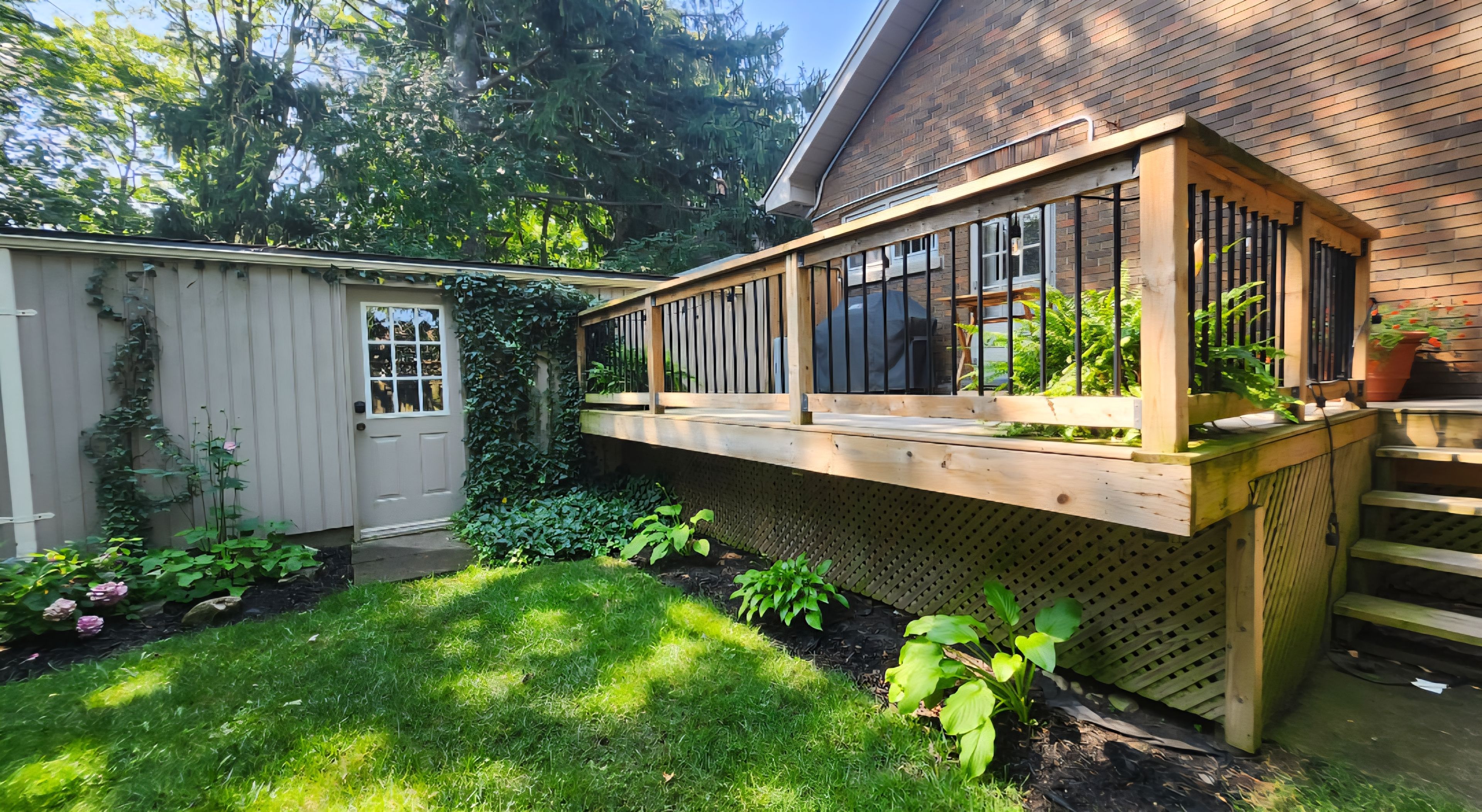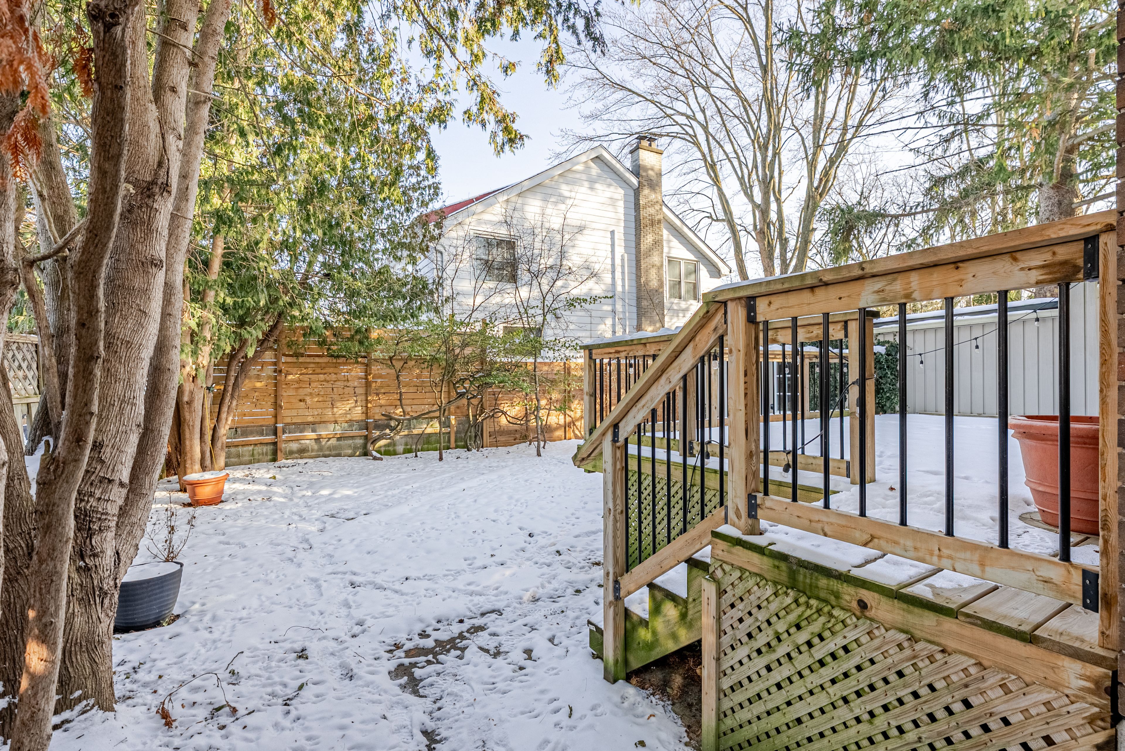 • Fully-fenced backyard with deck, great for entertaining in summer.