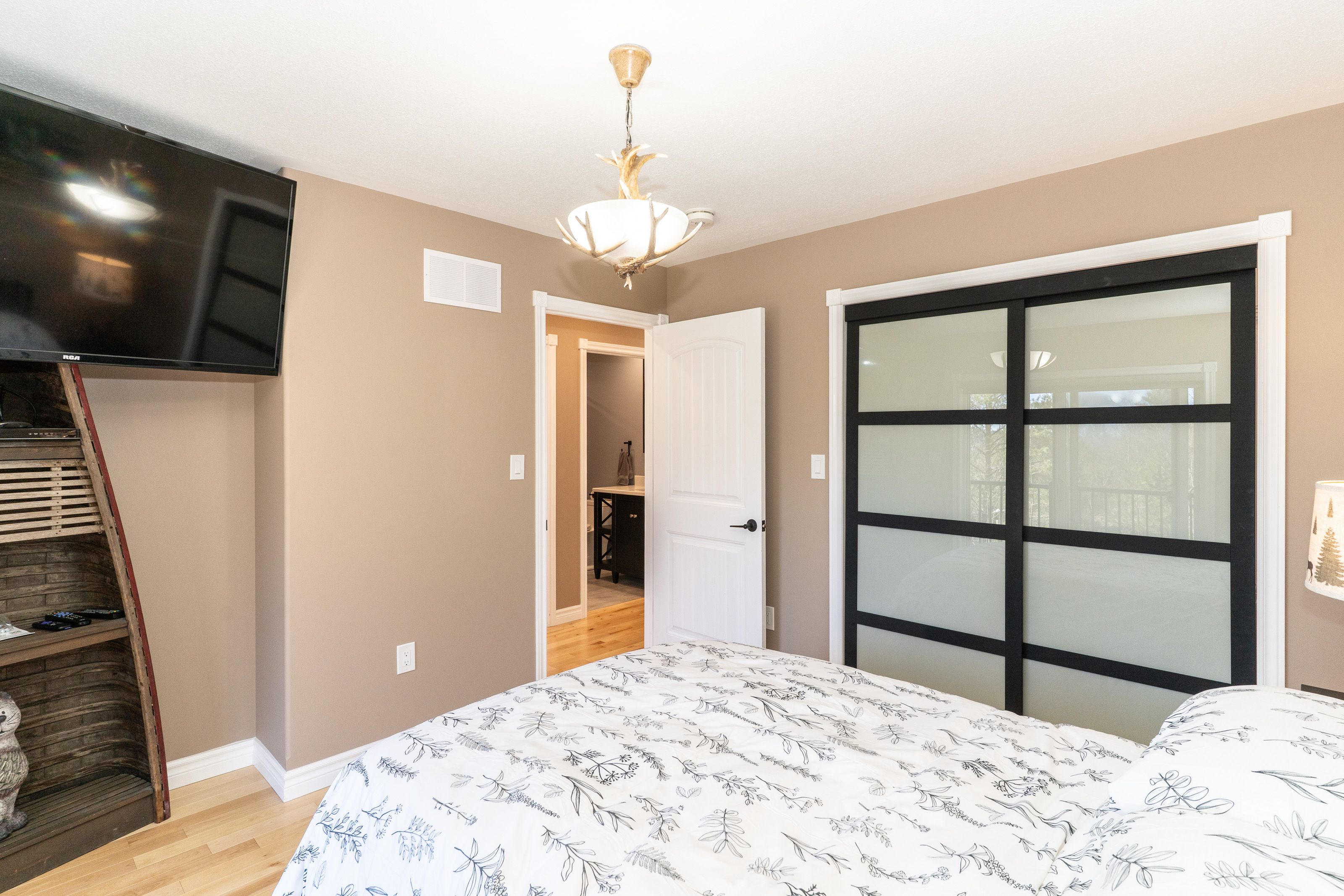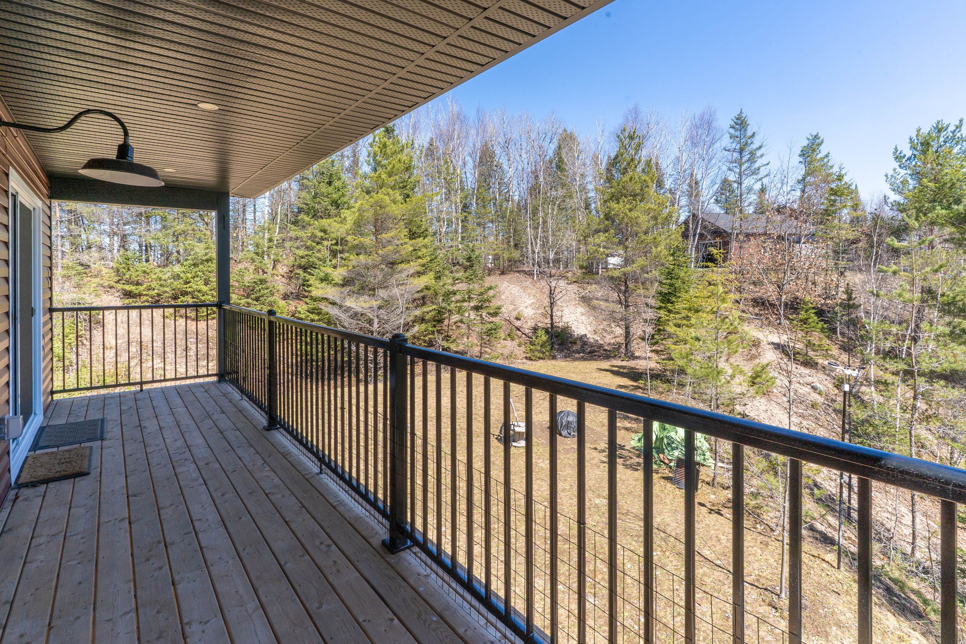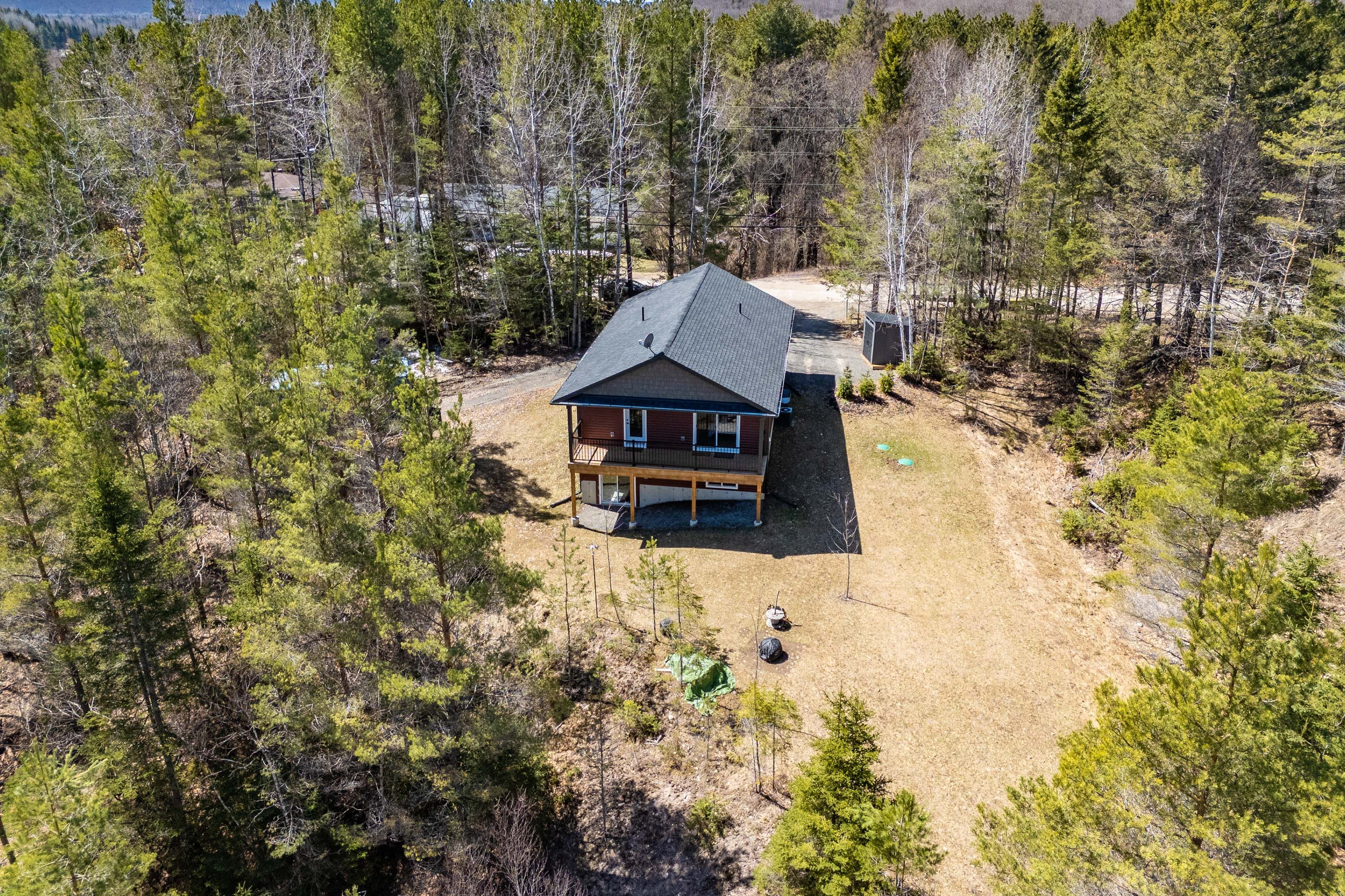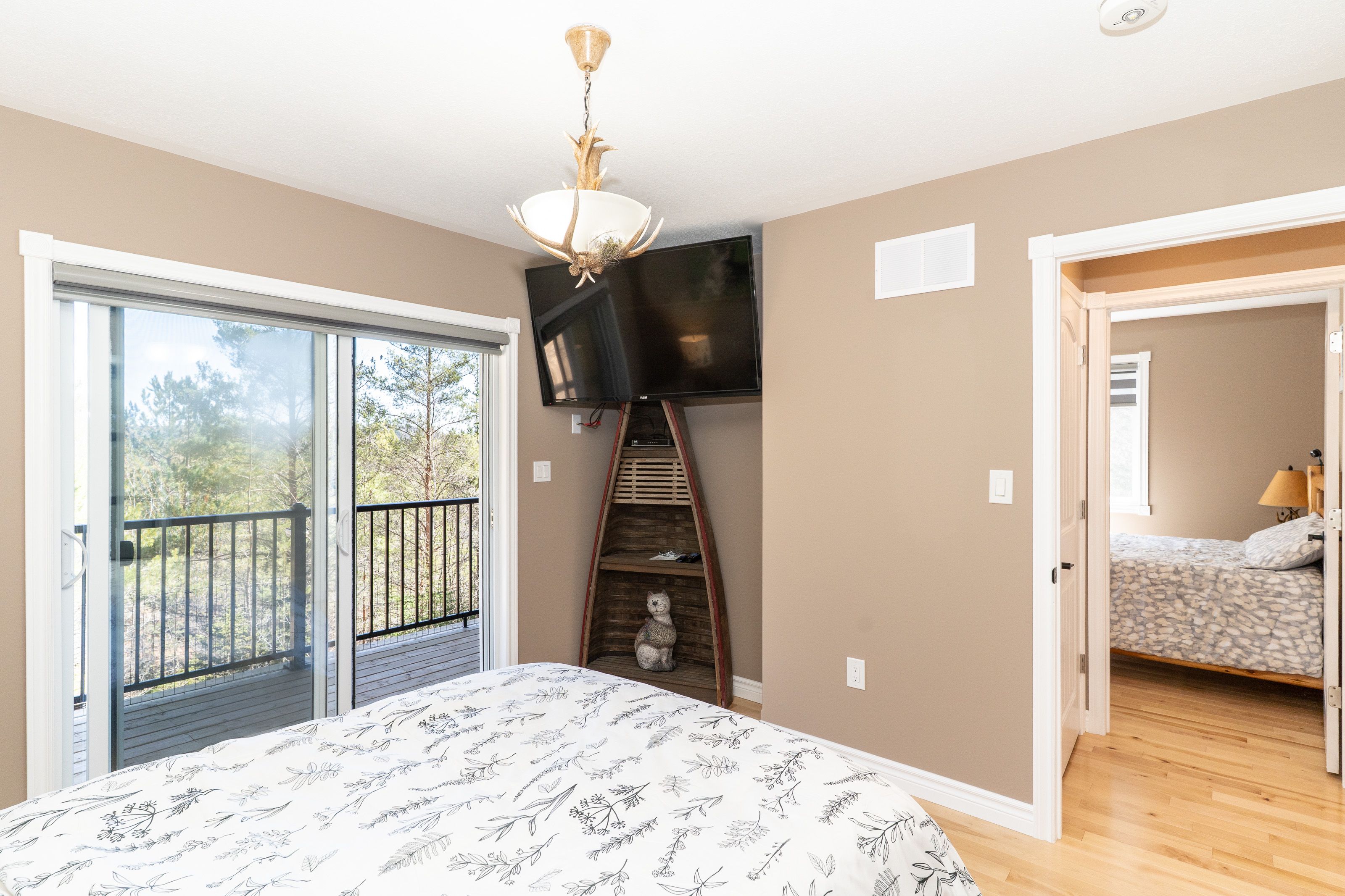 Cottage like character /setting with in town on a 1 acre lot. This 2 years young, well built 3 bedroom chalet style home suits all ages and stages. Featuring main floor laundry, covered porches front and back walk out to sunrise and sunset views!! Open concept living area, bright and airy. Fibre optic internet. Lower level offers additional living space, another 4 pce bath, and a bedroom. Walkout to private rear yard .... Patio and natural landscaped yard with fire pit for evening pleasure. All appliances - including microwave/convection oven will remain . This large frontage lot has potential for future development or room to grow. Look today - will not disappoint ! Note: floor plans in docs