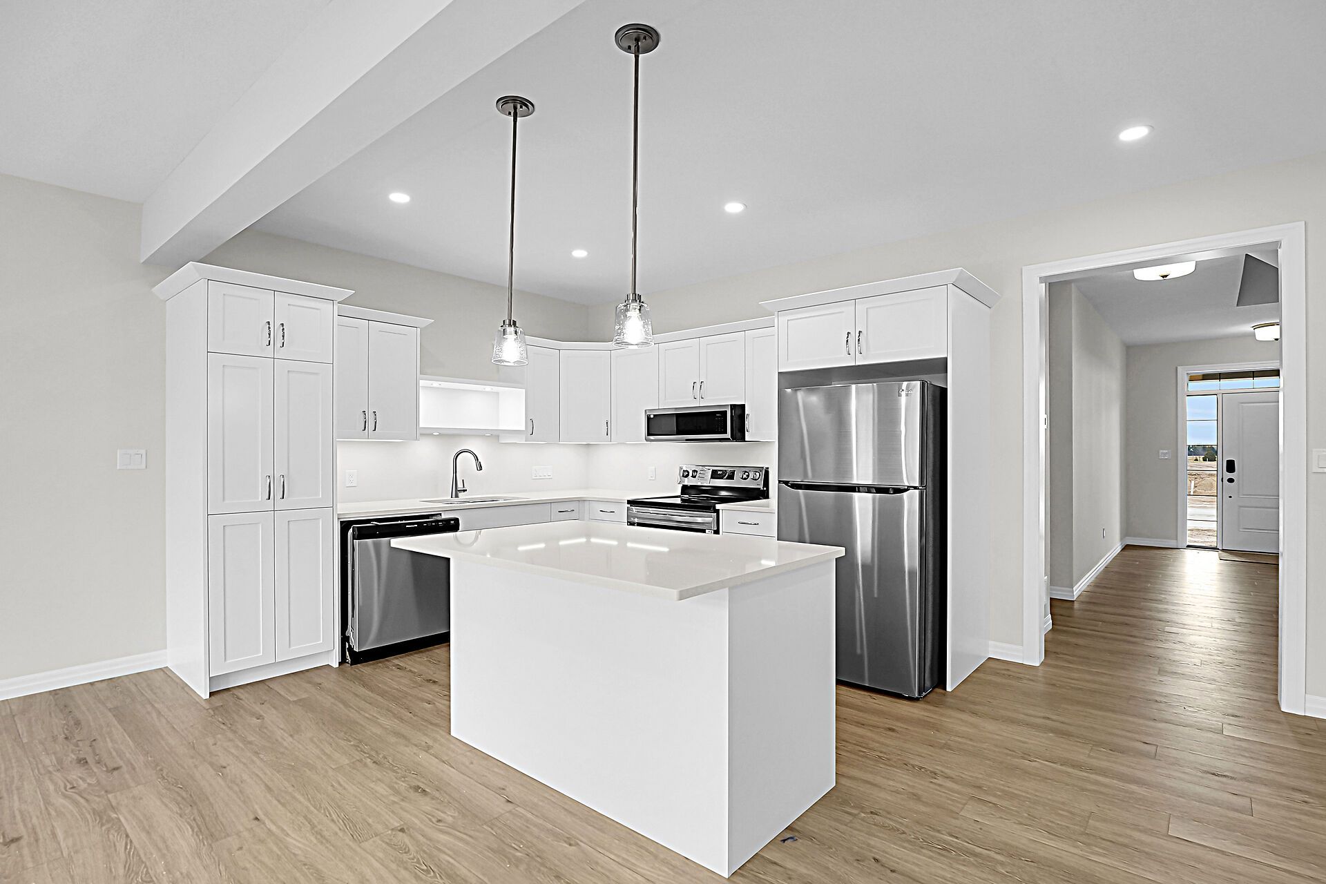 • Upgraded kitchen featuring quartz countertops and a breakfast island.
