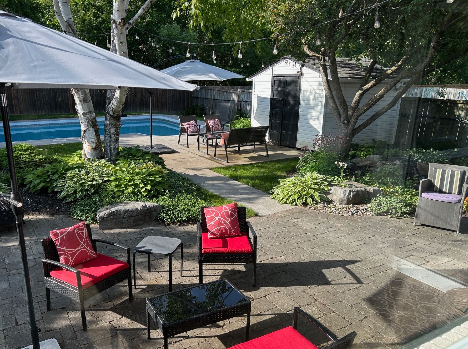 • Private backyard featuring a landscaped setting and a saltwater pool.