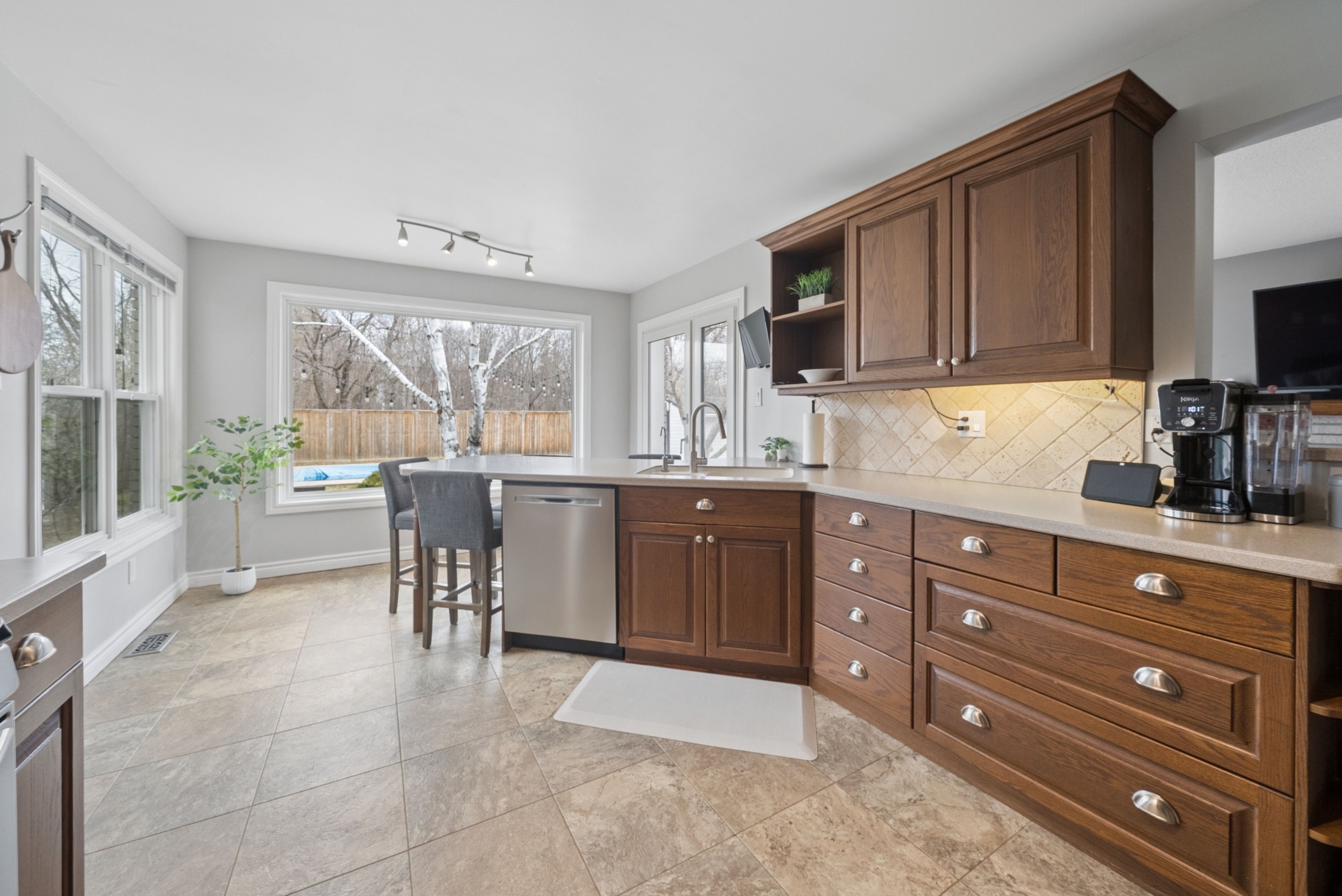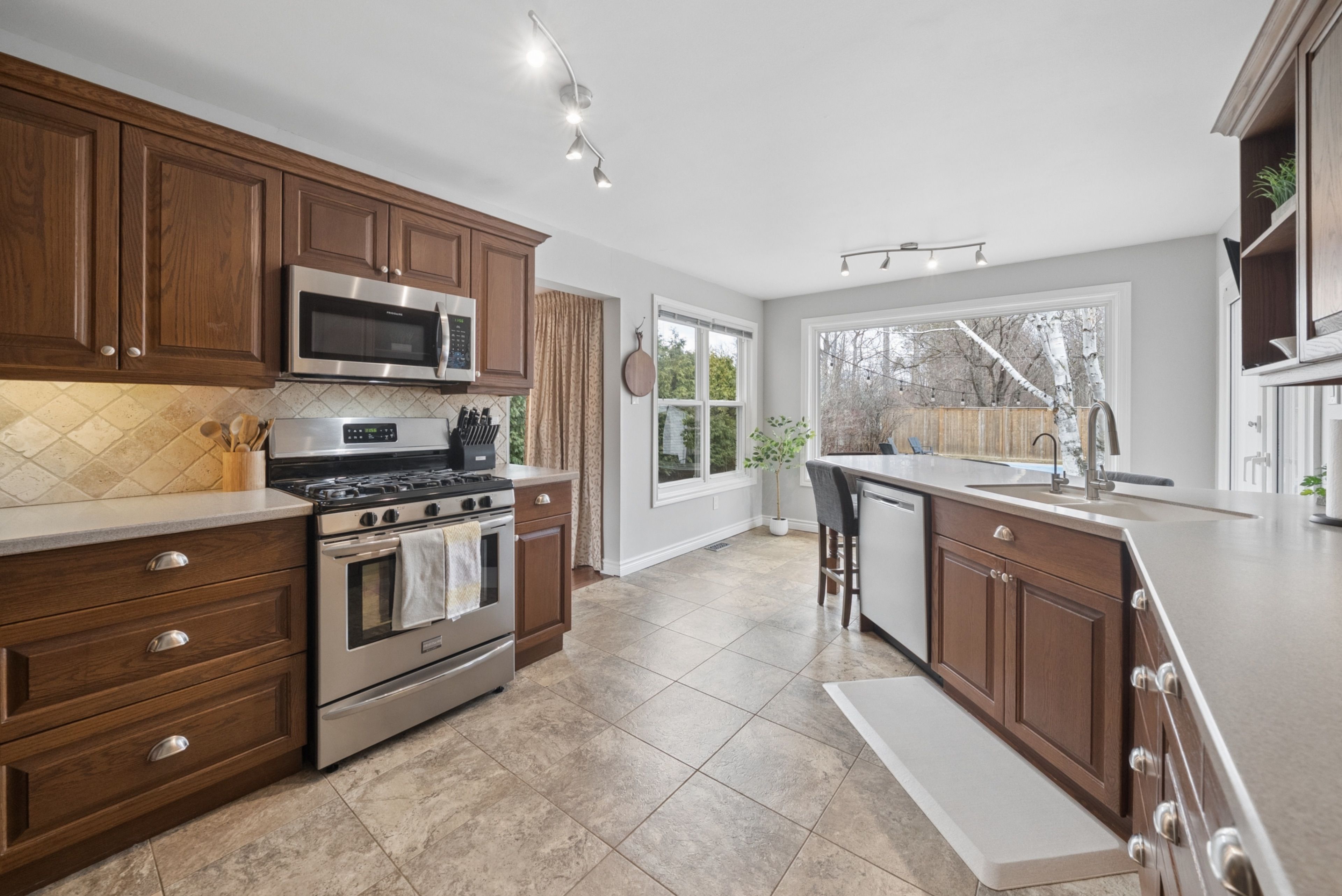 Set in peterborough's west end, 234 ridgewood rd is positioned in a neighbourhood known for its access to outdoor space and established feel. Kawartha golf & country club is just down the road, with the 3rd green a short shot away, and sherbrooke woods trail is located a few doors over and across the street. École monseigneur-jamot and st. Catherine catholic elementary are within walking distance, with james strath public school and crestwood secondary also nearby. The home offers 4+1 bedrooms and 4 bathrooms, with a layout that includes a main floor family room, dedicated dining area, and main floor laundry, along with inside access from the double car garage. The principal living spaces overlook the backyard. Outdoors, the property unfolds into a private, landscaped setting anchored by a saltwater in-ground pool installed in 2017, complemented by a small pond and established greenery. Upstairs, four bedrooms provide functional space for family living, including a primary suite with a walk-in closet and an updated ensuite. The finished basement adds an additional bedroom, updated bathroom, and flexible recroom space. Updates include roof shingles in 2017, main floor windows replaced in 2021, and recent improvements to both the ensuite and basement bathrooms. A location that keeps daily needs, schools, and outdoor access all within reach.