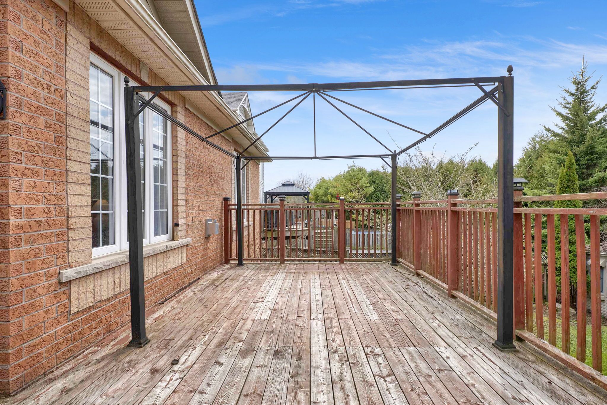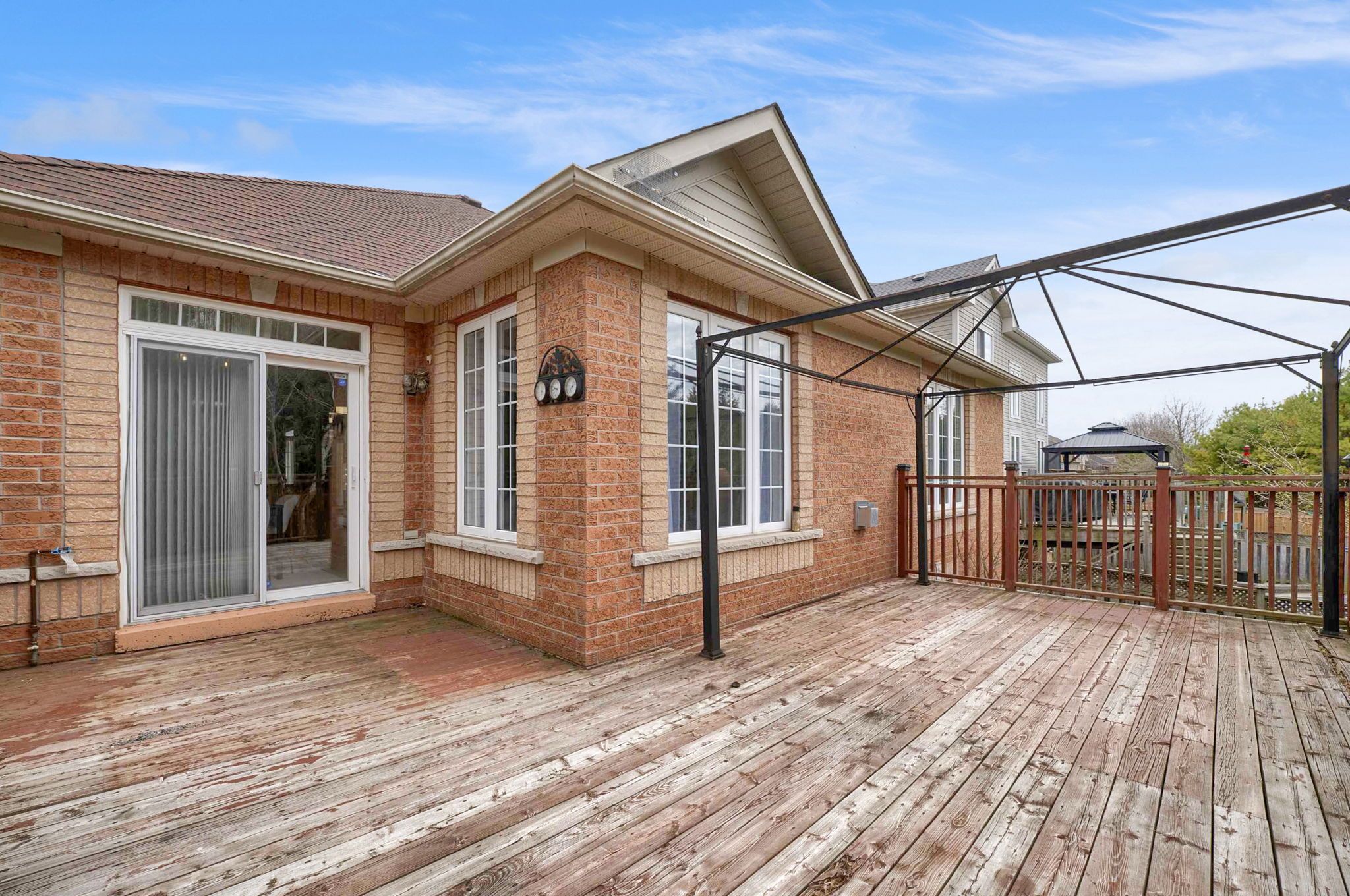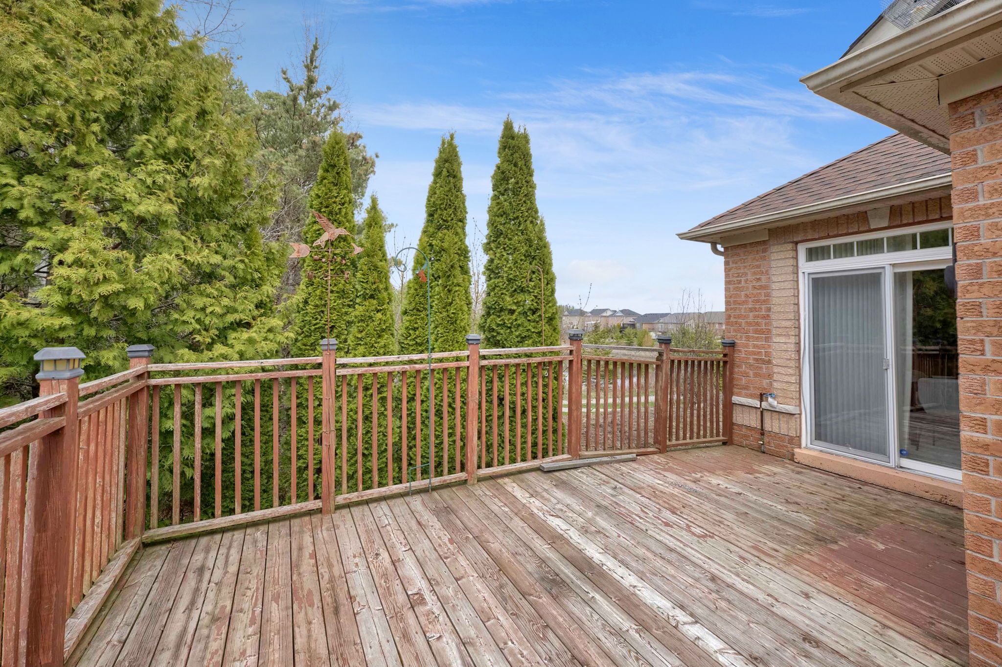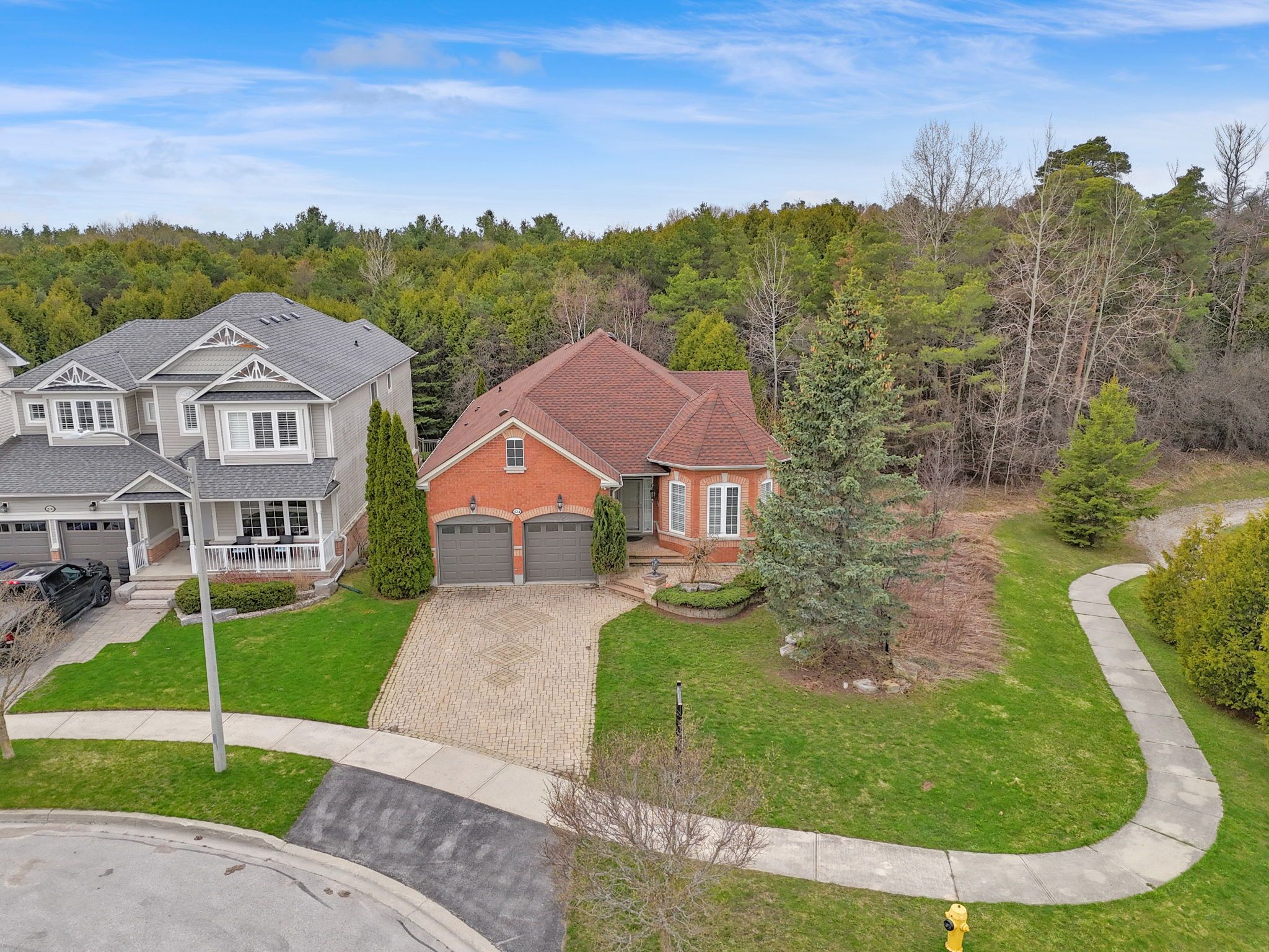 • All-brick home on a quiet court with privacy and nature nearby.