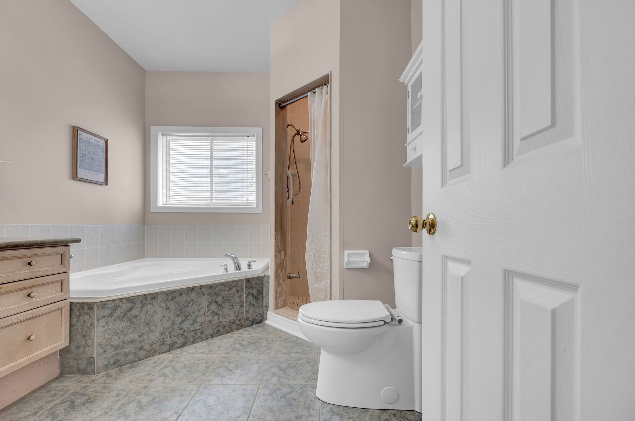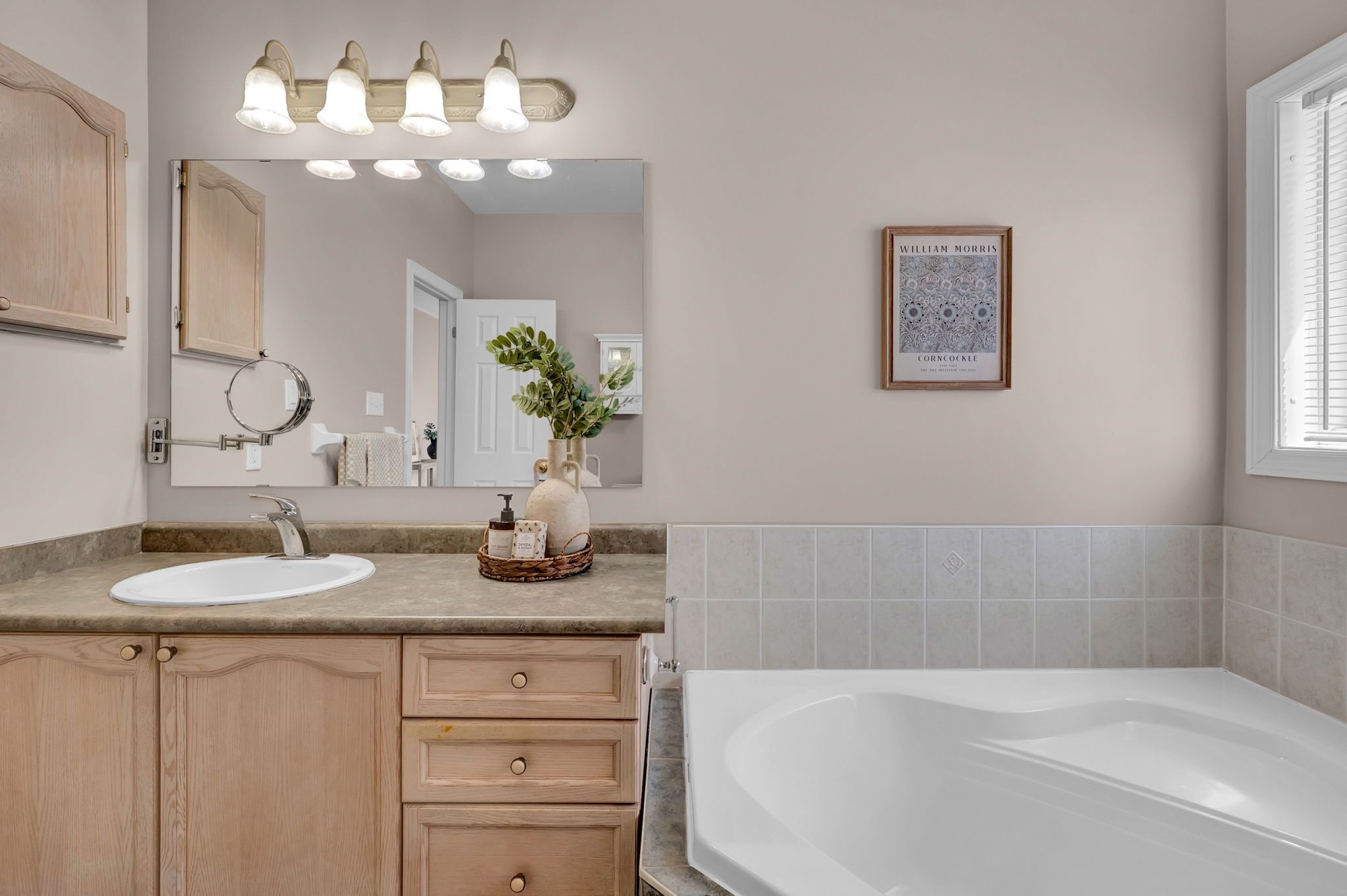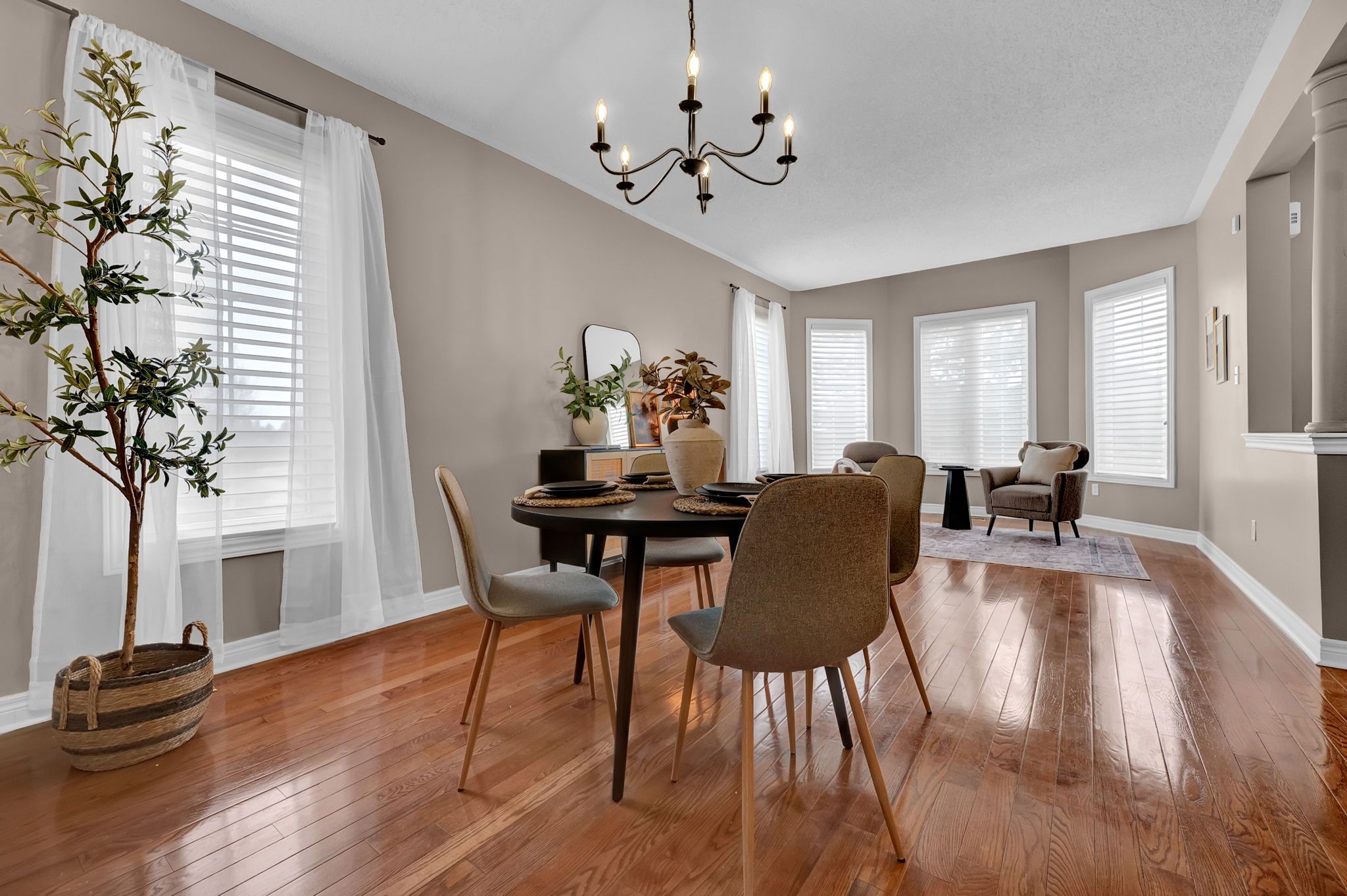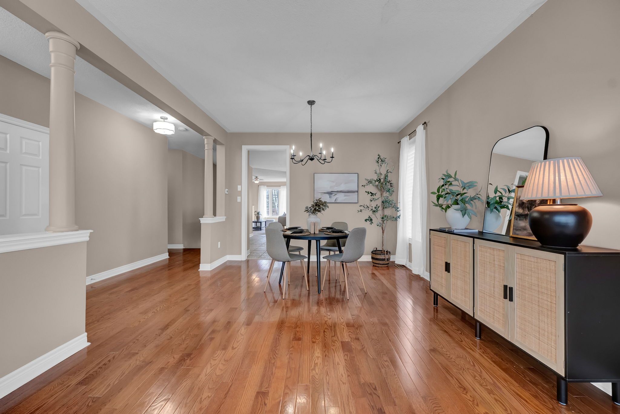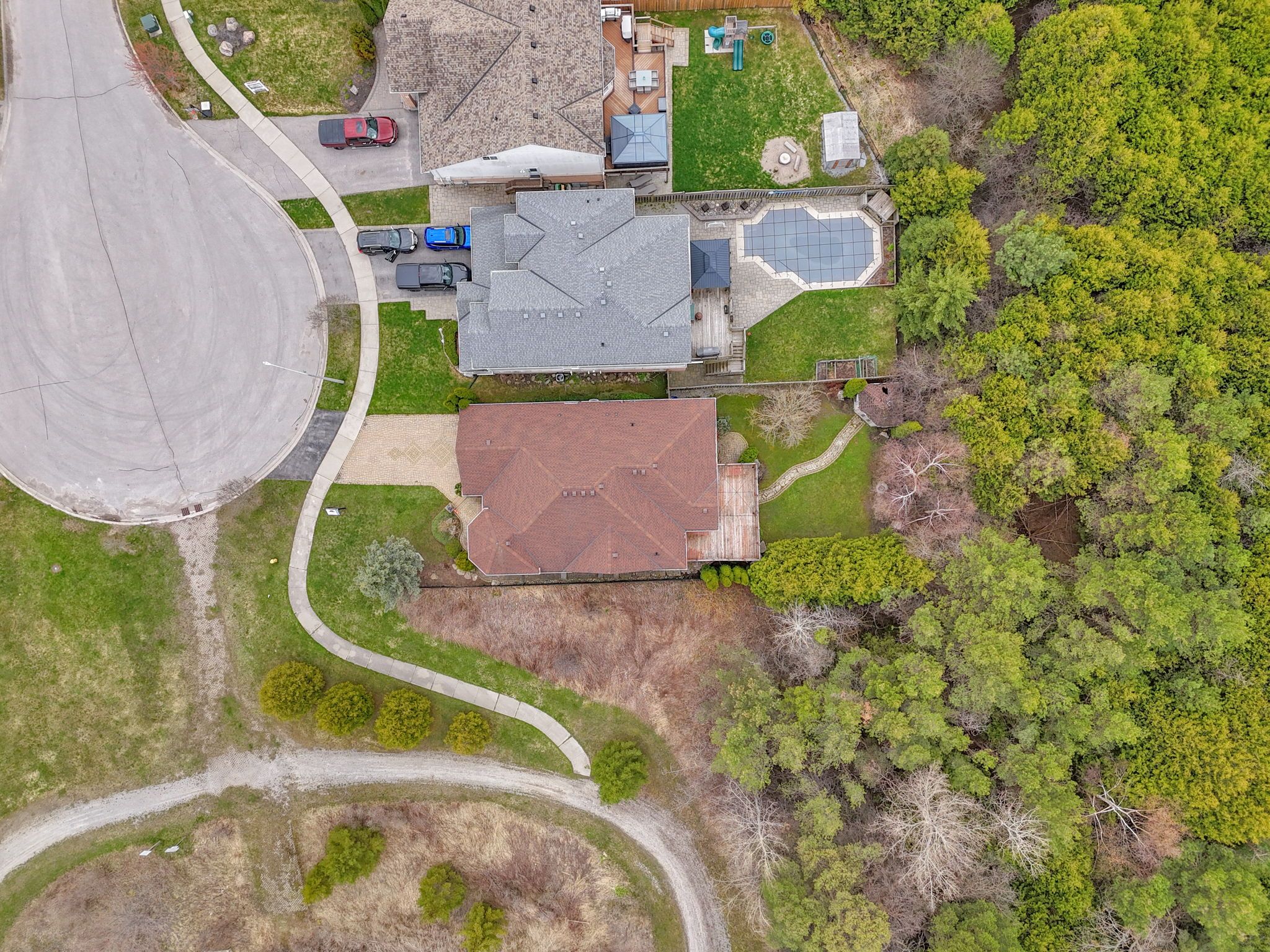 • All-brick home on a quiet court with privacy and nature nearby.