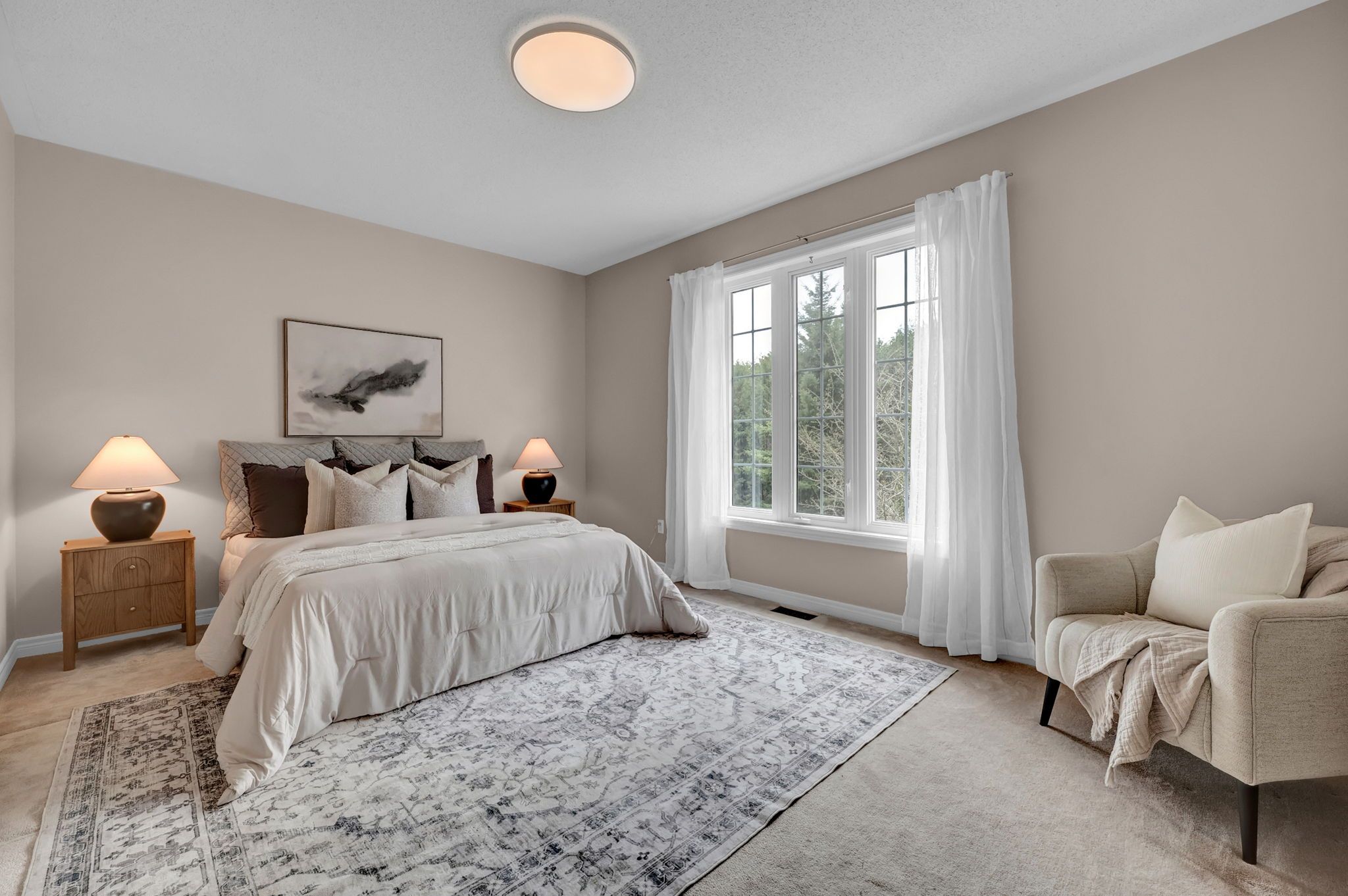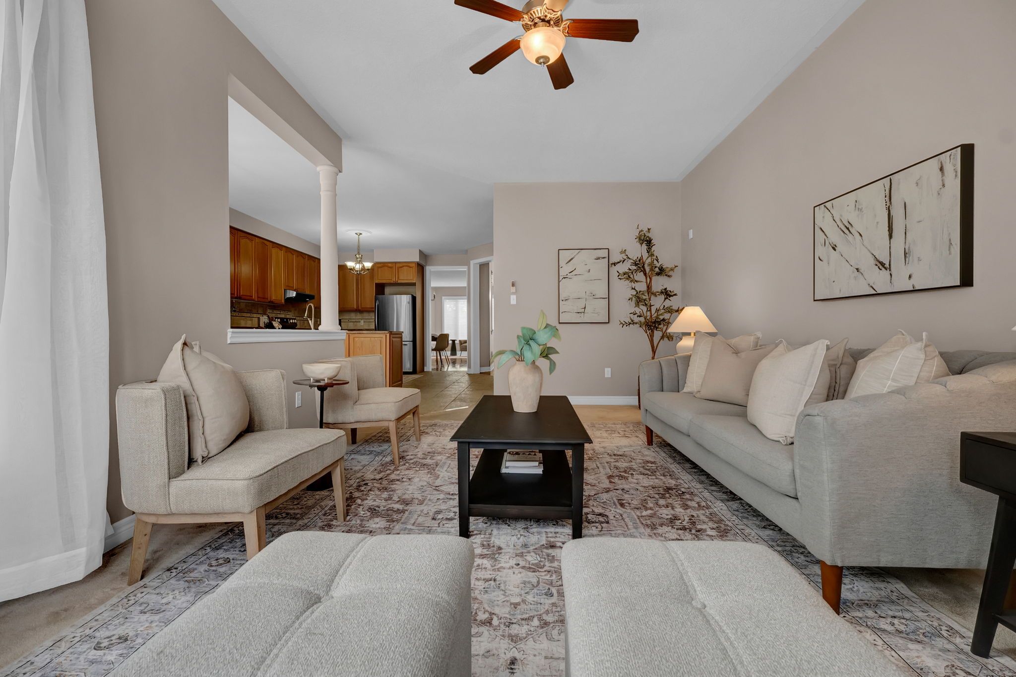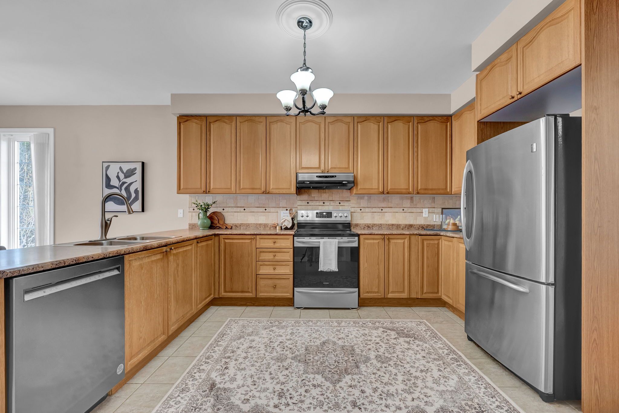 • Bright open-concept layout with 9 ft ceilings for comfortable living.