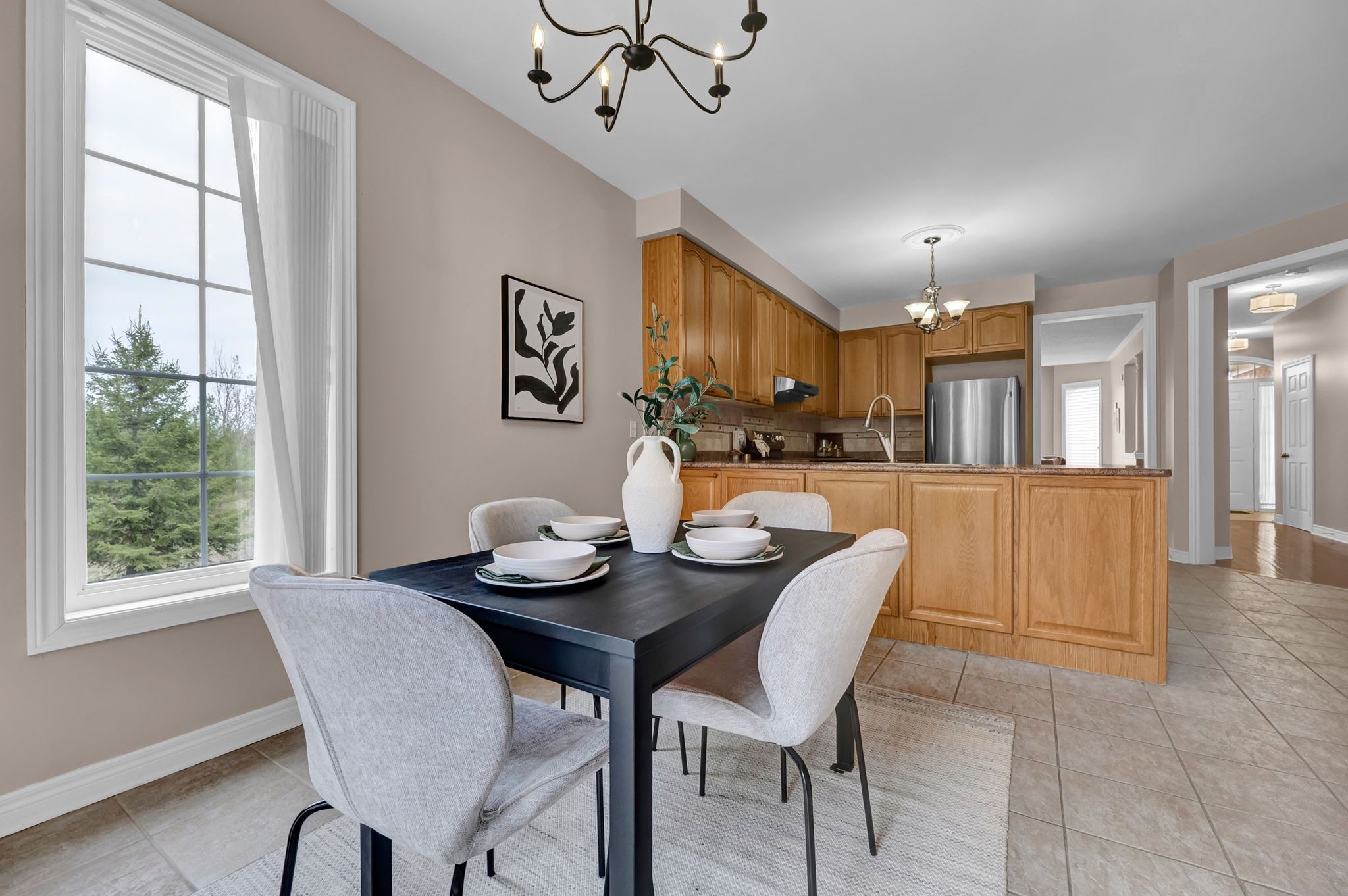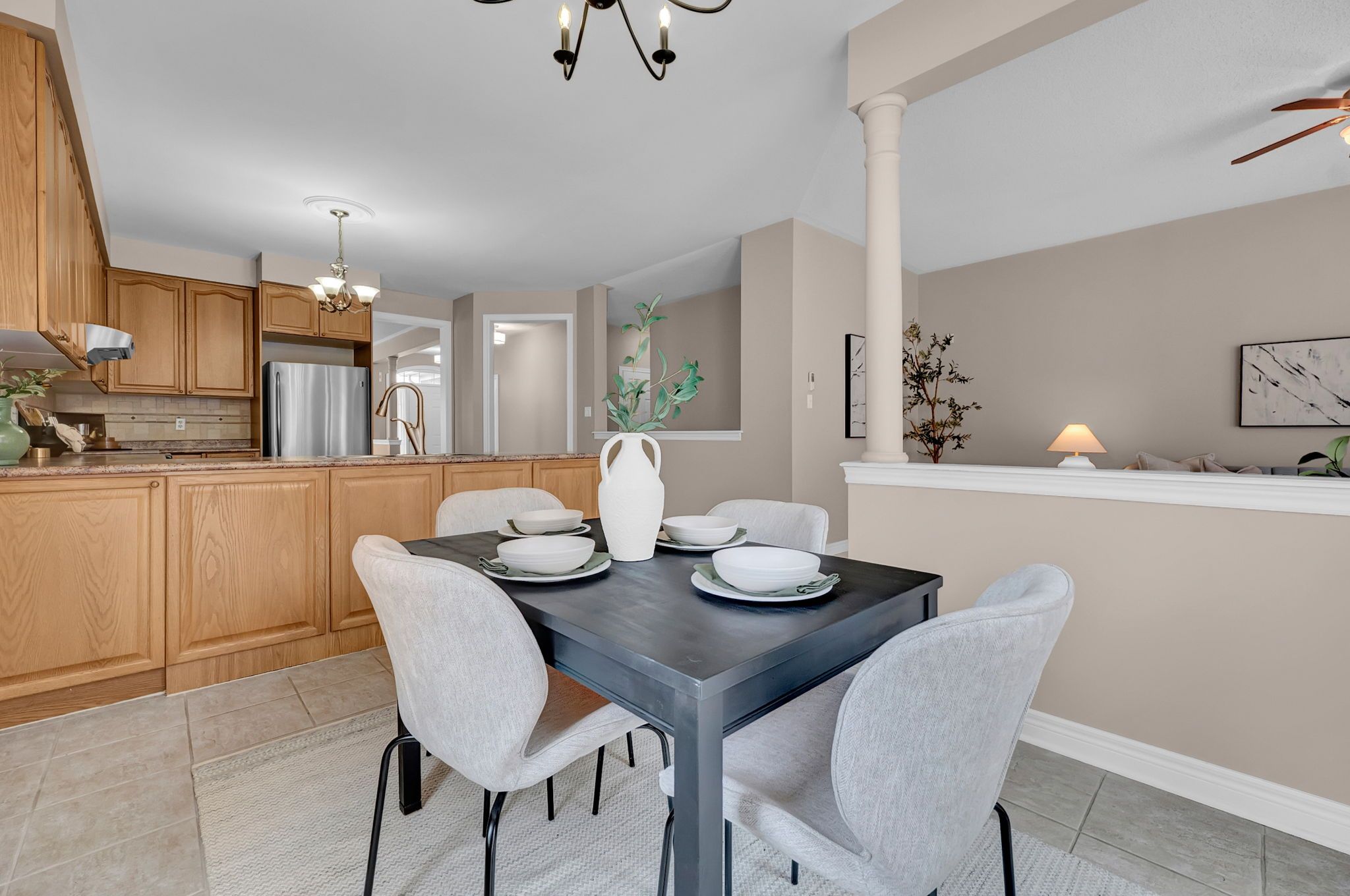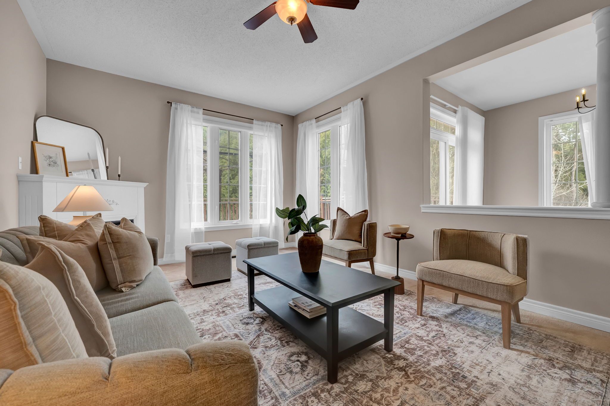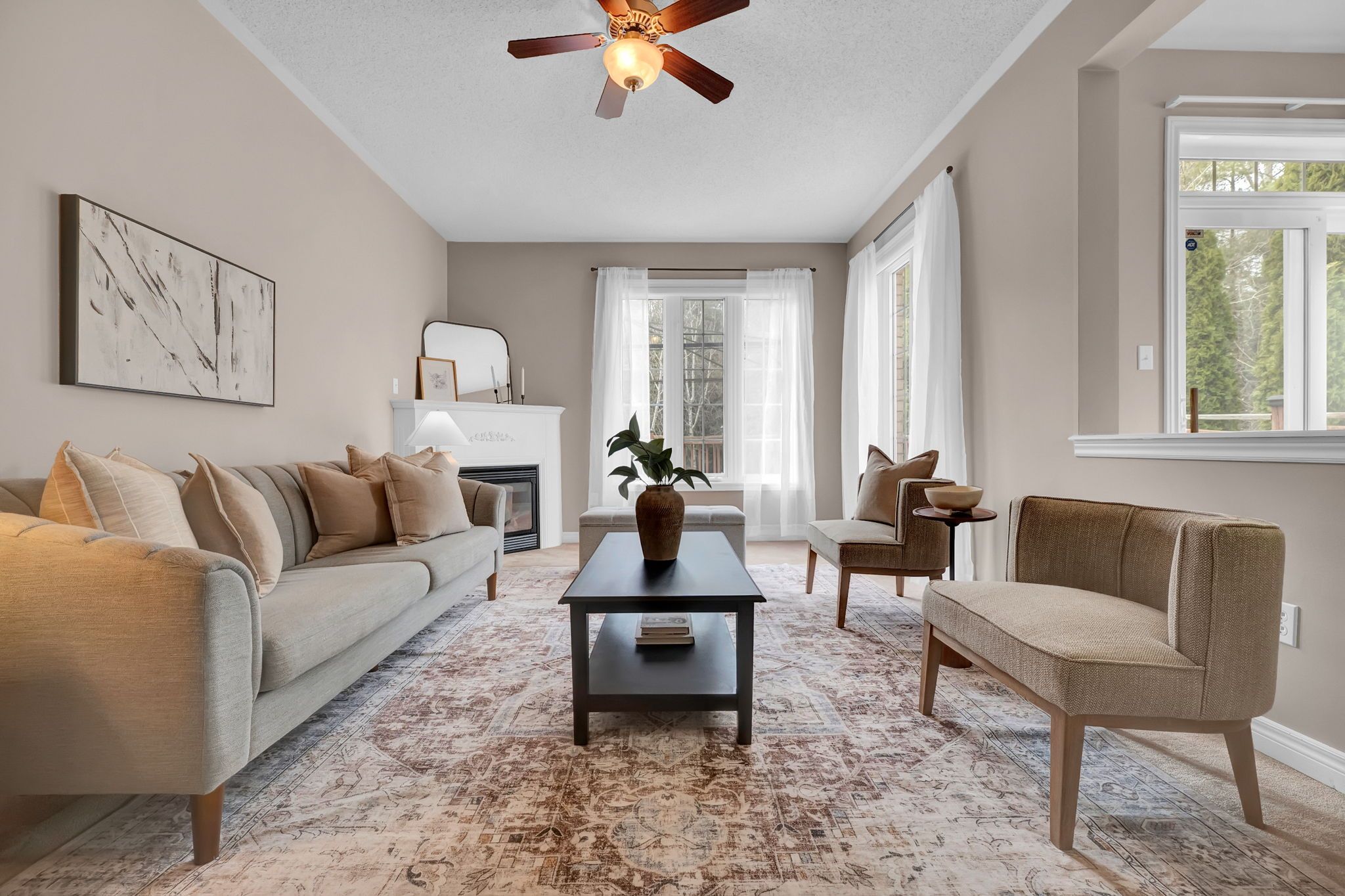 • Bright open-concept layout with 9 ft ceilings for comfortable living.