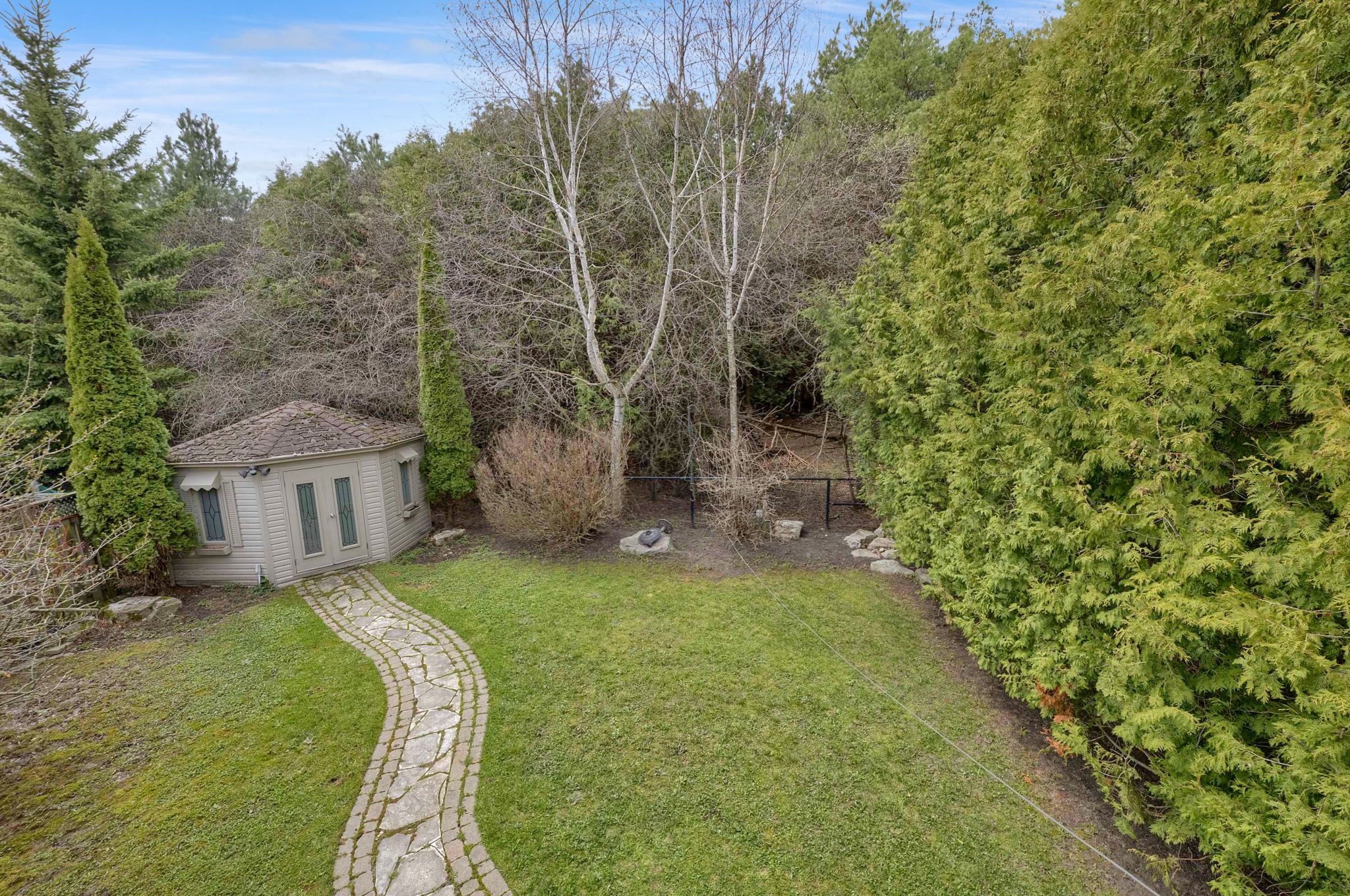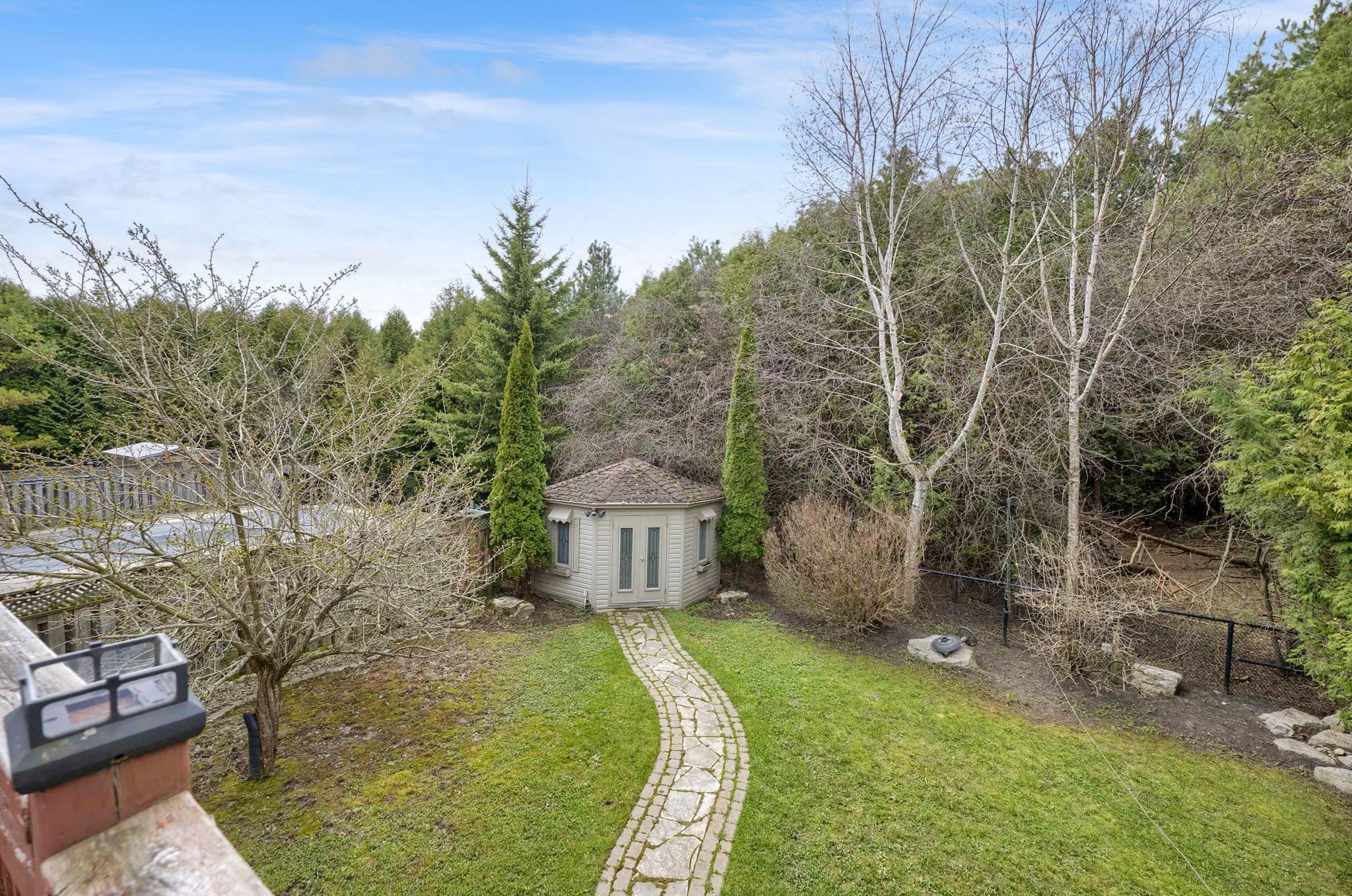 • Elevated deck overlooking a serene ravine, perfect for relaxation.