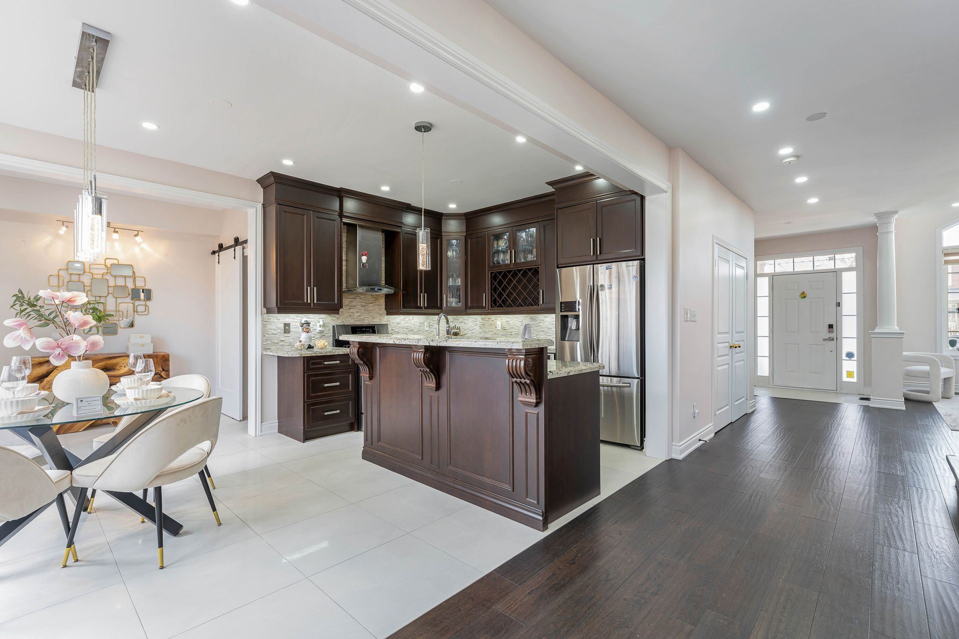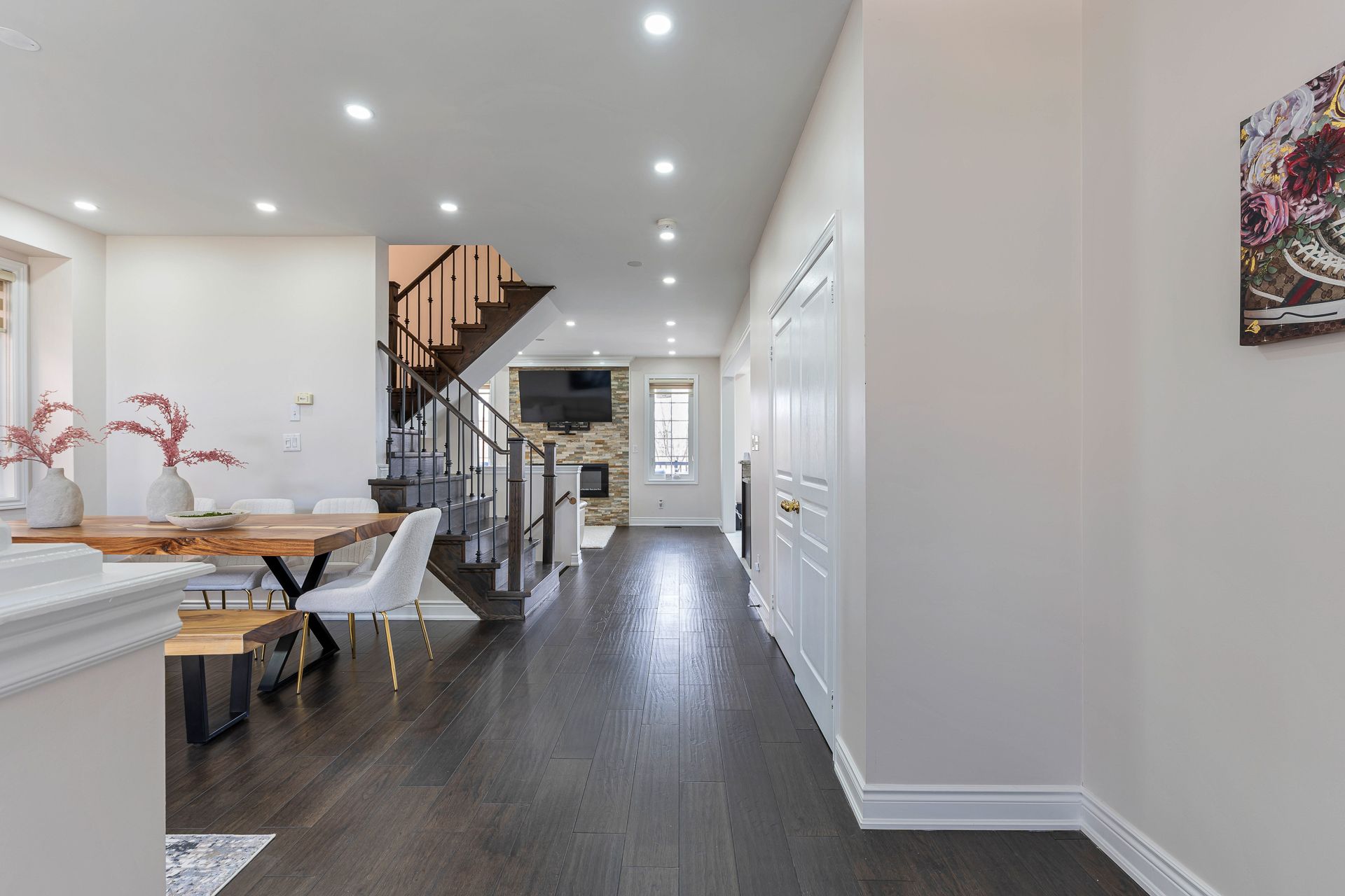 *must see 3d virtual tour* nestled in a highly sought-after pocket of west oak trails, this beautifully maintained detached home offers the perfect blend of space, upgrades, and a rare nature-backed setting. The main floor features a functional and spacious layout with separate living and dining areas, a warm and inviting family room, and a bright breakfast area with a breathtaking view of the green space. The upgraded kitchen, with quartz counter and modern finishes, flows seamlessly into the living space and opens through an oversized patio door to the outdoors-perfect for everyday living and entertaining. Step outside to a water-kissed backyard backing onto a lush green ravine and scenic trails, offering exceptional privacy with no rear neighbours. Enjoy your mornings and evenings on the newly upgraded, terrace-sized composite deck, designed for low maintenance and maximum enjoyment. The upper level offers 4 generously sized bedrooms and 2 full washrooms, filled with natural light throughout the day and complemented by pot lights for a bright, modern feel-ideal for growing families. The fully finished walkout basement adds incredible versatility, featuring 2 bedrooms, a full washroom, and a kitchen-perfect for extended family, potential in-law suite use, or additional living space. Currently configured as a premium entertainment zone, it includes an ultra-modern home theatre setup with dolby surround sound, projector, and motorised drop-down screen, creating a true cinematic experience at home. Enjoy proximity to schools, parks, scenic trails, recreation centres, shopping at dundas & neyagawa, and convenient transit options including access to go transit-offering the perfect balance of nature, convenience, and connectivity. Book your viewing today! Roof(2021), home theatre(2022), furnace(2022), composite deck(2022), garage door(2026), pot lights(2026), patio door(2026), professionally painted(2026)