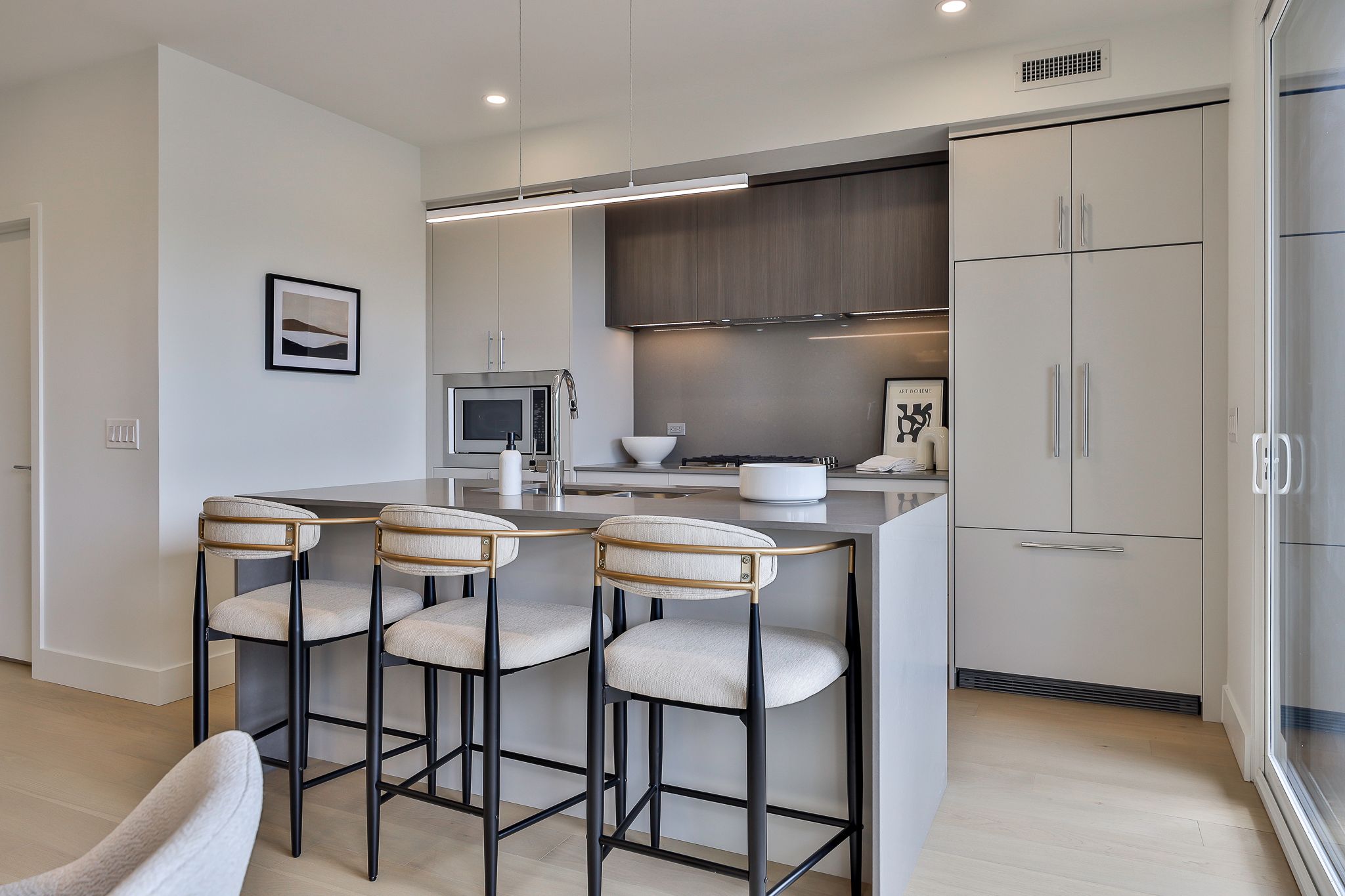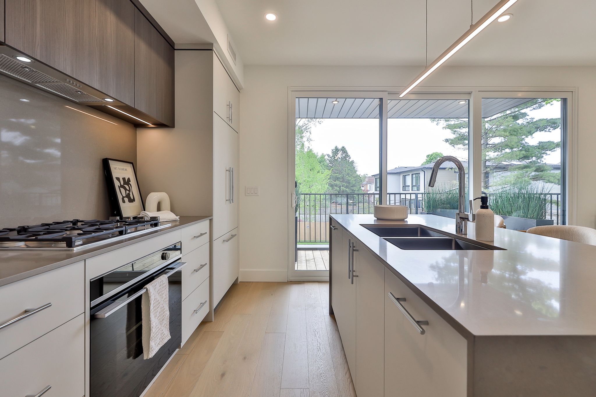 An astounding residence in a rare boutique building - imagine your very own full-floor home, providing over 1,100 square feet of interior space with two terraces (one with bbq connection). Filled with natural light, this carefully designed and beautifully built home includes exceptional details throughout, a custom kitchen with integrated fisher & paykal appliances, gas cooktop, stylish eat-at island and an oversized living room / dining room perfect for daily living and great entertaining. 2 full bedrooms including a primary with decadent ensuite bathroom and huge walk-in closet. Exceptional space, designed and built to the highest standards with advanced acoustic insulation, oversized windows, individual heating and cooling and enormous ensuite storage. The style and simplicity of a condo, with the space and comforts of a traditional home! Low maintenance living, moments to the subway, nearby shopping, parks, schools and of course kingston road village. Never lived in, with a full tarion warranty.