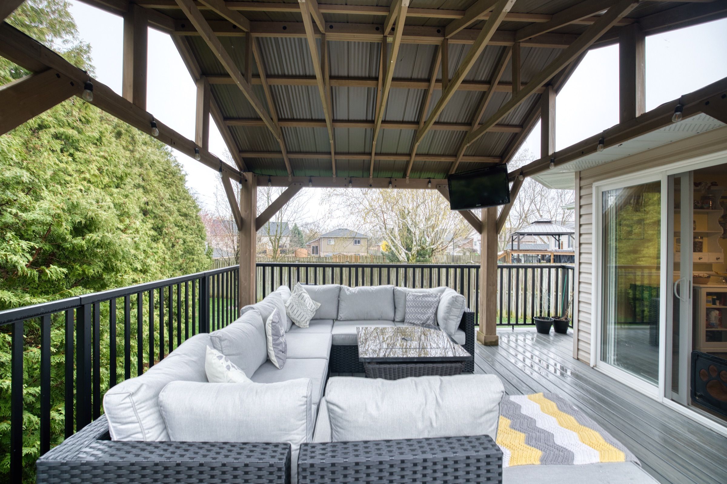 Welcome to this beautifully maintained oversized bungalow located on a quiet, family-friendly, cul-de-sac in highly sought-after north niagara falls. Surrounded by the tranquility of wooded surroundings, this home offers the perfect balance of space, comfort, and convenience-close to excellent schools, niagara parks, scenic trails, and quick highway access. Offering approximately 2900 sq. Ft. Of finished living space, this bright and spacious home is ideal for families or multi-generational living. The main floor features grand windows offering an abundance of natural light, a welcoming living room, a separate dining area, and a large eat-in kitchen with a unique hexagon-shaped dinette. You'll also find main floor laundry, three generous bedrooms, and a full 4-piece bathroom. The primary bedroom includes a walk-in closet and sliding doors leading to a newer deck complete with a gazebo (tv-ready) and hot tub-perfect for relaxing or entertaining. The fully finished lower level is filled with natural light thanks to oversized windows and open stairs. It offers a huge recroom with a gas fireplace, two additional bedrooms, a full bathroom, workshop space, and a separate entrance from the garage-making it ideal for in-law capability or potential rental income. This home has been extensively updated over the years, including roof, driveway, walkways, and basement finishing (2008); kitchen updates, flooring, and hot tub (2015); furnace and a/c (2016); all windows and doors (2020); deck, lighting, and additional bedrooms (2023); front sprinkler system (2024); and fencing updates (2025). Additional features include a double car garage, parking for six vehicles, central vacuum, water filtration system, adt security system, and more. This is a rare opportunity to own a spacious, move-in ready home in a prime location.