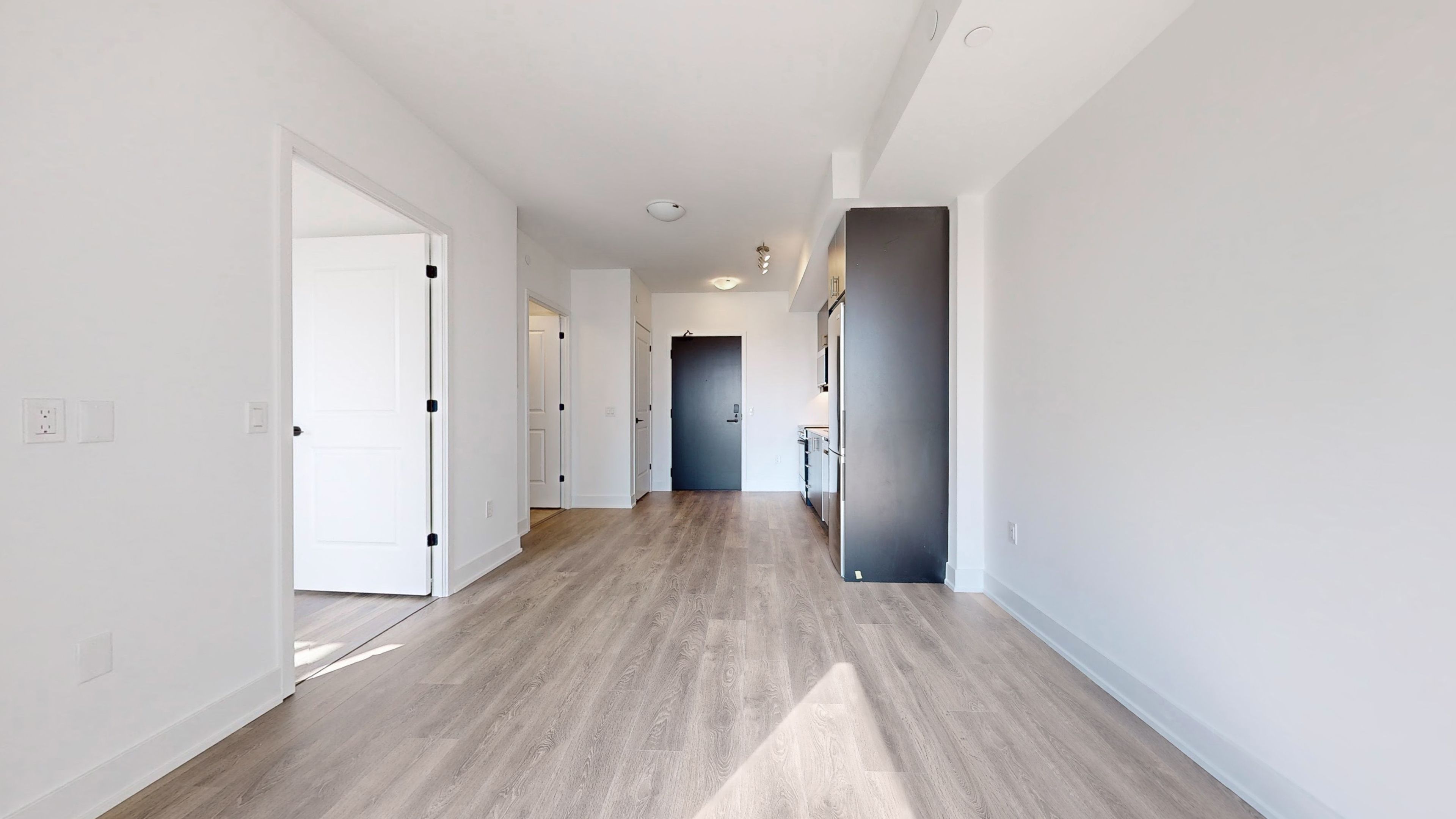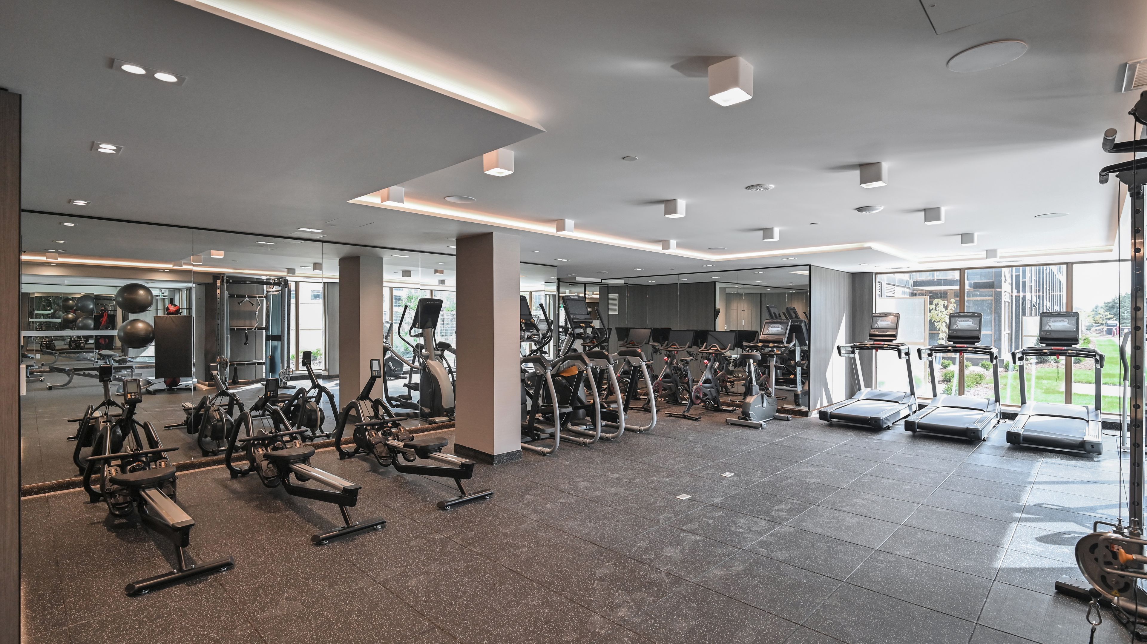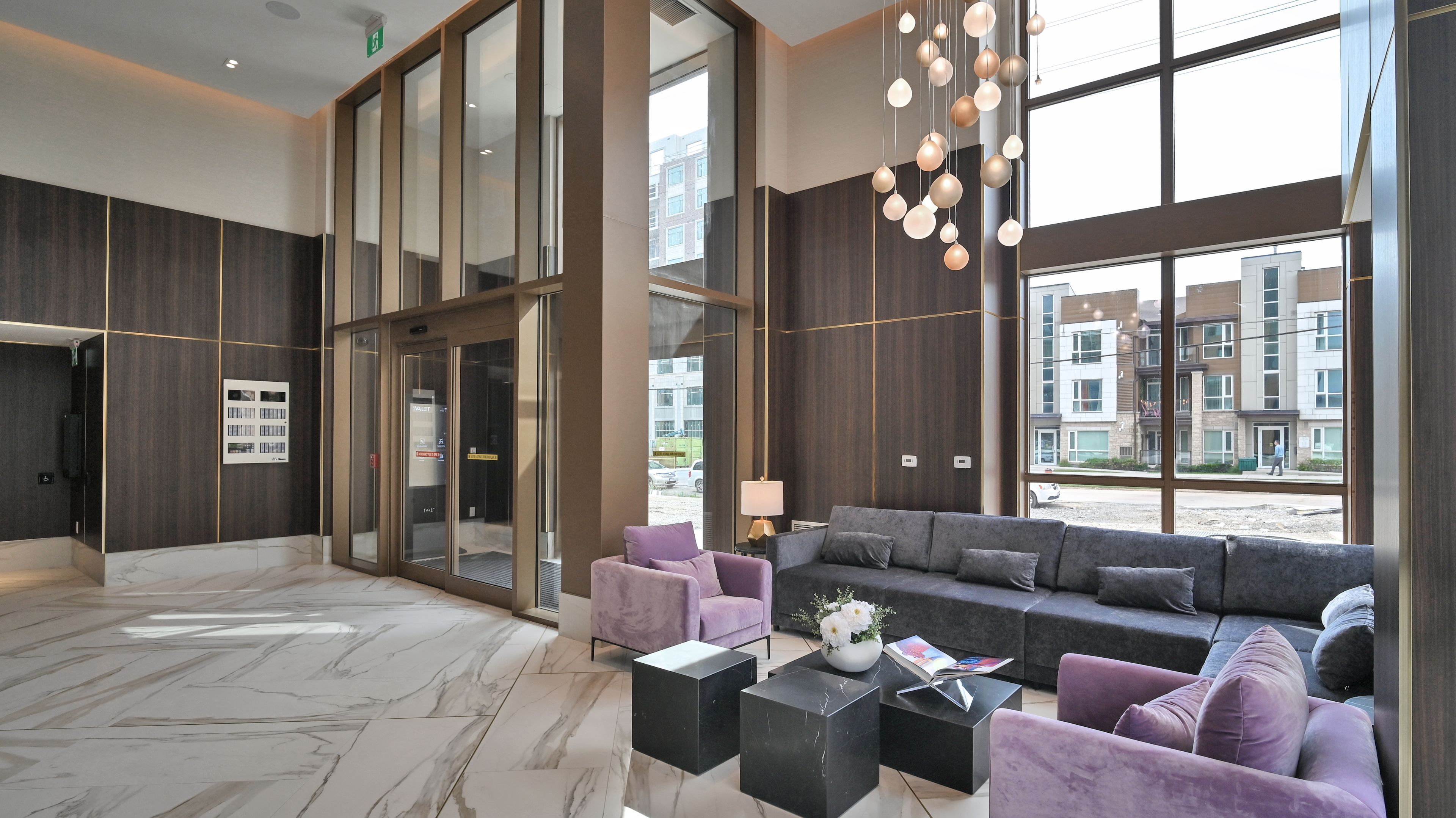 • Modern amenities including a rooftop pool and fitness center.