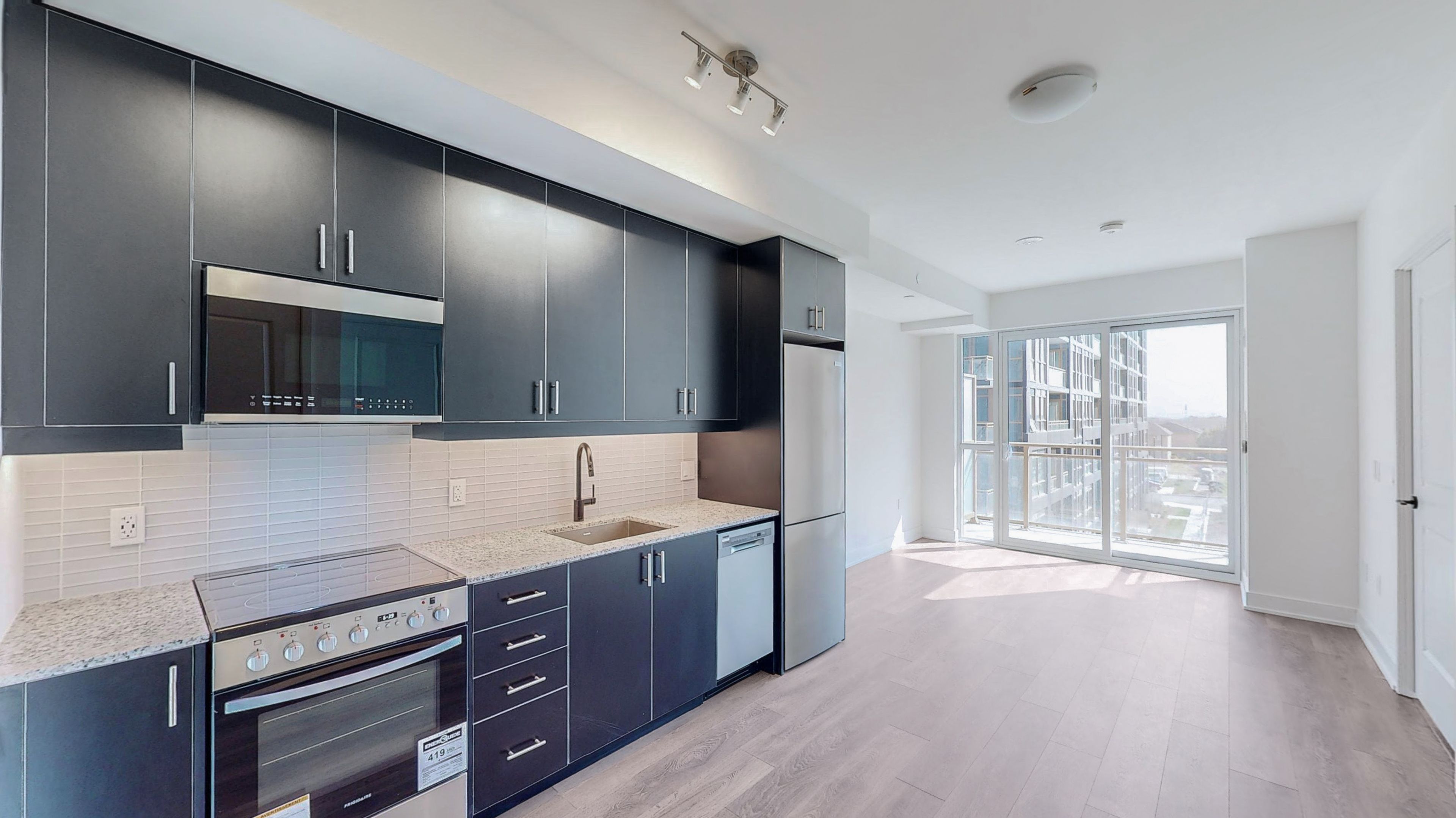 Welcome to 2343 khalsa gate unit 402 in the brand new nuvo condo. The property is conveniently located in prime north oakville. The location is a commuters dream with the convenience of being just minutes from the qew , hwy 407 and bronte go. This new 1 bedroom is situated in a building flush with modern amenities. The open-concept kitchen and living area make excellent use of space. Soaring ceiling and new blinds recently installed. Amenities will incl. A putting green, a rooftop lounge and pool for relaxation and stunning views, bbq facilities, a well-equipped media/games room, a beautiful community zen gardens offering a relaxing place to escape, a party room for hosting events, basketball court and a multi-purpose activity court for fitness and recreation, a cutting-edge fitness centre featuring peloton bikes, a convenient work/shared board room for professionals working remotely, the rasual spa for ultimate relaxation, a bike station and car wash station for everyday convenience!
