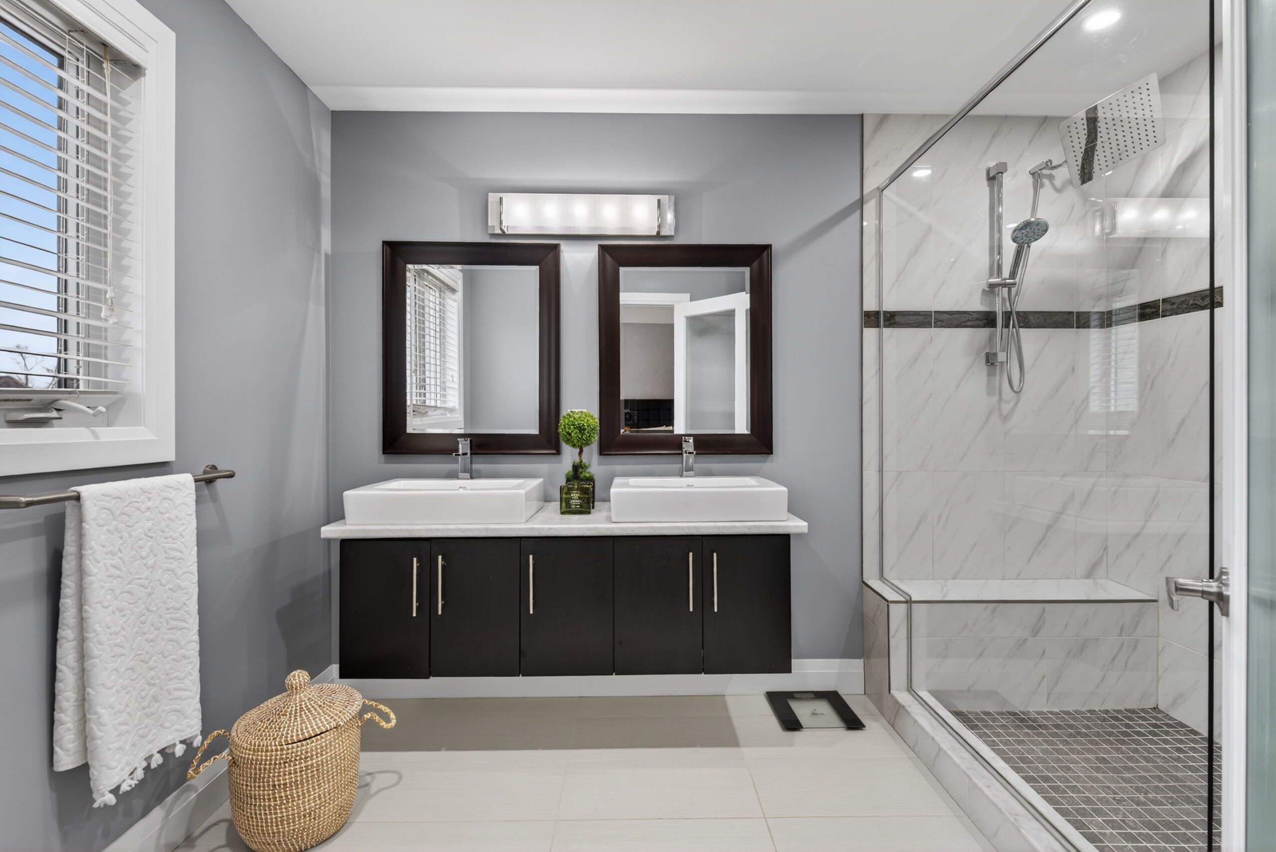 • Modern two-storey home with three bedrooms and 3.5 bathrooms.