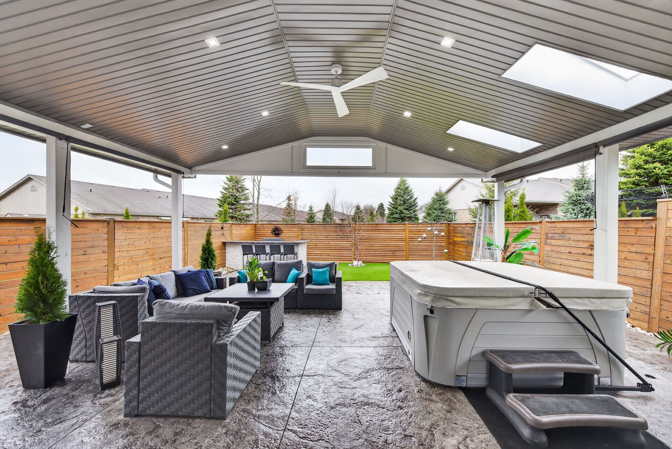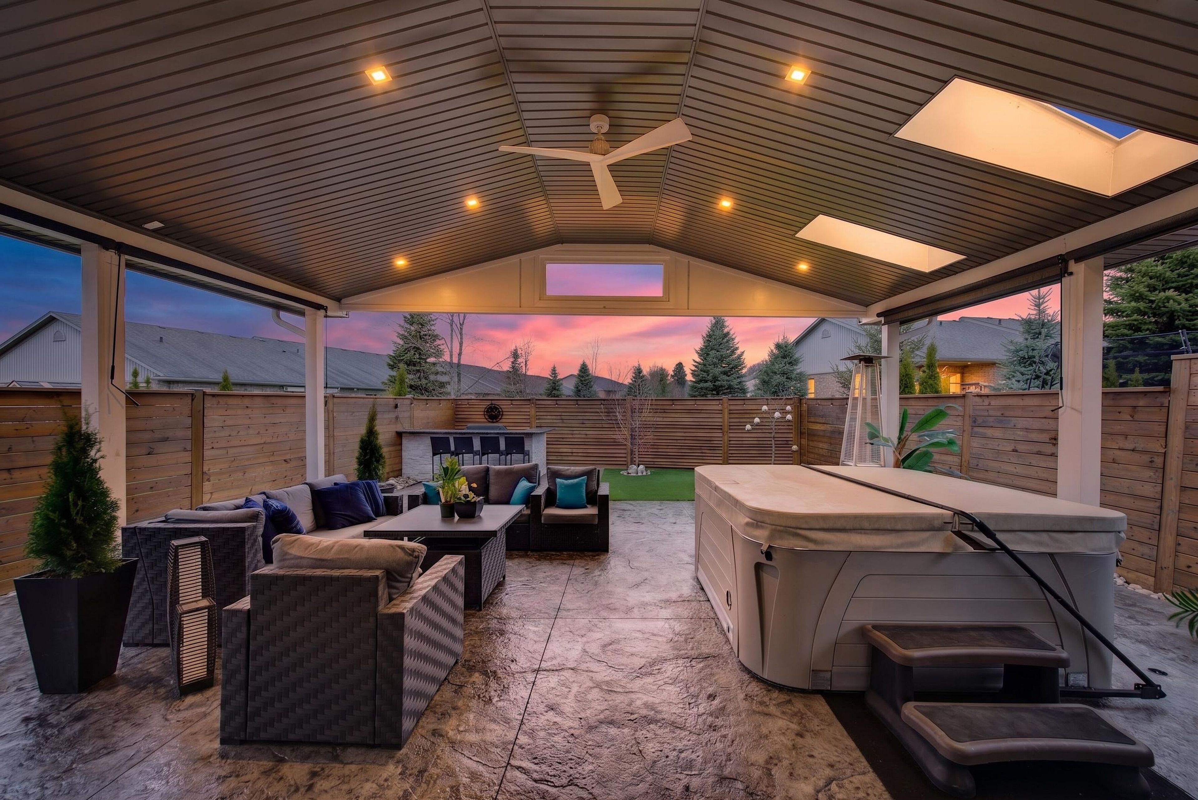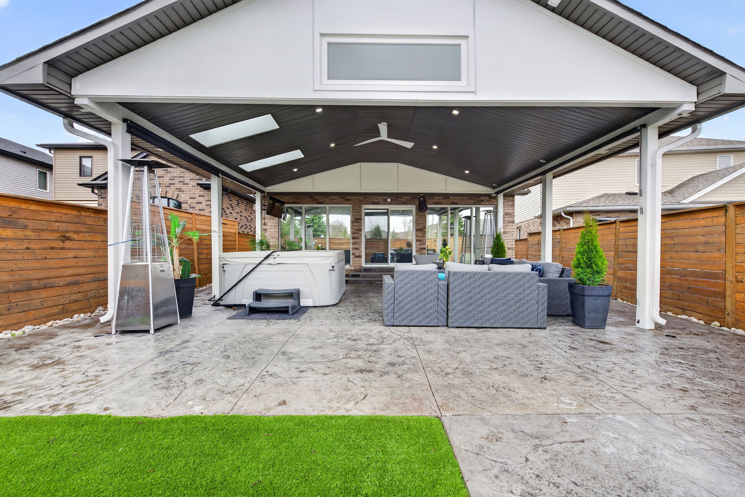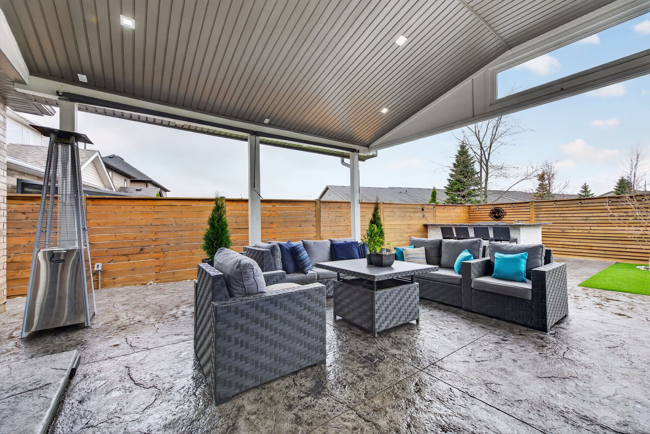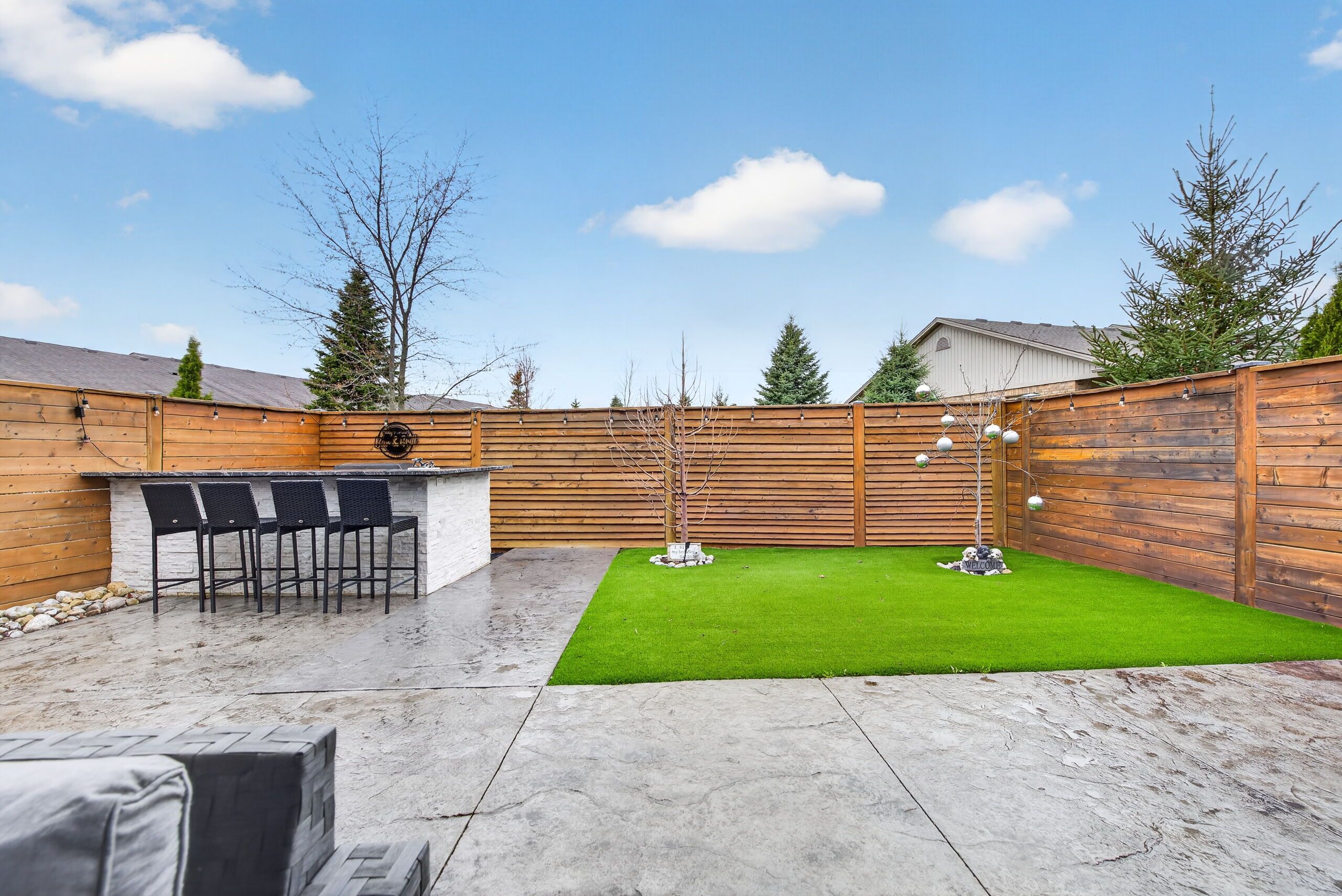 • Backyard oasis with a covered patio and outdoor bar for entertaining.